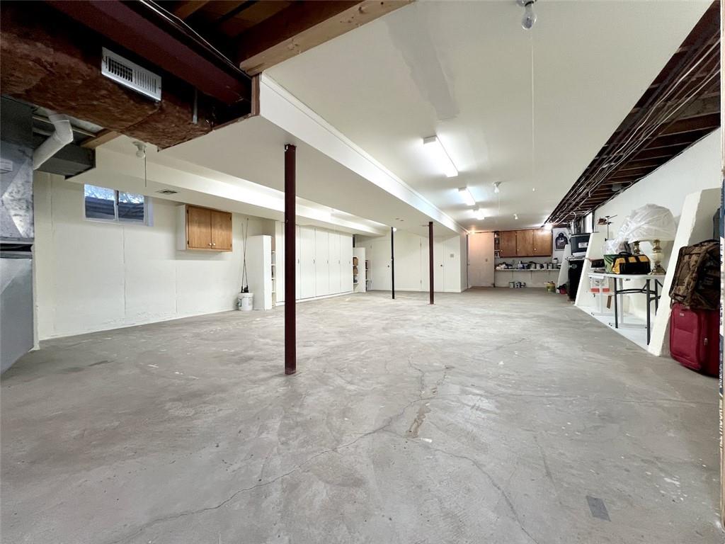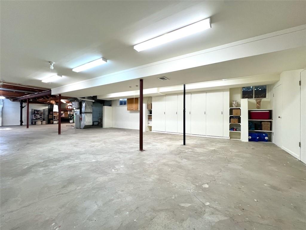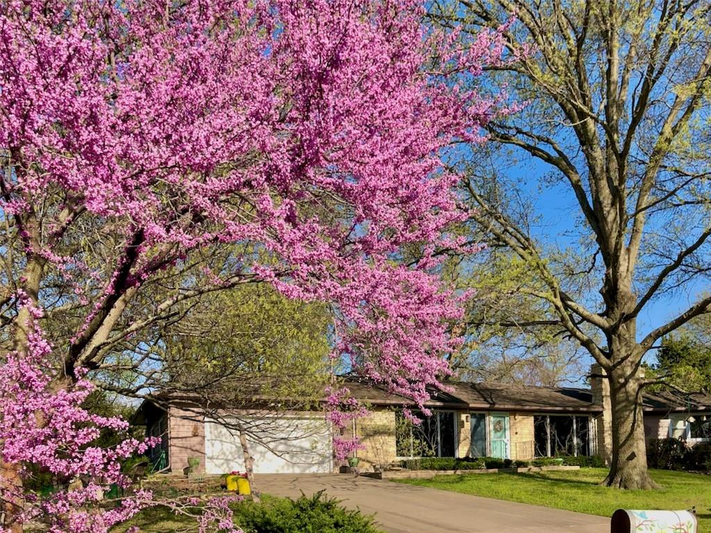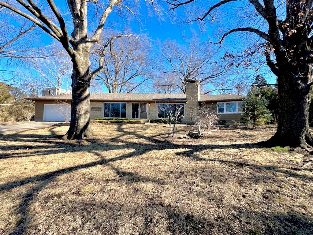 Wonderfully maintained mid-century modern ranch offering the ease of one-level living on rare double lots (approximately 2/3 acre), just blocks from the University of Kansas campus. This classic home blends timeless design with thoughtful updates and has been carefully maintained for long-term peace of mind. Recent improvements include a 97% efficient furnace with humidifier (2025), new sump pump(January 2026), many newer windows, central air (~7 years), and a 3D composition roof (~3 years) with 50-year hail resistance. Inside,the home offers three comfortable bedrooms, a dedicated library or study, and light-filled living spaces that celebrate its mid-century character. The southeast bedroom includes a cedar-lined closet, while the flexible layout provides inviting spaces for every day living—whether curling up with a book, working from home, or enjoying a creative hobby. A full, unfinished basement offers excellent potential for future expansion, a workshop, or additional living space, along with exceptional storage options including a large cedar closet and a wall of enclosed cabinets designed for organized, long-term storage solutions. An oversized 24x24 garage with a newer insulated garage door adds further functionality and versatility. Large windows overlook a serene, park-like landscape dotted with mature oak, redbud, arborvitae, pawpaw, and maple trees—an uncommon setting in such a central, close-to-campus location. This peaceful backdrop attracts abundant wildlife, with butterflies, birds, foxes, and deer frequently seen throughout the property.
