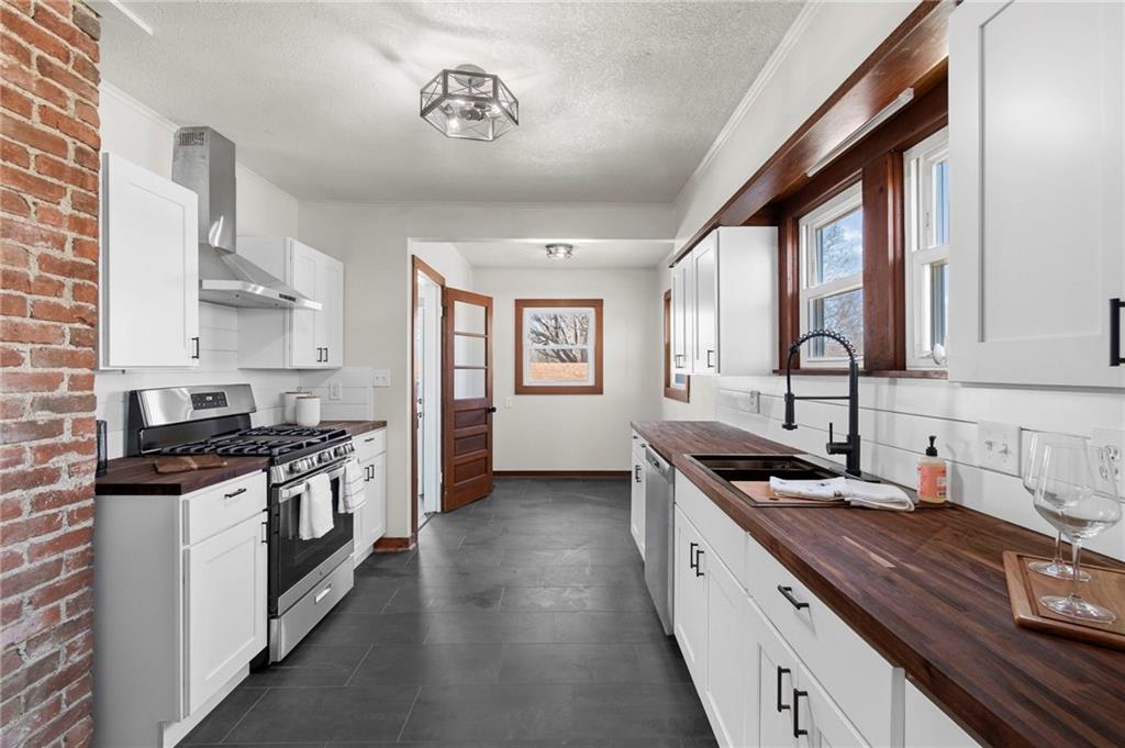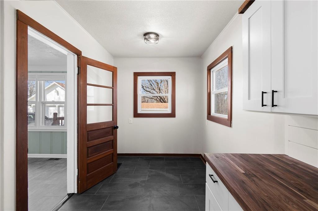 Beautiful 1925 home with a charming stone exterior located in Kansas City, Kansas, within the Turner School District. Thoughtfully remodeled with modern updates, this home has maintained its original character and timeless appeal.Inside, you’ll find a warm and inviting living room featuring a cozy fireplace, refinished hardwood floors, and classic trim details that highlight the home’s historic charm. Large windows bring in plenty of natural light, creating a bright and welcoming atmosphere throughout the main living spaces.The home features a completely remodeled kitchen with updated flooring, countertops, and cabinets, along with an updated bathroom that blends modern convenience with the home’s vintage character. Major system improvements provide peace of mind, including a new septic tank, new furnace, and new electric hot water heater. Additional updates include fresh interior paint and updated light fixtures throughout the home. The property also features replacement windows, a 200-amp electrical service panel, and a roof that has been updated from the original.A standout feature of the property is the huge two-car detached garage with a workshop area—perfect for projects, hobbies, or additional storage—plus a separate bay door ideal for a riding lawn mower or yard equipment. Situated on a spacious 0.79-acre lot, there is plenty of room for pets, outdoor activities, gardening, or simply relaxing outside. Enjoy quiet mornings or evenings on the porch while taking in the peaceful surroundings.Conveniently located just minutes from the highway, this property offers easy access for commuting while still providing the space and charm of a unique property. The oversized septic system also includes a one-year maintenance plan for the buyer, and a stackable washer and dryer on the main floor are included for added convenience.
