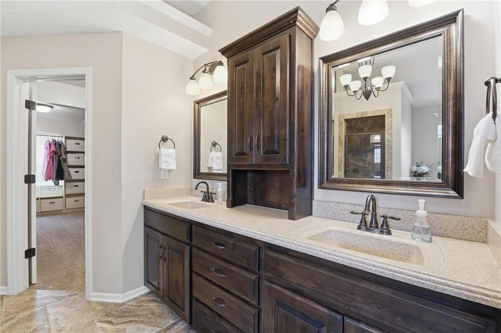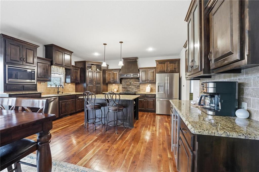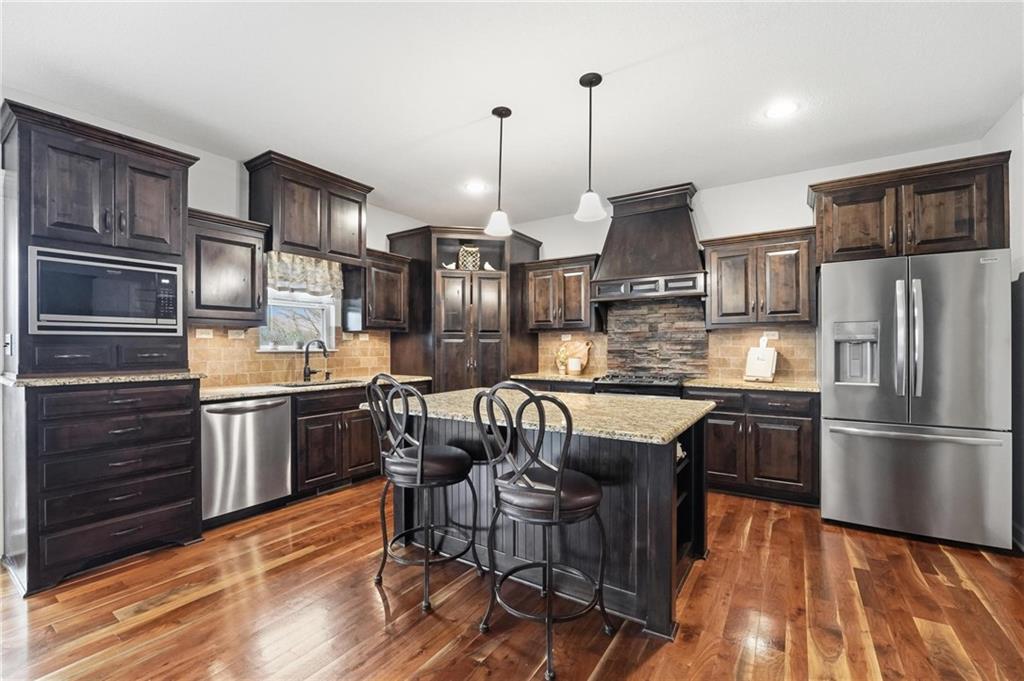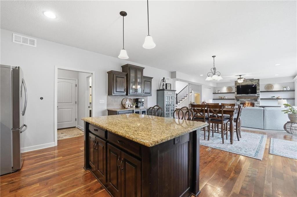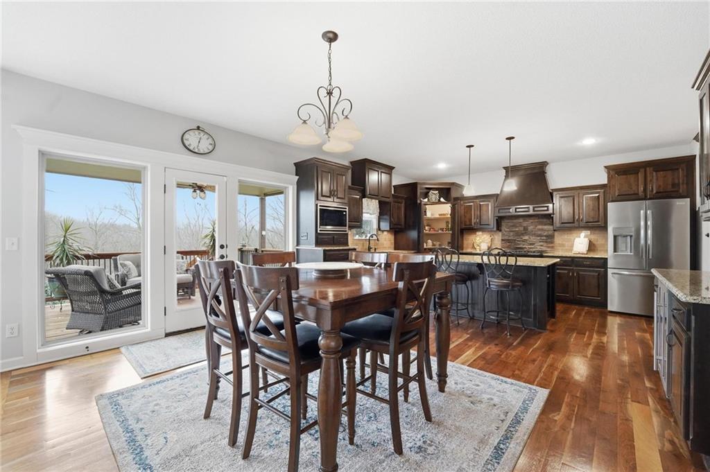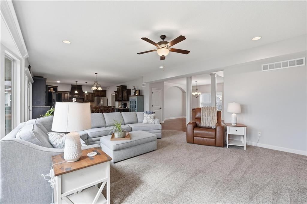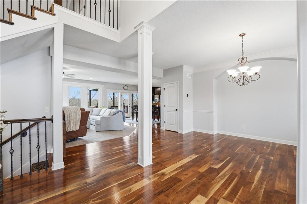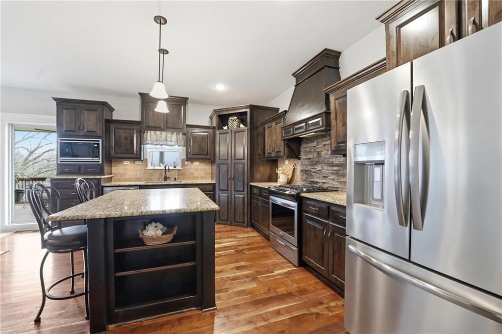 Welcome home to this stunning 2-story in the highly sought-after Thousand Oaks subdivision. With 6 bedrooms and 5 full bathrooms, this home offers exceptional space, comfort, and flexibility for today’s lifestyle. The main level features beautiful hardwood floors through much of the living space and a layout designed for both everyday living and entertaining. The formal dining room provides the perfect setting for gatherings and holiday meals, while the inviting family room is anchored by a cozy gas fireplace and large windows that fill the home with natural light. The finished basement adds even more living space, making it a perfect area for family movie nights, game days, or hosting friends. It also includes the 6th bedroom and an additional full bathroom, creating a great setup for guests, extended family, or a private retreat. Located in the highly acclaimed Thousand Oaks community, this home offers the opportunity to live in one of the Northland’s most desirable neighborhoods while enjoying the space and functionality today’s buyers are looking for. The kitchen is designed with both style and function in mind, offering granite countertops, a large pantry, and a sunny breakfast area that opens to a covered deck, making it easy to enjoy morning coffee or evening meals outdoors. A main-level bedroom/office offers flexibility and works perfectly as a home office or guest space. Upstairs, you will find the conveniently located laundry room, a beautiful primary suite designed for comfort and relaxation, and three additional spacious bedrooms. The finished walkout lower level expands the living space and opens to a covered patio, providing even more room to entertain or unwind. You'll also appreciate the abundance of storage throughout the home. With fresh paint and a fantastic location in coveted Thousand Oaks, this home is truly move-in ready.