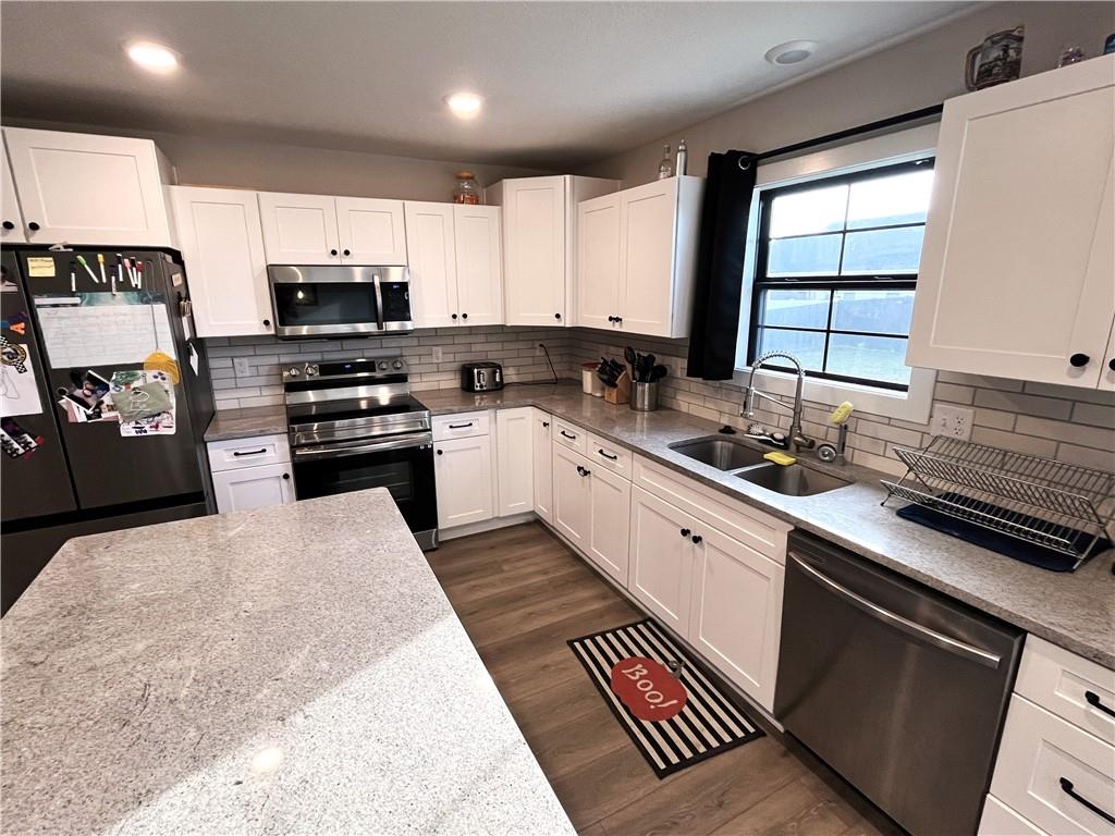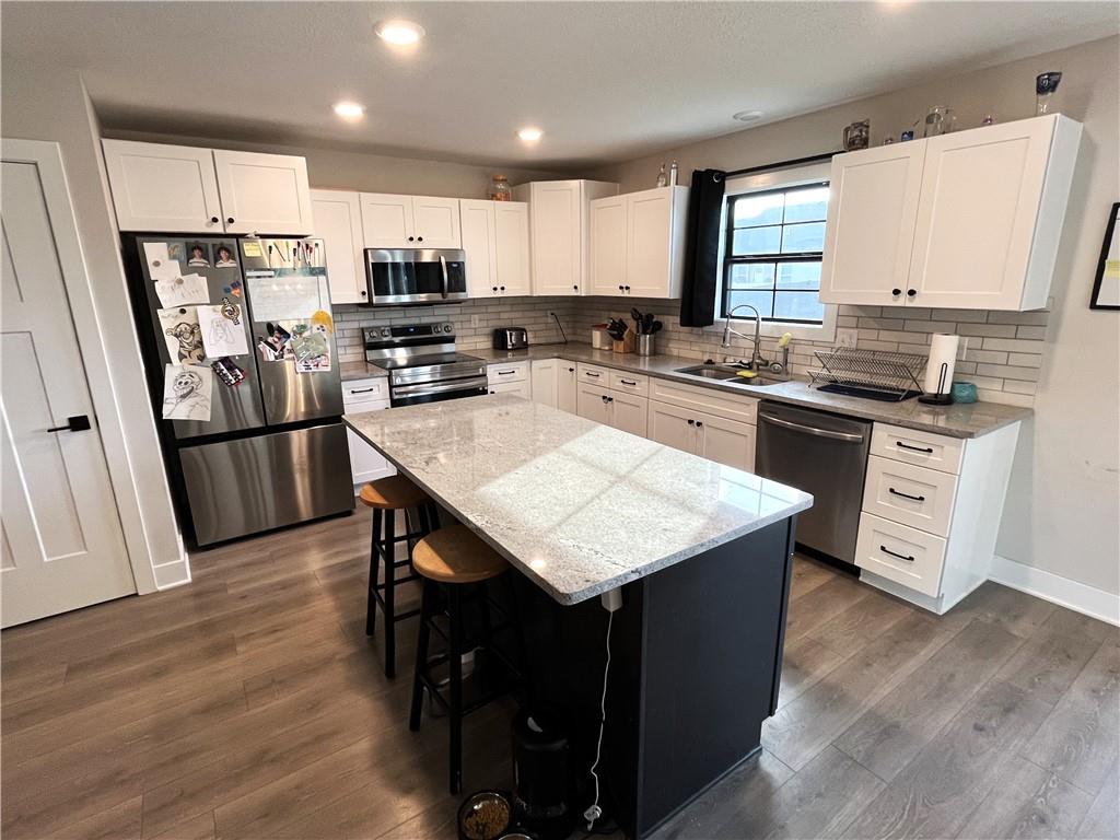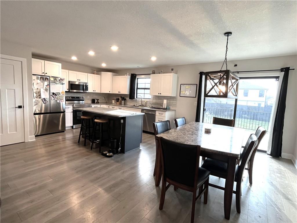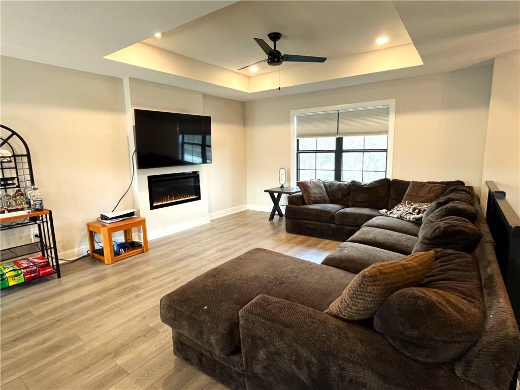 PRECISELY LOCATED BETWEEN WAFB & THE ‘BURG Well-appointed home featuring a privacy-fenced oversized backyard and a spacious deck perfect for relaxing or entertaining. Open kitchen and living room with tray ceilings, an electric fireplace, and a large island with bar seating. The kitchen also offers a walk-in pantry and includes all stainless steel appliances. The primary bedroom suite provides plenty of storage with two closets, including a walk-in closet, along with a double-sink vanity and a huge walk-in shower with glass doors. A main-level utility room adds everyday convenience. Additional features include an oversized garage and a finished lower level offering a bedroom, family room, and full bathroom. Conveniently located just off the state highway halfway between Whiteman Air Force Base and Warrensburg, this home also sits just a quick hop onto the Freedom Trail for easy access to outdoor recreation.