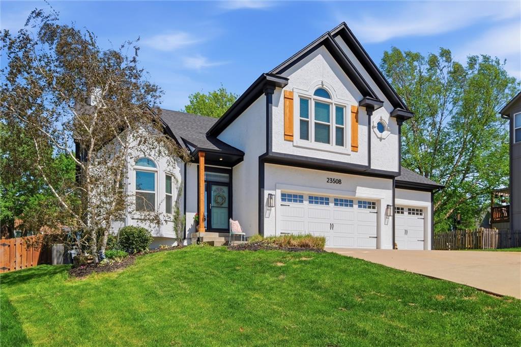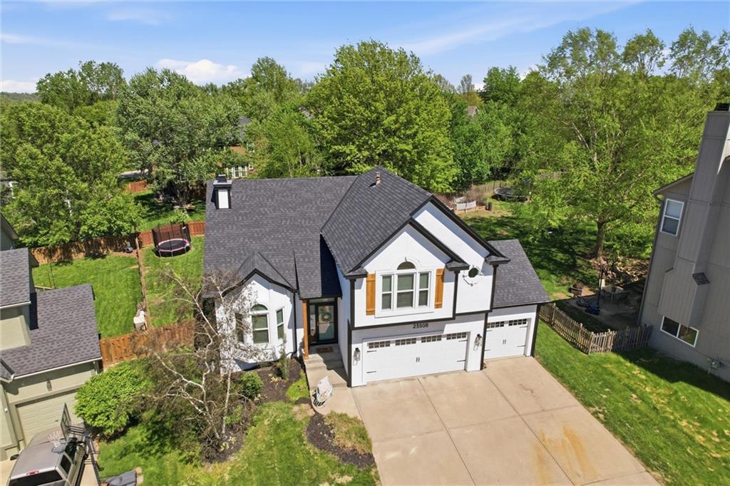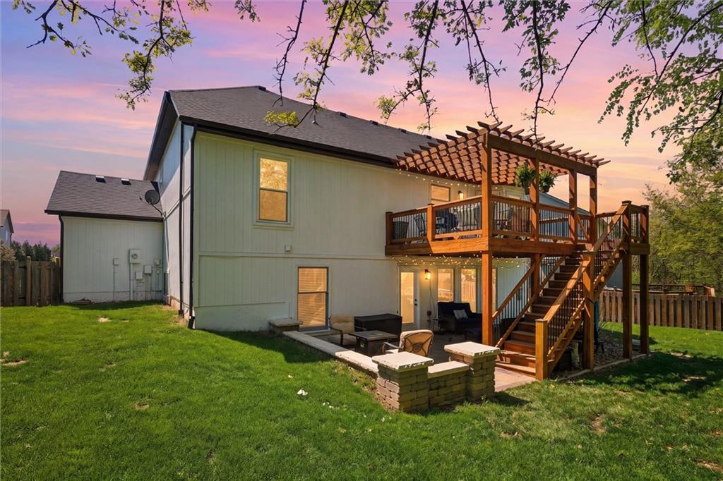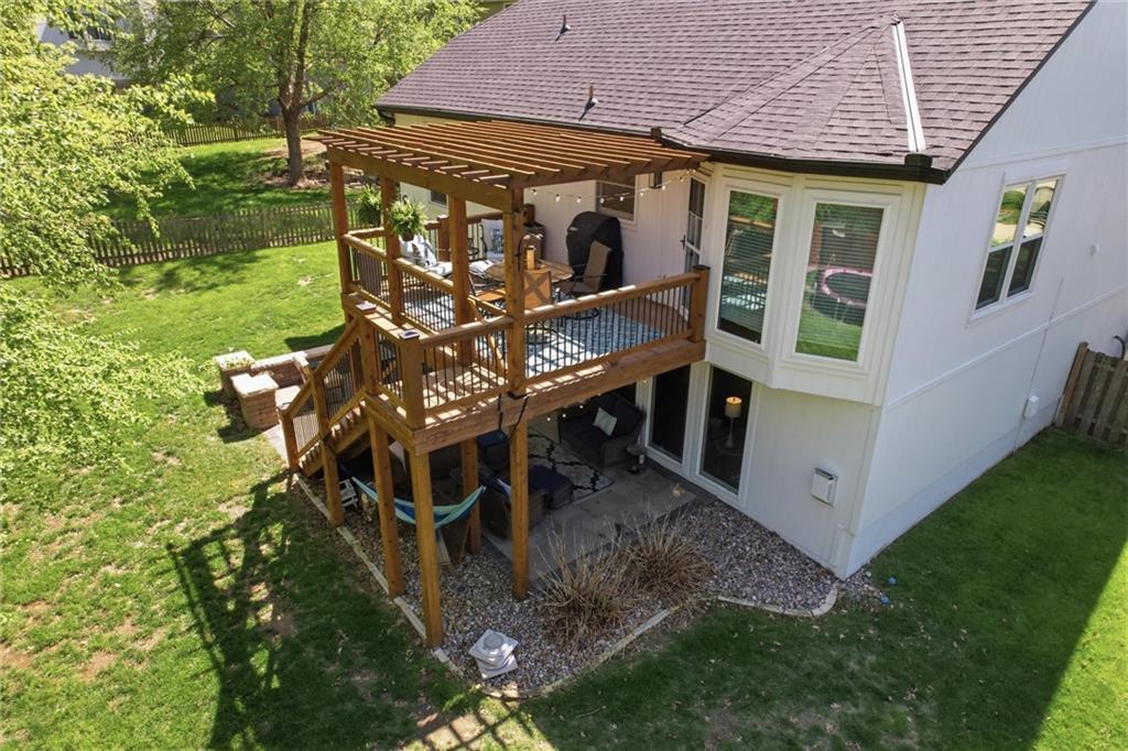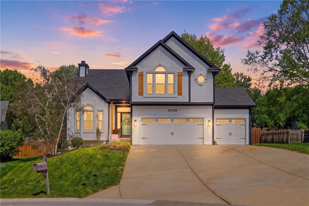 Welcome home to this move-in ready home situated on a quiet cul-de-sac and packed with updates inside and out! This beautifully maintained home offers peace of mind with a long list of recent improvements and designer touches including a new roof, gutters, fresh exterior paint, new shutters, new garage doors and professional landscaping in 2024. Newer windows, too! Step inside to find newly refinished hardwood floors, fresh interior paint and new stair carpeting. The main level has a spacious kitchen with professionally painted cabinetry, a walk-in pantry with a custom barn door and upgraded appliances. This home features TWO cozy fireplaces, perfect for relaxing evenings and entertaining. The walk-out lower level provides great natural light in the large second living space that features a wet bar. Lower level also has two bedrooms and the 3rd full bathroom. Step out back to a very spacious, professionally designed, partially covered patio, fenced yard and deck with pergola. This home is within walking distance to the neighborhood swimming pool and tennis courts and the newly designed Garrett Park. Located in the highly sought De Soto school district. This one is gorgeous and a must see!