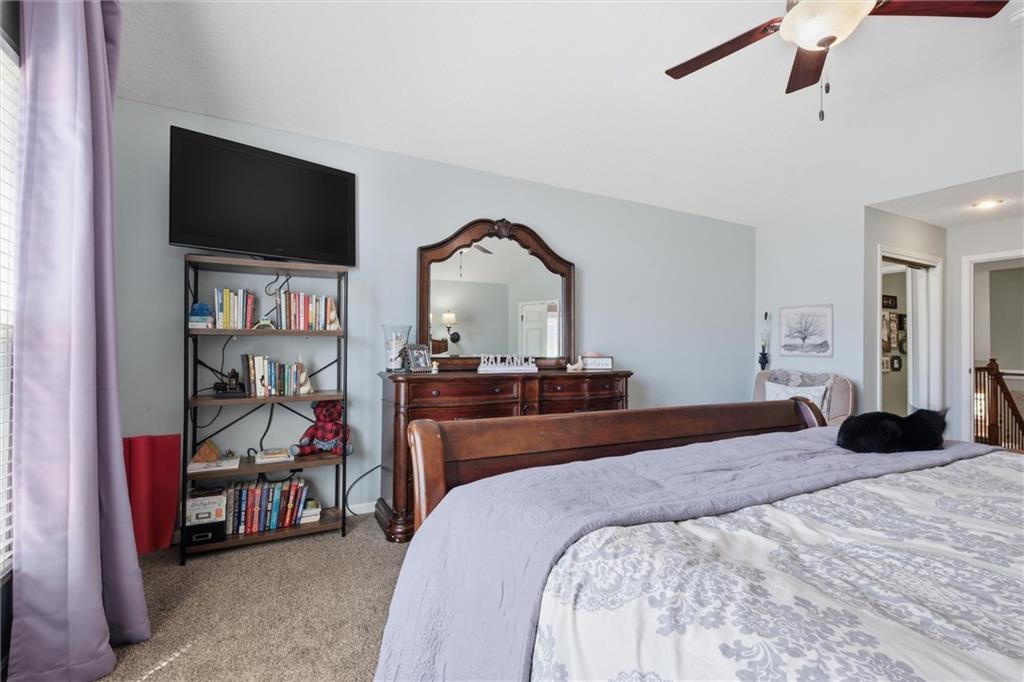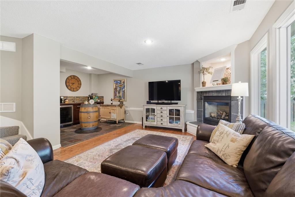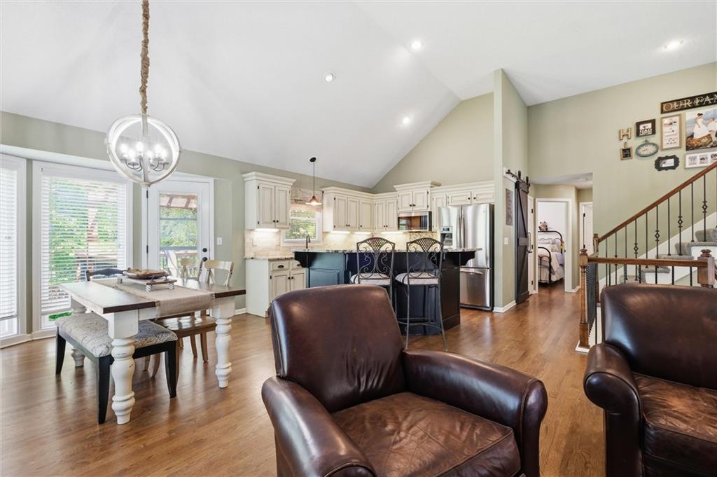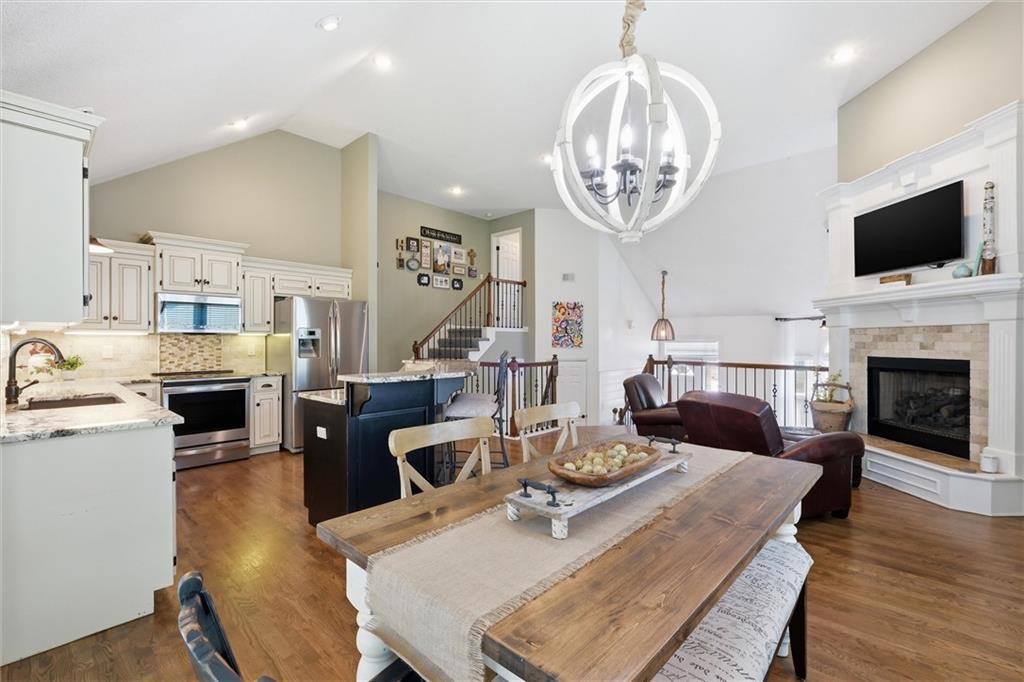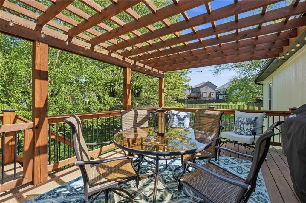 Welcome home to this move-in ready home situated on a quiet cul-de-sac and packed with updates inside and out! This beautifully maintained home offers peace of mind with a long list of recent improvements and designer touches including a new roof, gutters, fresh exterior paint, new shutters, new garage doors and professional landscaping in 2024. Newer windows, too! Step inside to find newly refinished hardwood floors, fresh interior paint and new stair carpeting. The main level has a spacious kitchen with professionally painted cabinetry, a walk-in pantry with a custom barn door and upgraded appliances. This home features TWO cozy fireplaces, perfect for relaxing evenings and entertaining. The walk-out lower level provides great natural light in the large second living space that features a wet bar. Lower level also has two bedrooms and the 3rd full bathroom. Step out back to a very spacious, professionally designed, partially covered patio, fenced yard and deck with pergola. This home is within walking distance to the neighborhood swimming pool and tennis courts and the newly designed Garrett Park. Located in the highly sought De Soto school district. This one is gorgeous and a must see!