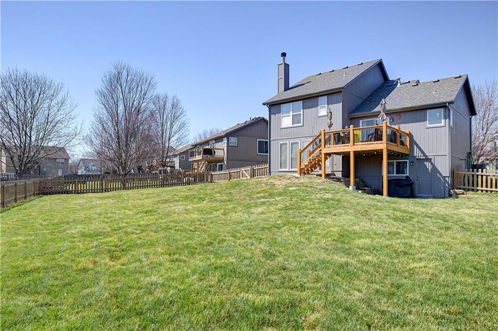 ABSOLUTELY THE BEST BACKYARD IN OLATHE! SAME Backyard as Next Door Neighbor recently SOLD for $432k. QUARTER ACRE, FENCED and NO-NEIGHBOR VIEW, backs to open field. THIS UPGRADED 3BR HOME has TONS OF NEW: NEW FENCE, NEW ROOF, NEW AIR CONDITIONER, YOUNG EXTERIOR PAINT & NEWLY RESTAINED & RESTORED DECK. LOTS TO OFFER with this CLEAN and TIDY, MOVE-IN-READY Home with Incredible PRIVACY and LARGE BACKYARD!! Lots of Stylish touches with Hard Surface, TILED BATHROOMS, TILED LAUDRY ROOM and Modern Colors to match. WALK-IN CLOSETS & TWO SEPARATE LIVING SPACES for ADDED VALUE. Hurry!! THIS IS PRICED TO GO QUICK!!