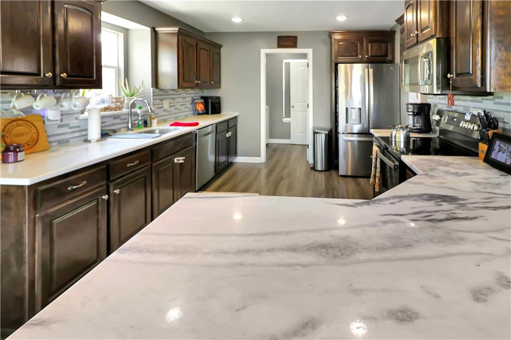 BUILT IN 2022 !!!!! NEW-ish raised ranch floorplan on a large corner lot in the perfectly located Hawthorne neighborhood of Warrensburg. Backing up to green space, this home is ideal for bird watching and peaceful mornings. The main level features three bedrooms - one of which has a very nice ensuite setup. The living room is adjacent to a smaller dining area as well as a very spacious kitchen (richly stained wood cabinets, gorgeous white marble countertops....) and an attached laundry & pantry area! The lower level has a full bathroom, bar, recreational area, walkout door to the backyard. The garage is large, huge yard, long driveway, green space behind the home.... this is a fantastic home and you will want to look at it before it's gone!--