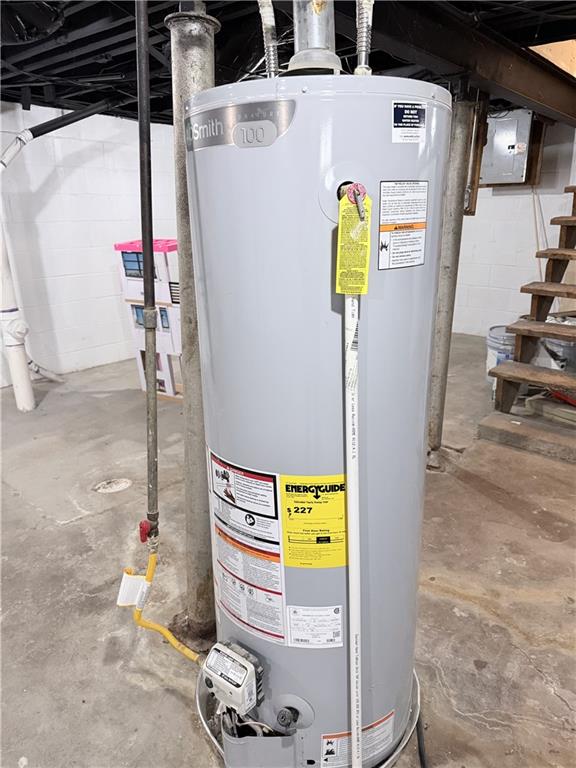 Utilities with gas water heater and electric panel
