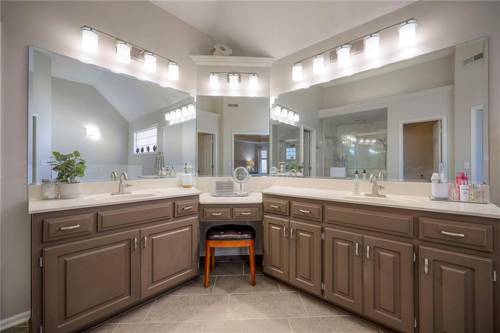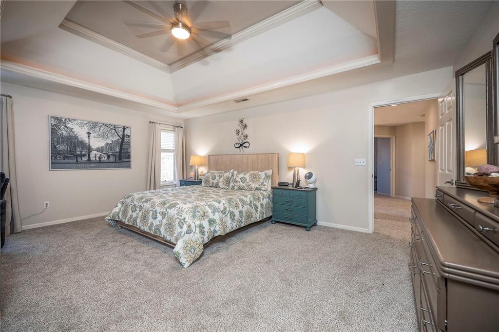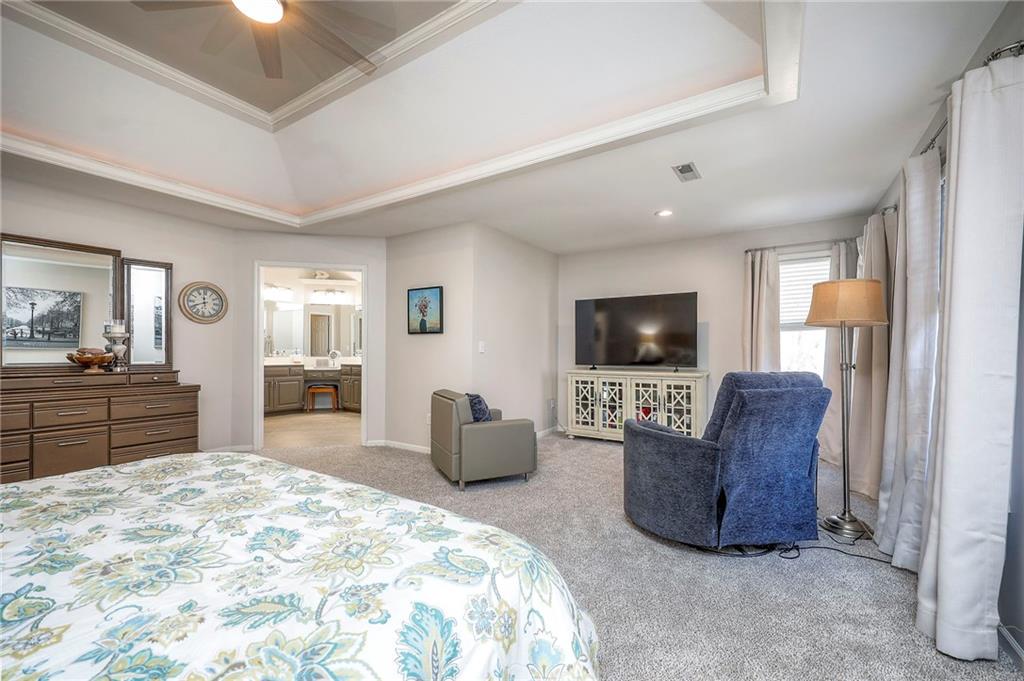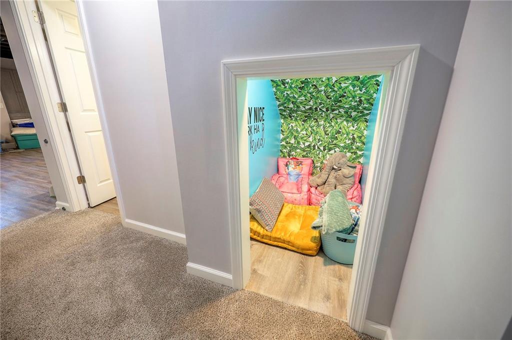Beautifully updated two-story home designed for comfortable, connected family living. The main level welcomes you with a spacious living room highlighted by dramatic floor-to-ceiling windows that fill the space with natural light and create the perfect gathering area. Just steps away, the updated kitchen and cozy hearth room make everyday living and entertaining effortless. A dedicated main-level office provides the ideal work-from-home setup. The kitchen shines with new cabinetry, an oversized quartz island perfect for prep and gathering, stainless steel appliances, abundant counter space, and a pantry—bringing both function and a touch of luxury to daily cooking. New carpet throughout adds to the home’s fresh, refined feel. Upstairs, the spacious primary suite features its own private sitting area, creating a peaceful retreat at the end of the day. Three additional bedrooms and convenient bedroom-level laundry complete the upper floor. Step outside to enjoy the oversized fenced backyard with beautiful landscaping and a multi-level deck—perfect for play, entertaining, or relaxing evenings at home. The finished basement offers even more living space, along with a craft room and plenty of storage. A truly move-in-ready home offering style, function, and room to grow.
