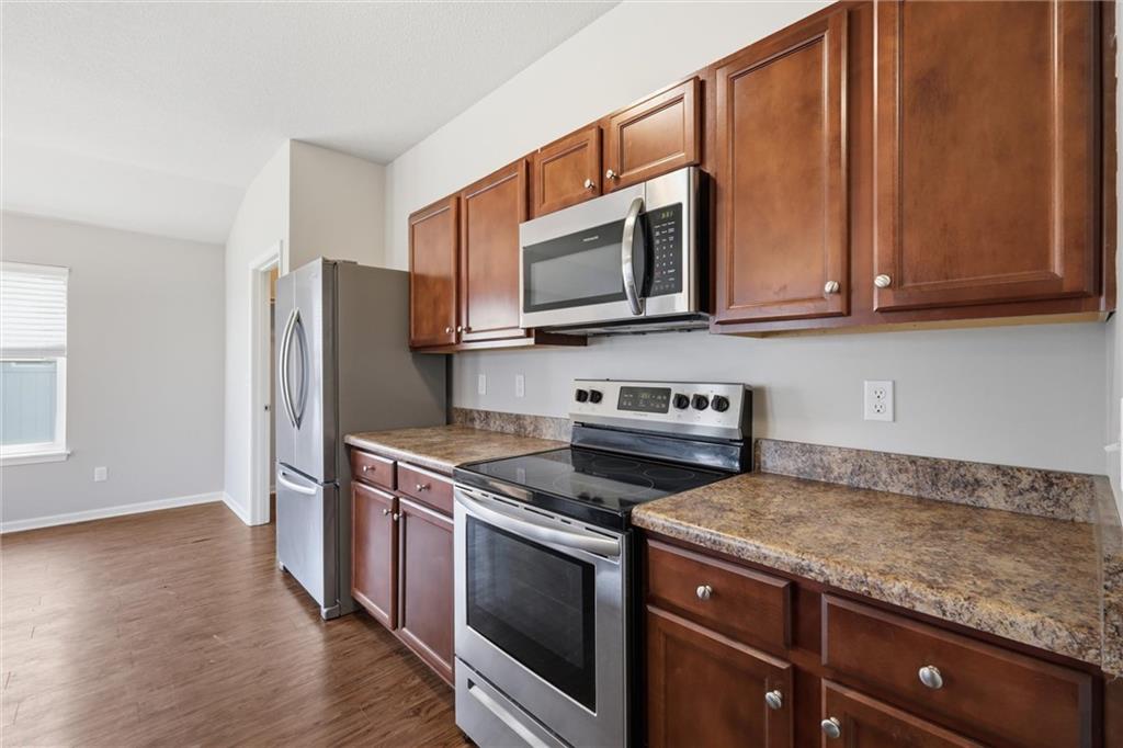 Built in 2018, this contemporary ranch-style residence is designed for the modern family, featuring an efficient and inviting floor plan that spans approximately 1,510 square feet of living space. From the moment you pull into the attached two-car garage, the home's meticulous maintenance and curb appeal in the St. John’s Highlands neighborhood make a lasting first impression. The interior of the home is bathed in natural light, highlighting a neutral and soothing color palette that complements any décor style. The heart of the home is a spacious, open-concept kitchen and living area, perfect for busy weekday mornings or relaxed weekend gatherings. The kitchen is a chef’s delight, equipped with elegant wooden cabinetry, ample counter space for meal prep, and a suite of modern stainless steel appliances, including a dishwasher, microwave, and refrigerator. The seamless transition from the kitchen to the dining and living areas ensures that the cook is always part of the conversation.With three well-appointed bedrooms and two full bathrooms, there is plenty of room for everyone to find their own corner of comfort. The primary suite serves as a private retreat, complete with a generous closet and an ensuite bathroom featuring dual sinks and a classic bath/shower combination. The additional two bedrooms are versatile, making them ideal for children, guests, or a dedicated home office. For those needing extra storage or a future recreation space, the large basement provides a blank canvas to expand your living area to suit your family's unique needs.Stepping outside, the 0.18-acre lot offers a manageable yet spacious backyard, providing an open space for children to play, pets to roam, or for hosting summer barbecues under the Kansas sky. Situated in a community known for its family-friendly atmosphere and access to highly-rated Gardner schools, this home provides the stability and convenience families crave.