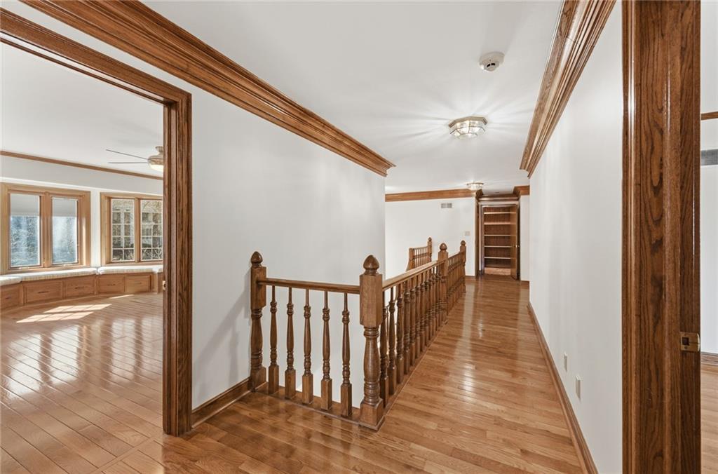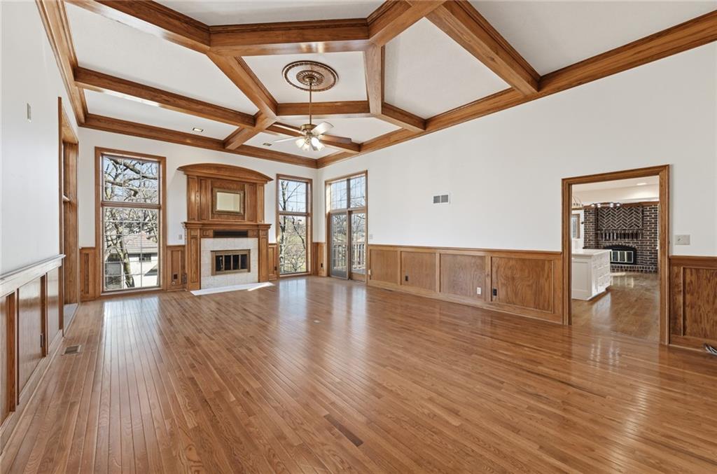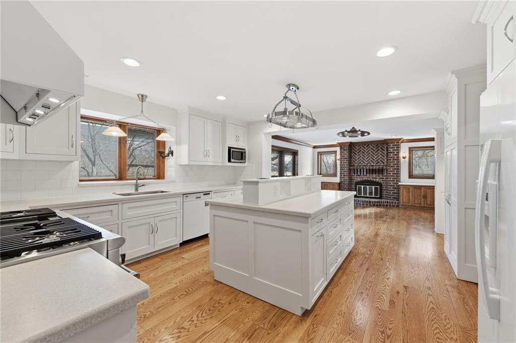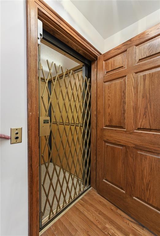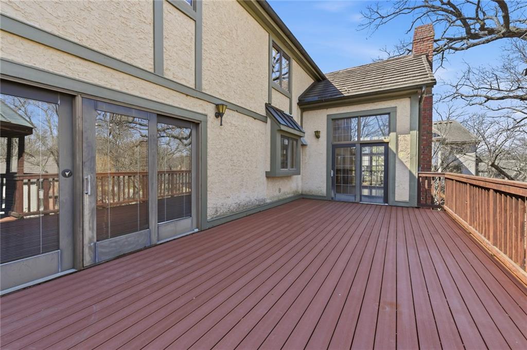 Stunning Great Tudor in one of Lenexa's most beautiful neighborhoods-Maplewood! Amazing home in gated community. Complete with ELEVATOR to allow easy movement between all 3 floors. Hardwood Floors on first and second floors. Kitchen remodeled in 2016 with DUAL FUEL THERMADOR RANGE with 6 BURNER PLUS GRILL-GAS, DOUBLE ELECTRIC OVENS AND HAS ABUNDANT STORAGE for someone who likes to cook. Eating area off kitchen. Primary Bedroom/Bath on Main Floor. Bath with PROGRAMABLE HEATED TILE FLOOR and HEATED TOWEL RACK with Large walk in closet. First floor laundry with storage and laundry chute from second floor. Other first floor rooms include office, dining room, eat in kitchen and great room, with 12 foot ceilings, coffered ceiling detail and oak wainscoting. 3 large bedrooms on second floor all with remodeled en suite bathrooms and large walk in closets, Cedar closet located on second floor. Basement has SECONDARY KITCHEN WITH WALK OUT BASEMENT as well as 5th BEDROOM and BATHROOM with SHOWER and SEPERATE BATHTUB! Also a possible exercise room (tiled), craft room, office, large great room or rec room. 3 working fireplaces. Each floor has its own heating and air conditioning system to allow separate control to individual taste. Outside has deck and gazebo off kitchen and brick patio off basement. Maplewood is charming with its winding streets, mature trees and wonderful landscaped parkways. Nearby restaurants, shopping, and access to highway. Shawnee Mission Schools.