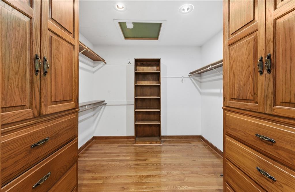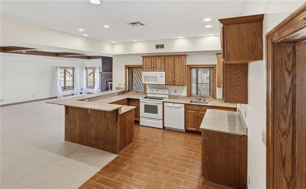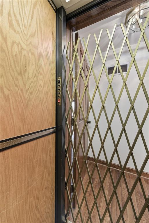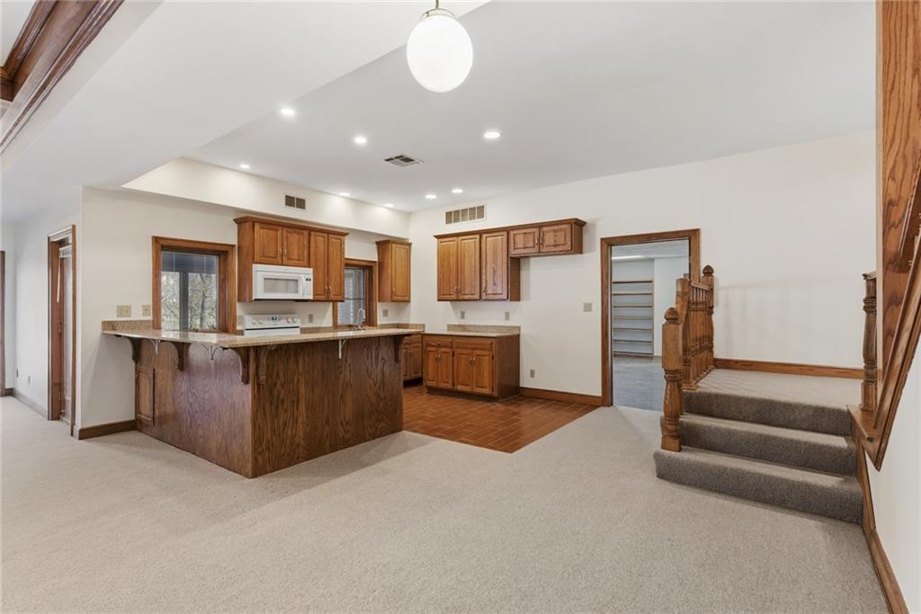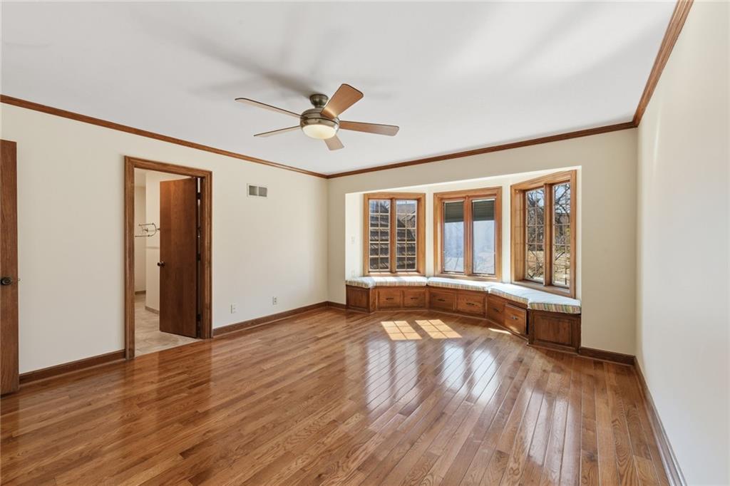 Stunning Great Tudor in one of Lenexa's most beautiful neighborhoods-Maplewood! Amazing home in gated community. Complete with ELEVATOR to allow easy movement between all 3 floors. Hardwood Floors on first and second floors. Kitchen remodeled in 2016 with DUAL FUEL THERMADOR RANGE with 6 BURNER PLUS GRILL-GAS, DOUBLE ELECTRIC OVENS AND HAS ABUNDANT STORAGE for someone who likes to cook. Eating area off kitchen. Primary Bedroom/Bath on Main Floor. Bath with PROGRAMABLE HEATED TILE FLOOR and HEATED TOWEL RACK with Large walk in closet. First floor laundry with storage and laundry chute from second floor. Other first floor rooms include office, dining room, eat in kitchen and great room, with 12 foot ceilings, coffered ceiling detail and oak wainscoting. 3 large bedrooms on second floor all with remodeled en suite bathrooms and large walk in closets, Cedar closet located on second floor. Basement has SECONDARY KITCHEN WITH WALK OUT BASEMENT as well as 5th BEDROOM and BATHROOM with SHOWER and SEPERATE BATHTUB! Also a possible exercise room (tiled), craft room, office, large great room or rec room. 3 working fireplaces. Each floor has its own heating and air conditioning system to allow separate control to individual taste. Outside has deck and gazebo off kitchen and brick patio off basement. Maplewood is charming with its winding streets, mature trees and wonderful landscaped parkways. Nearby restaurants, shopping, and access to highway. Shawnee Mission Schools.