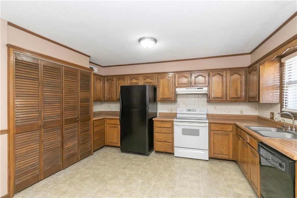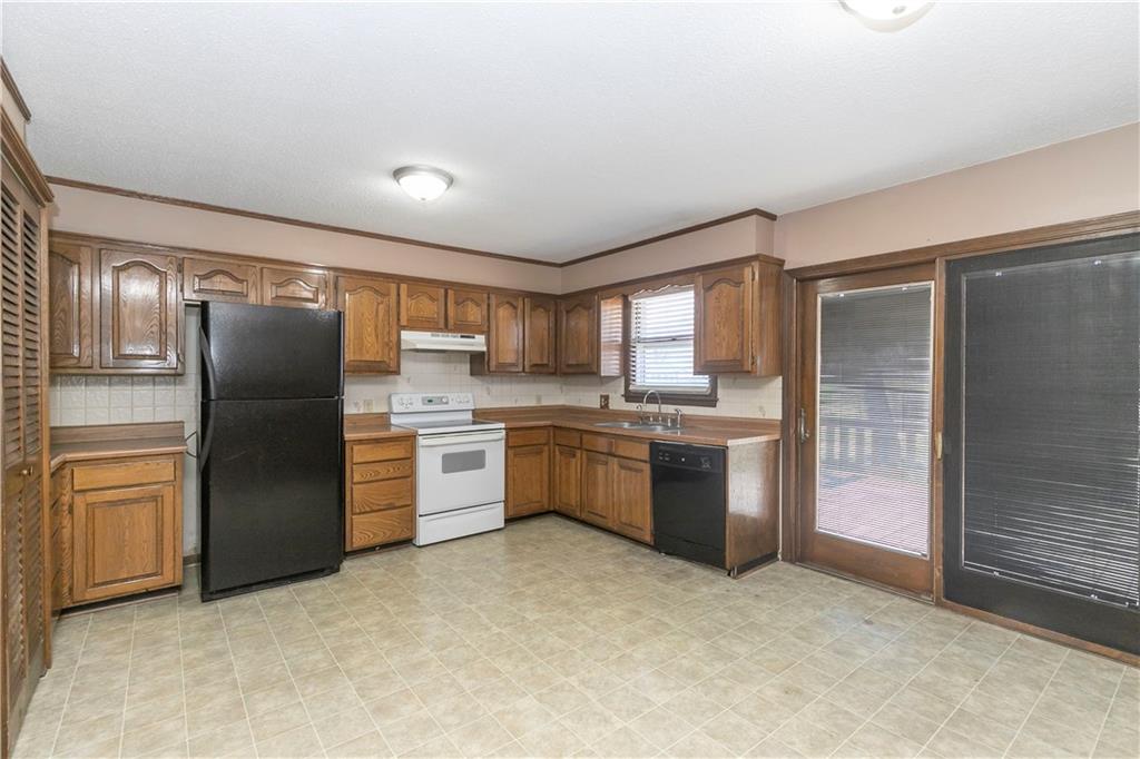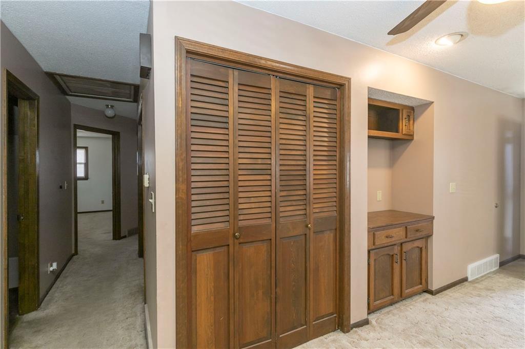 Spacious and full of value, this 3-bedroom, 2-bath home with an oversized 2-car garage is one you won’t want to miss. The large eat-in kitchen offers abundant cabinetry, a pantry, and a sliding door that opens to the deck—perfect for grilling or outdoor dining. All appliances are included. The inviting living room features built-ins and a charming bay window, while newer blinds add a fresh touch throughout. All bedrooms are generously sized, and the convenient bedroom-level laundry room includes a built-in ironing board. Hobbyists will love the deep garage with workshop tables, cabinets, exhaust fans and a utility sink. The utility room provides an additional workspace. A basement storm shelter adds peace of mind. Other highlights include 200-amp electrical service, a maintenance-free exterior, and a fenced backyard complete with a shed and playhouse. Enjoy peaceful views of the neighbor’s pond from the front porch. A brand-new roof will be installed in Spring 2026. Located near Hwy 7 with quick access to parks, schools, a golf course, and more—this home offers comfort, convenience, and room to grow.