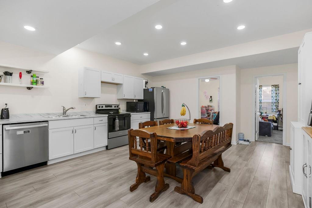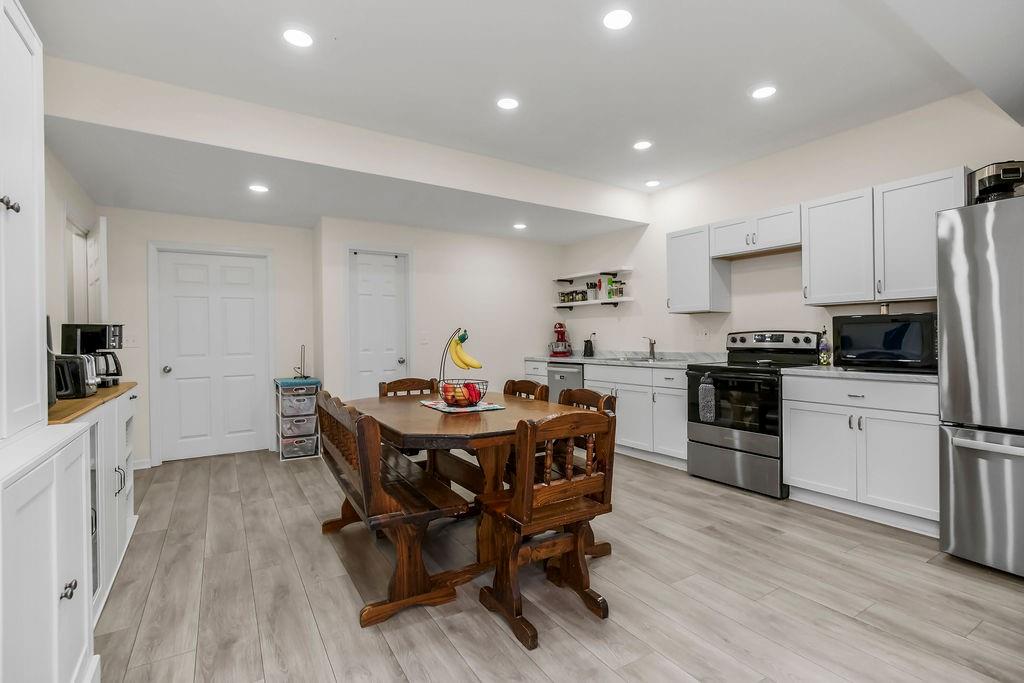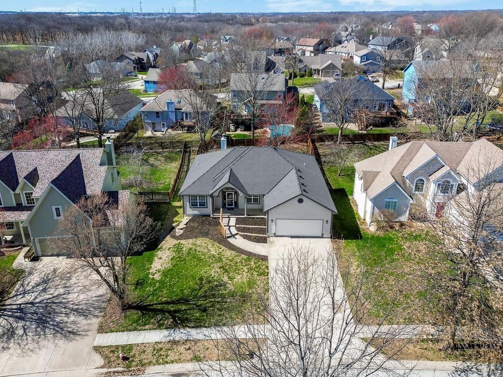 Tucked away on a quiet cul-de-sac with no through traffic, this spacious ranch backs to mature trees and offers incredible versatility with two separate living areas. The main level includes a full kitchen with stainless steel appliances, 3 bedrooms, including the primary suite, and two full bathrooms. The recently finished walkout lower level features its own full kitchen with stainless steel appliances, 3 additional bedrooms, a full bath, a rec room, and an office - perfect for multi-generational living or private guest space. Enjoy outdoor living with a large deck overlooking the fenced backyard, a walk-out patio on the lower level, and plenty of yard space. Updates include new exterior paint, newer HVAC, updated fixtures and hardware, and a new garage overhead door. This home is a short drive to many of Kansas City's best dining, shopping, and entertainment - without being in the city limits and paying the e-tax.