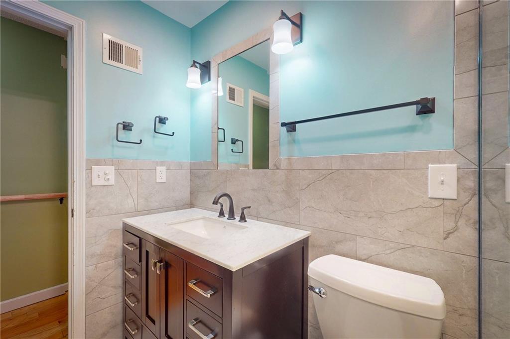 This well-maintained side-to-side split is ready for you to call home! Offering 4 bedrooms, 2½ bathrooms, and a 20x20 2-car garage, this home has been thoughtfully updated and beautifully cared for. Major updates include a new roof (2023), HVAC (2021), siding (2022), newer electrical panel, and updated decks—giving you peace of mind for years to come. Step inside to find gorgeous hardwood floors throughout the entire home. The main level features a formal living room that flows into the dining room and a 1/2 bath, creating a great space for gatherings and entertaining. The layout continues into the kitchen with a breakfast area, offering plenty of room for everyday living. Just up one level you’ll find a spacious bedroom, updated full bath, and an extra-large laundry room. Continue up to the next level where there are three additional bedrooms, including the primary suite with an updated en-suite bathroom and a 12x12 private deck overlooking the backyard. All three bathrooms have been tastefully updated. From the kitchen, step down to the cozy great room with a fireplace, perfect for relaxing evenings. The lower level also includes a 27x21 unfinished basement area, providing excellent storage or the opportunity to finish and add additional living space. Additional features include a Generac whole-house generator for added security and comfort. Enjoy the outdoors in the fenced backyard with a 18x10 storage shed. Step out from the back door to the 13x10 screened-in porch, a 13x13 concrete patio, then onto the stone patio with a hot tub—an ideal space to unwind or entertain guests. This home offers space, updates, and multiple indoor and outdoor living areas—all ready for its next owner!