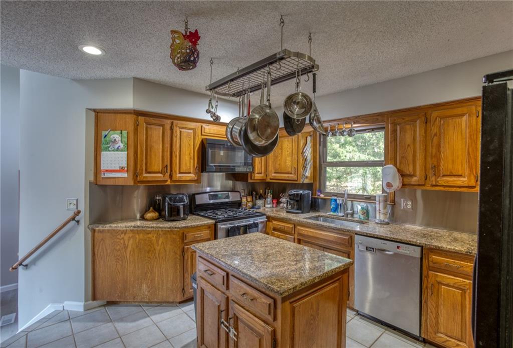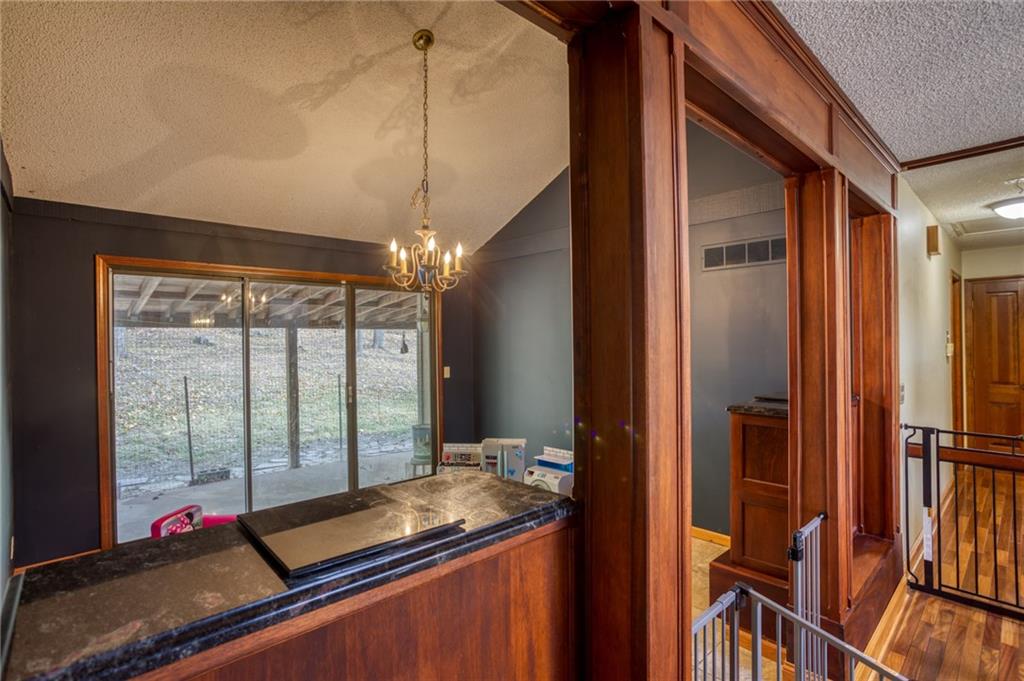 Come see this unique freshly painted home in Blue Valley School district! It features a spacious living room with vaulted ceiling and fireplace, plus a lower level family room with second fireplace. Granite countertops in the kitchen and custom wood finishes in the dining room, 4 bedrooms, 2.5 baths, large wooded lot with fire pit. Carpet and foundation repair allowance with acceptable offer.