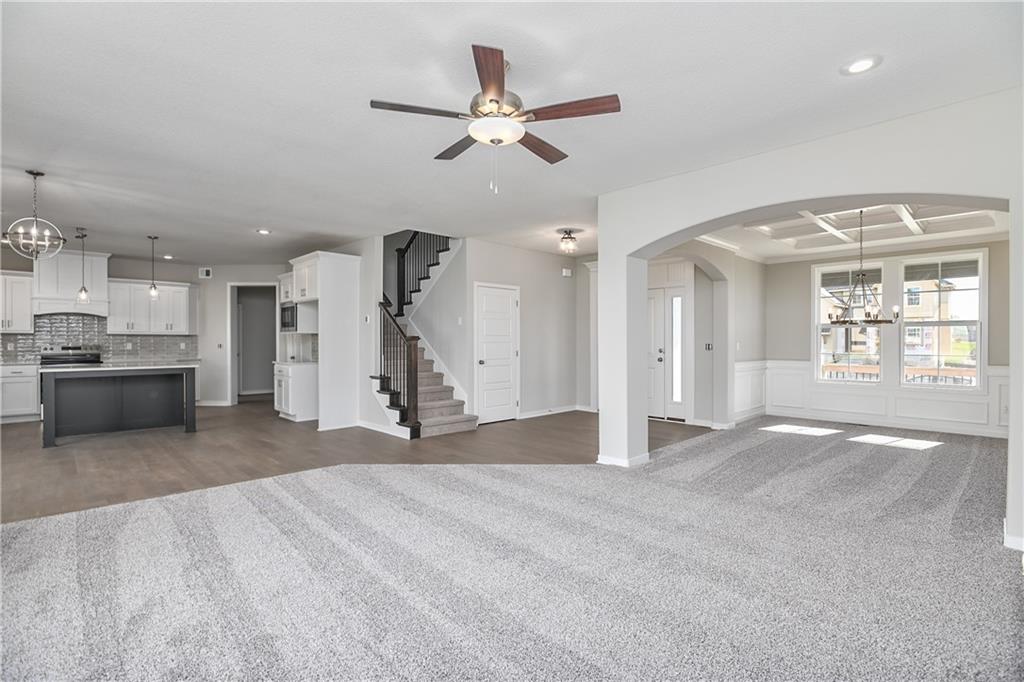 This updated version of the beloved original Levi plan offers expanded square footage and premium upgrades throughout. The open-concept main floor features a spacious kitchen and breakfast area, a larger granite center island with ample seating, and upgraded granite countertops in the kitchen. Kitchen offers soft closet doors and drawers. Enjoy versatile living with a main floor flex room—perfect for a home office or 5th bedroom—plus a mud room with boot bench and entry closet. Upstairs, the expanded master suite boasts a separate sitting area, larger walk-in closet for 2 different sections, and an upgraded primary bath with a freestanding tub. The laundry room has been enhanced with additional workspace, and the open loft with window provides extra living space. Located within walking distance to Lake Olathe, this home also offers access to neighborhood amenities including trails, a pool, and playground. Don’t miss your chance to own this upgraded and spacious home in a prime location!