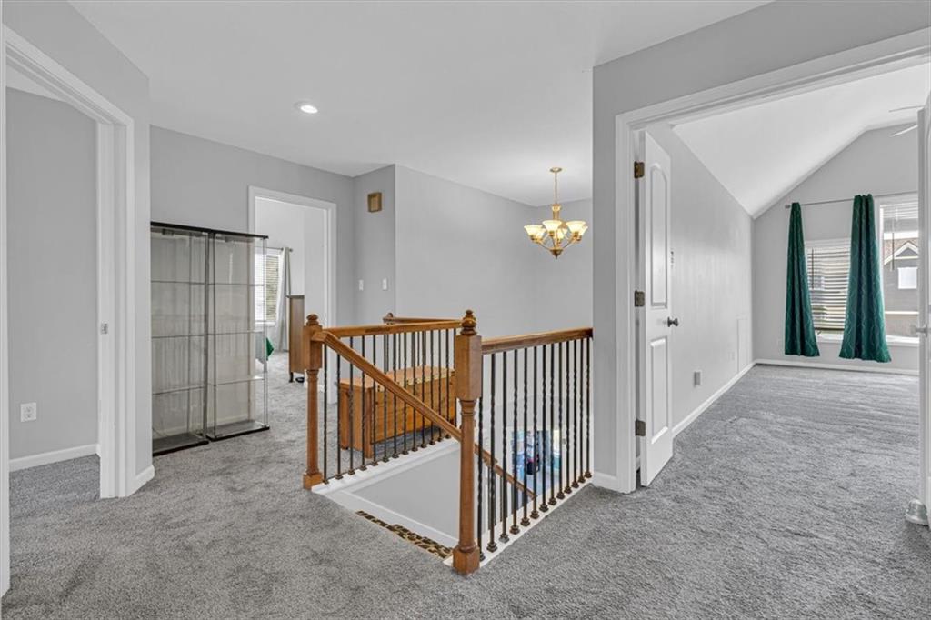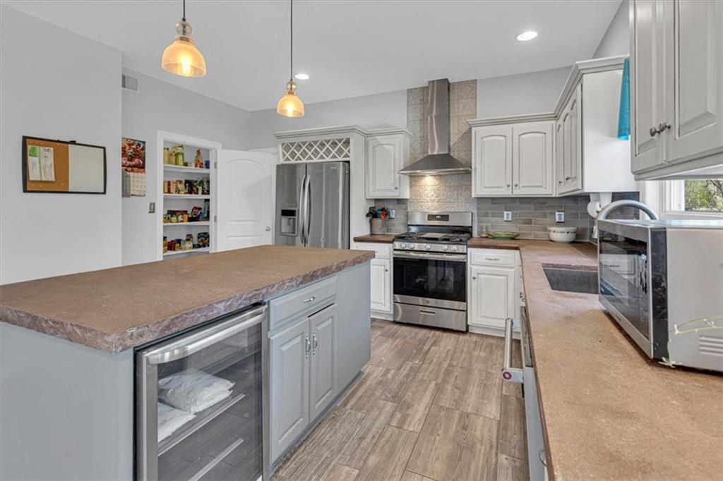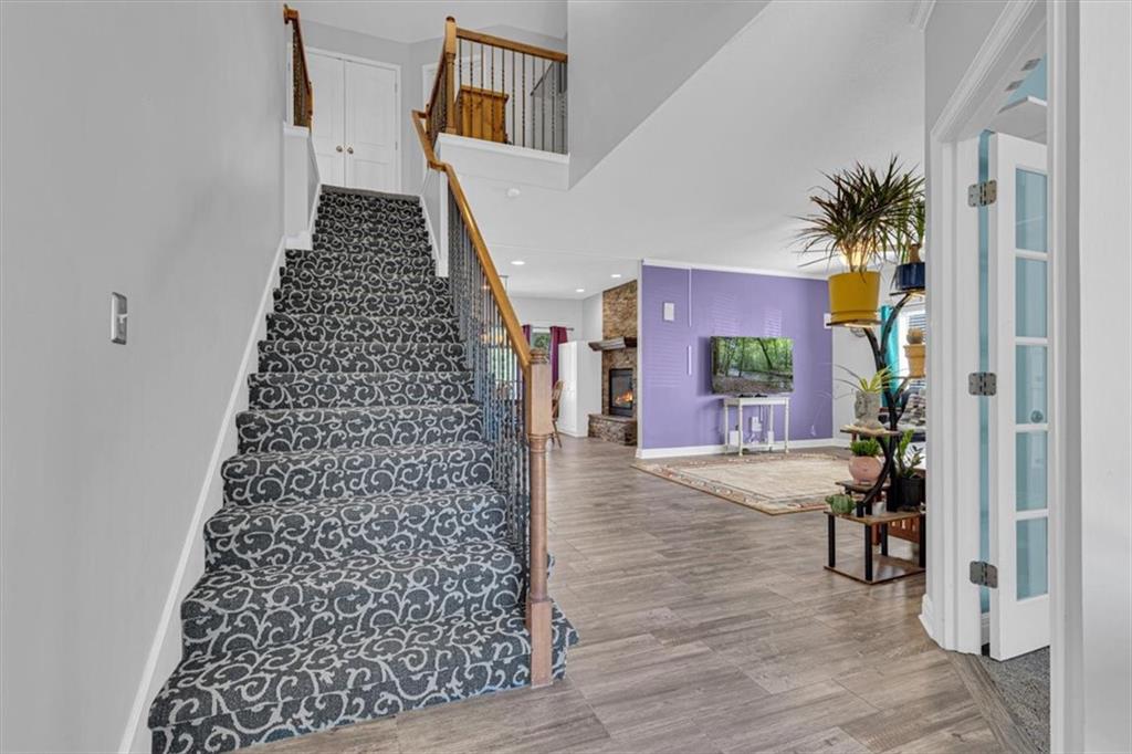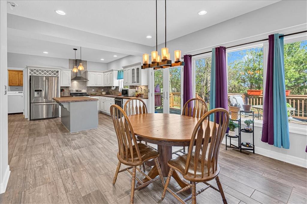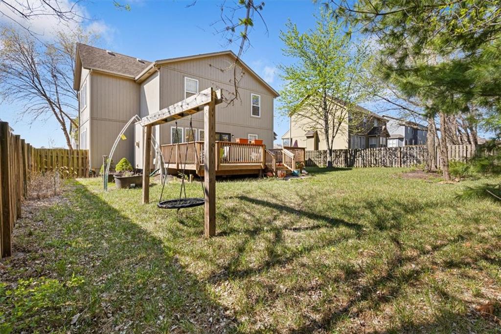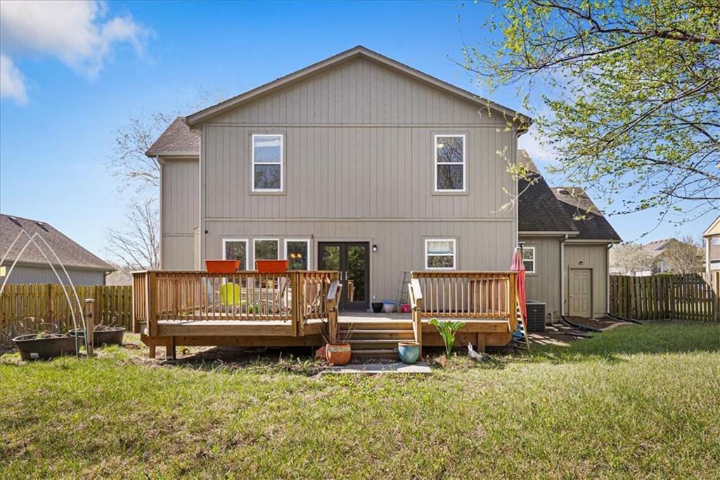 Spacious 4 bedroom, 3.5 bath home, backing to open land with no immediate rear neighbors, this property offers privacy, outdoor enjoyment, and room to grow. The main level features an open concept living, dining, and kitchen layout, and a dedicated home office right off the entry, providing an ideal work-from-home setup option. The dining area includes a fireplace and opens to the kitchen with island seating, gas range, stainless steel appliances, and a beverage fridge. The large deck is accessible from the main living area and overlooks the backyard. Upstairs are four bedrooms, including a primary suite with walk-in shower. Two bedrooms share a roomy bathroom, and the fourth bedroom has its own full bath. Laundry is also located on the upper level for added convenience. The basement includes partially finished space with framed walls and electrical in place and is ready for flooring, providing the option for an additional living space, recreation room, or workspace. This home won't last long so schedule your showing today!