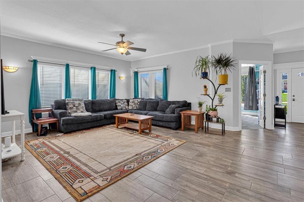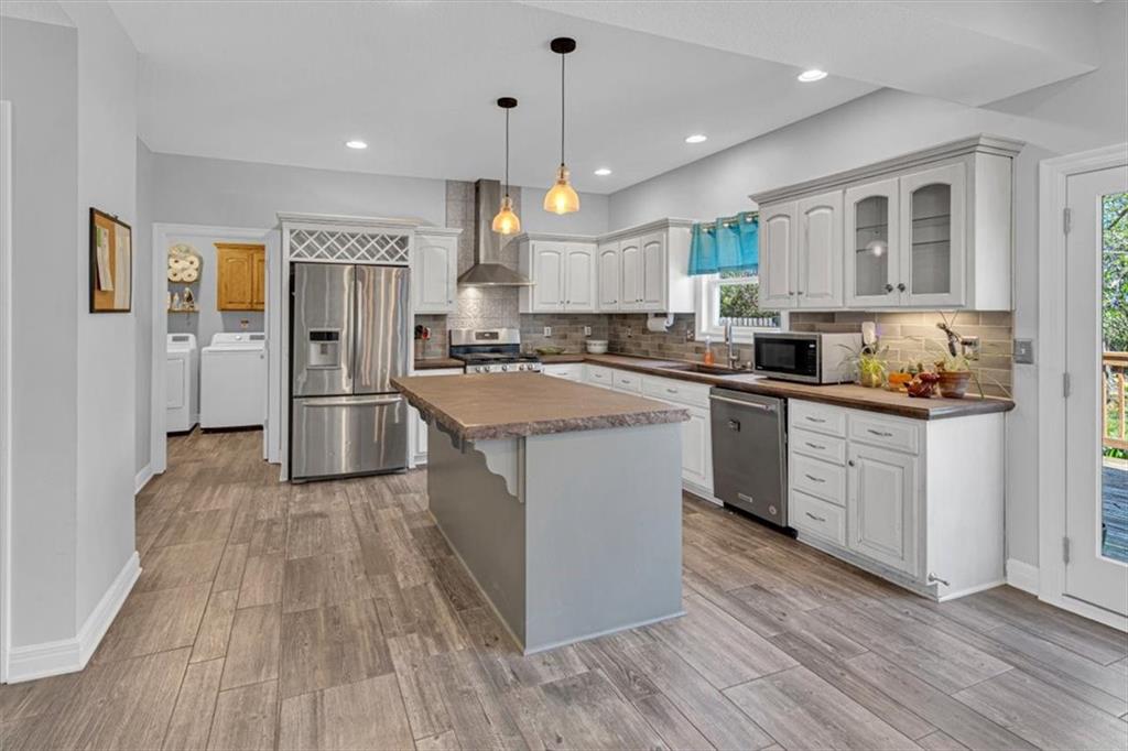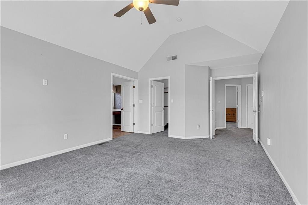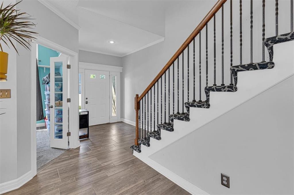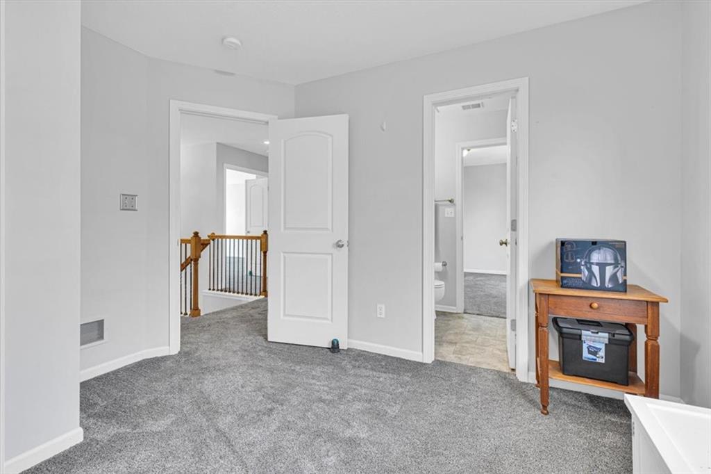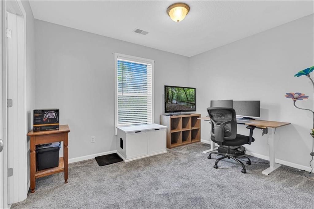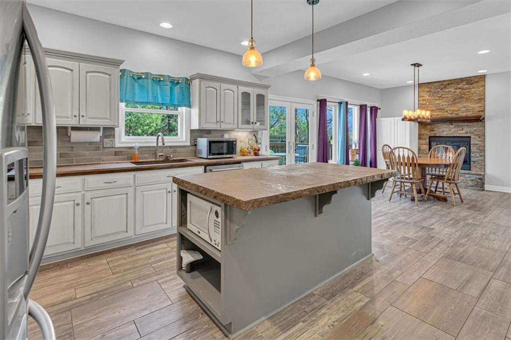 Spacious 4 bedroom, 3.5 bath home, backing to open land with no immediate rear neighbors, this property offers privacy, outdoor enjoyment, and room to grow. The main level features an open concept living, dining, and kitchen layout, and a dedicated home office right off the entry, providing an ideal work-from-home setup option. The dining area includes a fireplace and opens to the kitchen with island seating, gas range, stainless steel appliances, and a beverage fridge. The large deck is accessible from the main living area and overlooks the backyard. Upstairs are four bedrooms, including a primary suite with walk-in shower. Two bedrooms share a roomy bathroom, and the fourth bedroom has its own full bath. Laundry is also located on the upper level for added convenience. The basement includes partially finished space with framed walls and electrical in place and is ready for flooring, providing the option for an additional living space, recreation room, or workspace. This home won't last long so schedule your showing today!