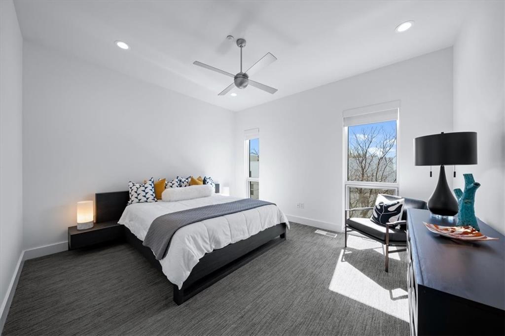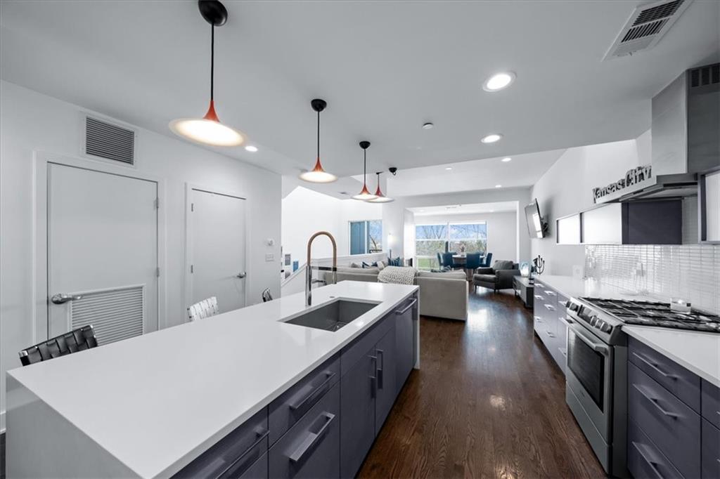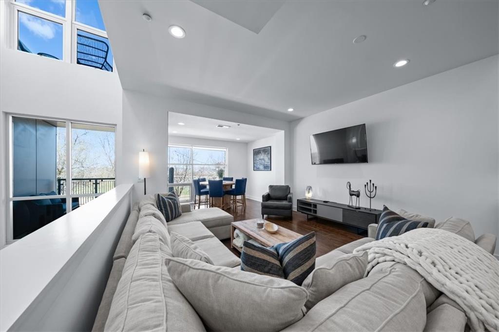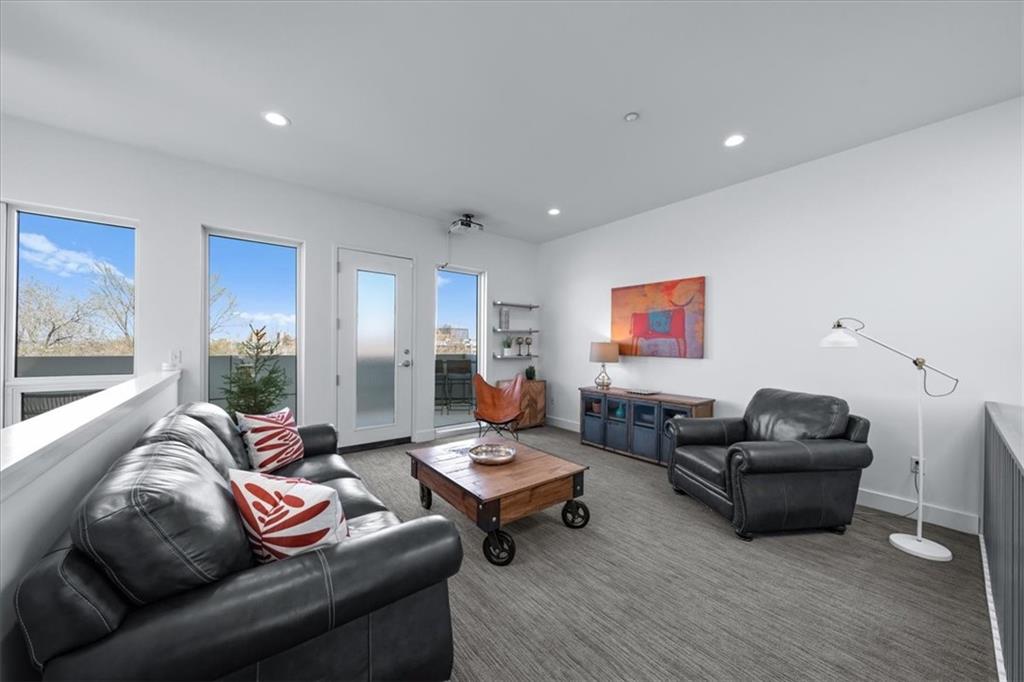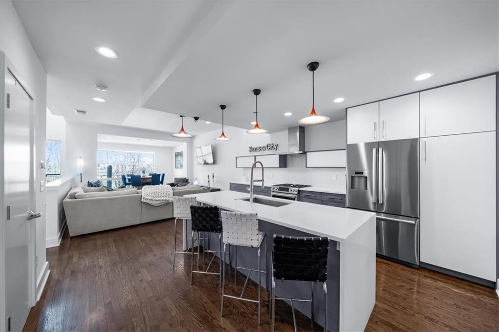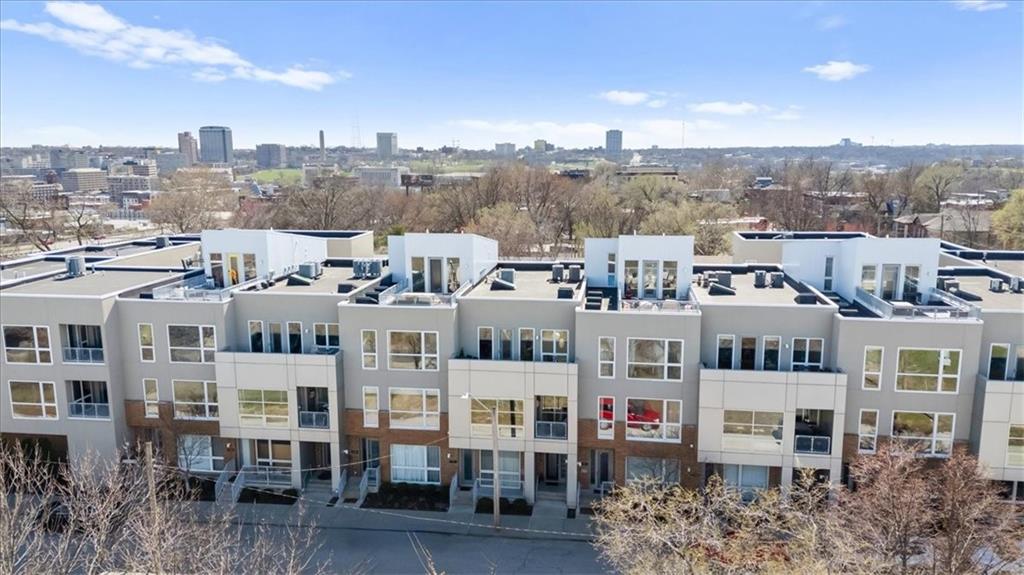 Experience urban luxury at 715 W 16th St, a sleek 2,398 sq. ft. condo meticulously transformed by Studio Build in the heart of the Upper West Side. Flooded with natural light from floor-to-ceiling windows and skylights, the home features gorgeous hardwoods at the stairs, main living area, and kitchen. Both the kitchen and bathrooms were fully gutted and reimagined with custom modern cabinetry and high-end fixtures, including a dramatic quartz waterfall island, walk-in pantry, and gas stove. The refined layout offers two spacious bedrooms, including a primary suite where the bath boasts dual sinks, a corner sport shower, and a floating tub, leading to a massive custom closet equipped with pull-down rods, multiple custom shelving units and laundry hookups with the full washer and dryer to remain. Complete with a secured gated motor court, two private garages, and exceptional outdoor spaces—including a covered terrace and an expansive open veranda with unparalleled city views—this residence is perfectly positioned just steps from Westside cafes and shops, the Crossroads Arts District, and the Power & Light District.