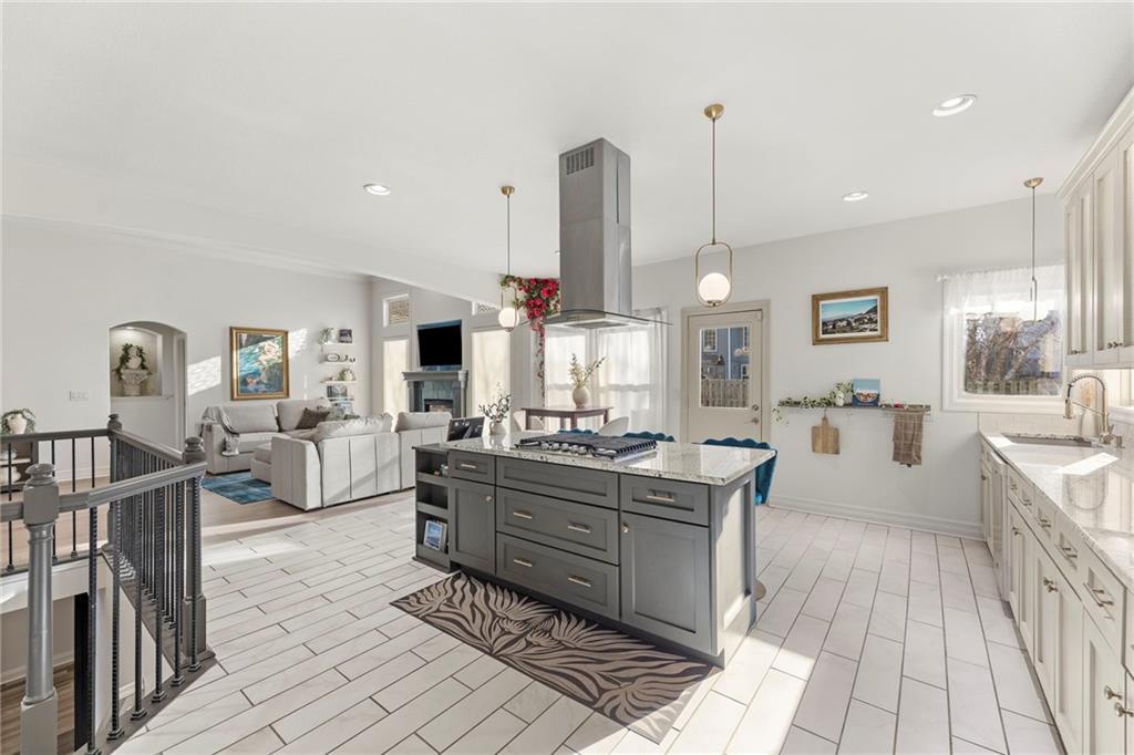 Wonderful ranch in Park Hill School district and all hard surface floors except steps. Walk into open and spacious living and kitchen area accommodating anything you can imagine for entertaining or holiday fun! Kitchen has large island complete with gas cooktop and and seating area perfect for conversation while doing food prep. Three bedrooms and 2.1 baths on the main level for one level living. AND, there's more! Lower level has huge recreation/family room + 2 HUGE walk-in closets for storage + bedroom with egress currently currently used for workout and another larger finished area with stained concrete floor perfect to move the workout...office...playroom...whatever you imagine!. So much house with a great layout, and easy access to anything you might need including the airport.