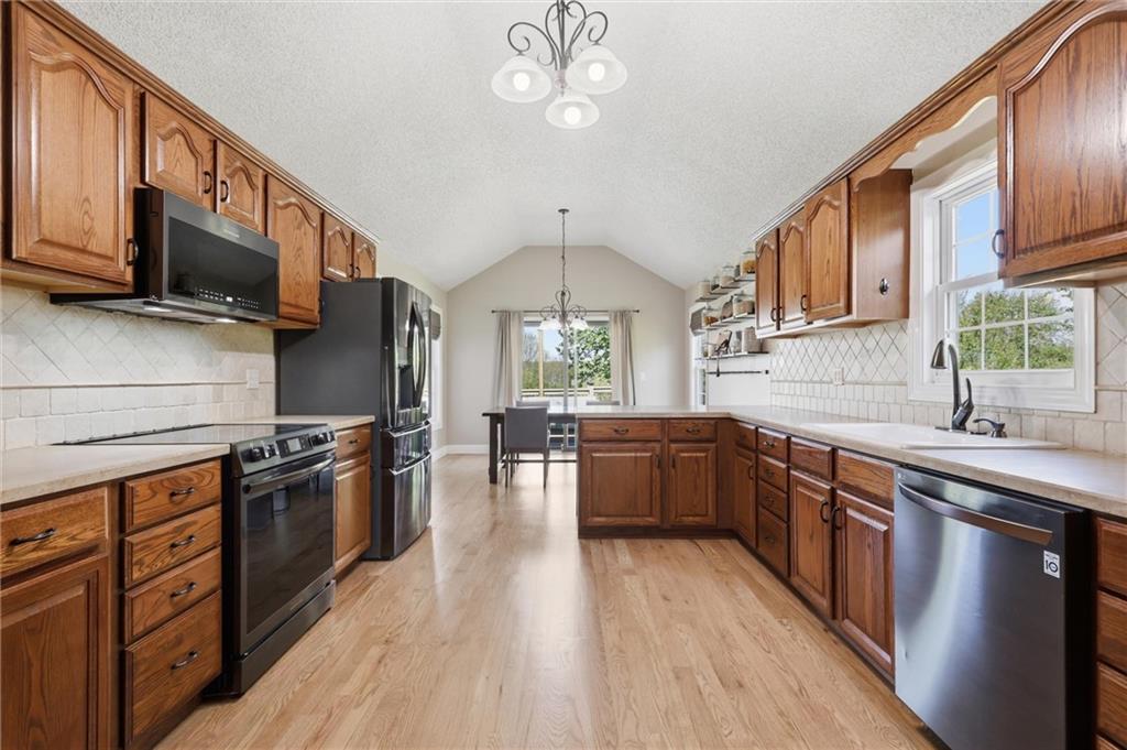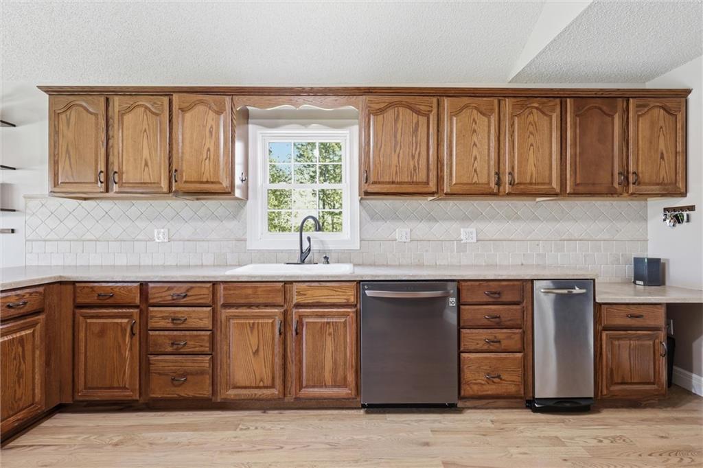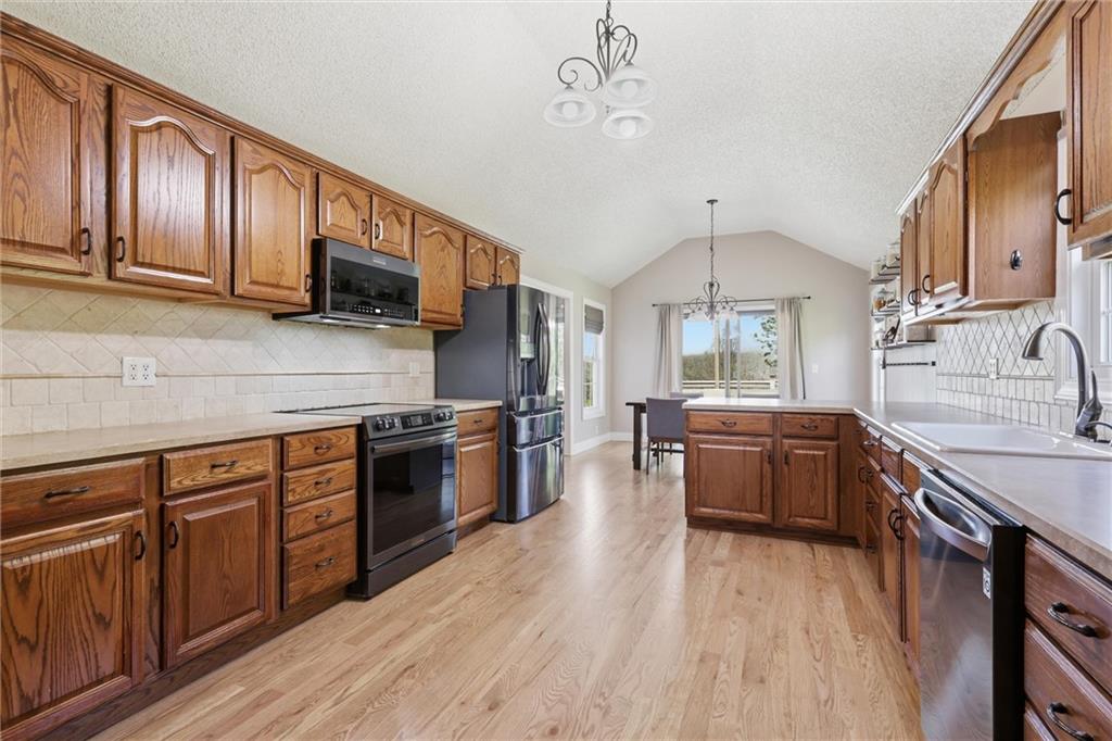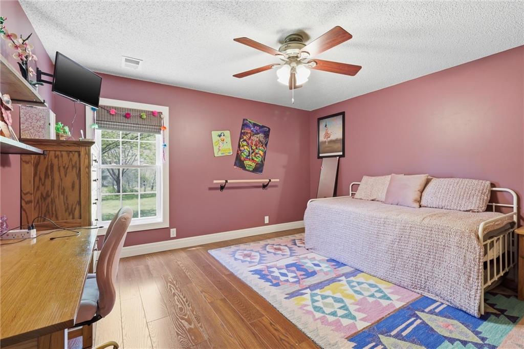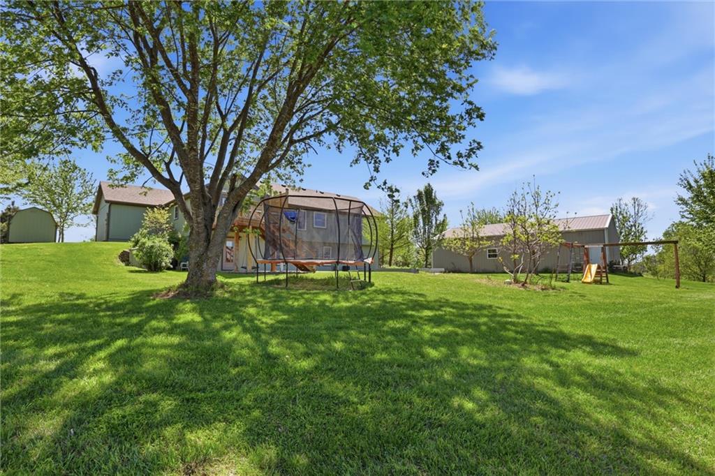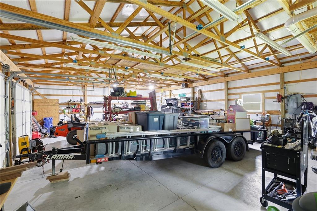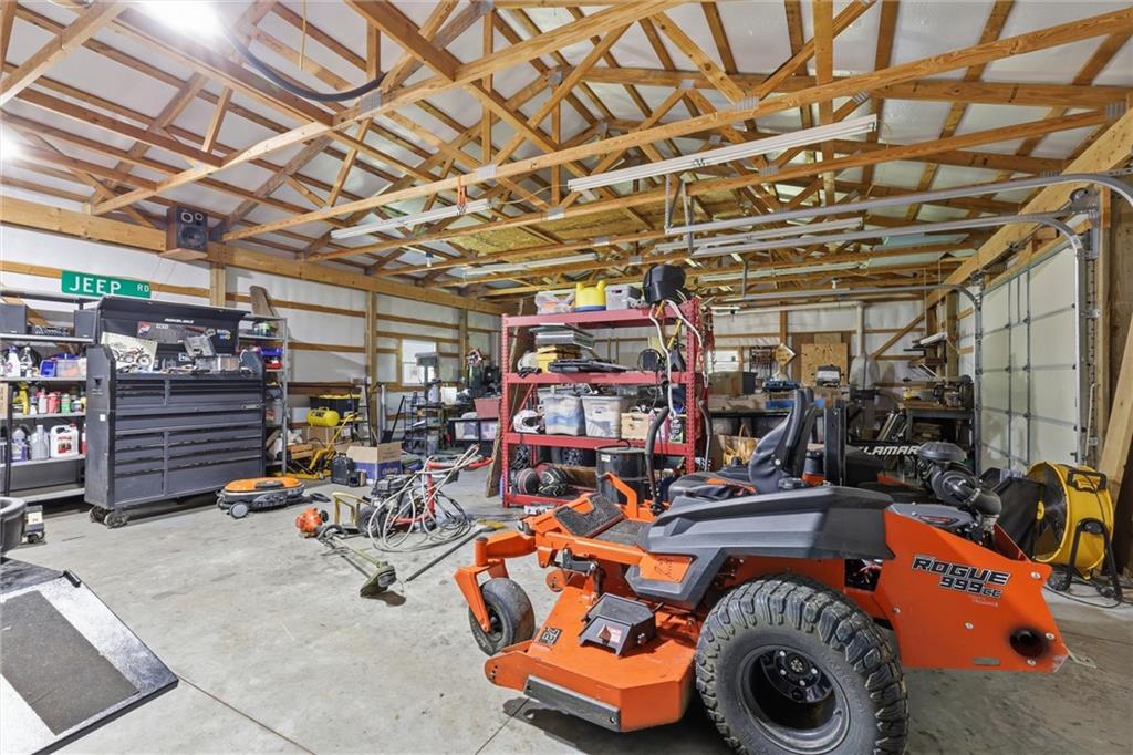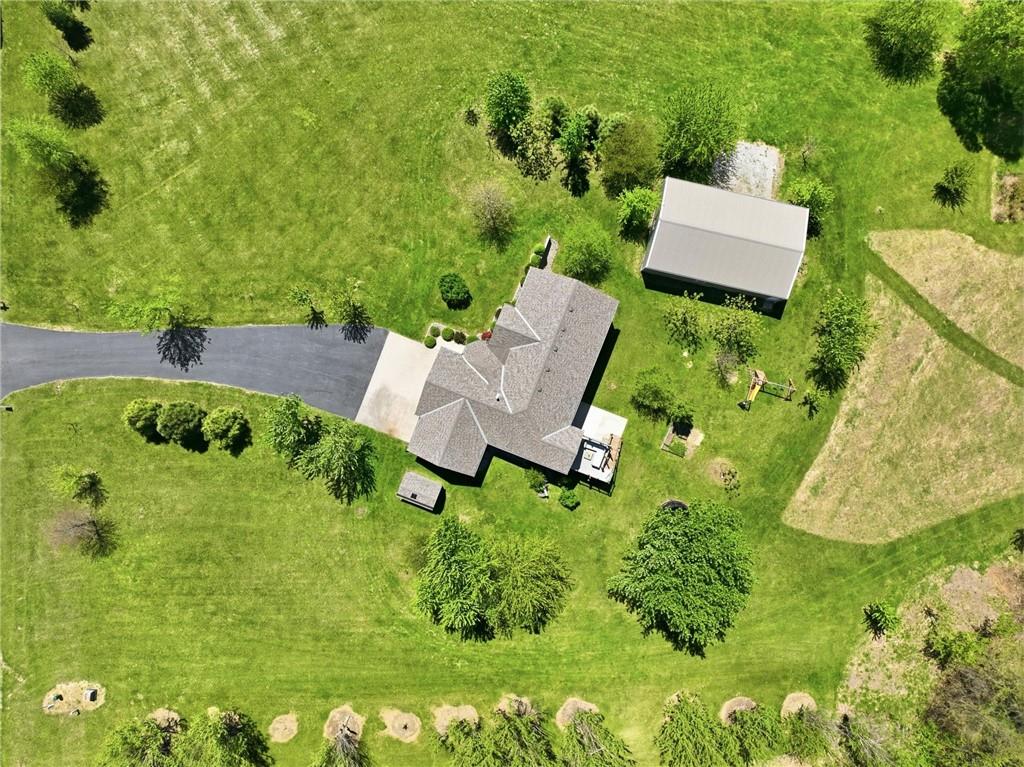 Welcome to your private retreat w WORKSHOP & shed on 3.68 acres—where modern efficiency meets peaceful, nature-filled living. This immaculately maintained ranch home offers 5 bedrooms and 3 full baths, with 3 bedrooms on the main level and 2 additional bedrooms downstairs—perfect for flexible living or multi-generational needs. The home features two spacious living areas and a partially open floor plan with a cozy fireplace, creating an inviting space for both everyday living and entertaining. The home is ALL electric and equipped with a highly efficient Bosch geothermal HVAC system, delivering impressively low utility costs—often less than a townhome. Major updates include a new roof (2019), gutters and flashing, fresh exterior paint (2020), beautifully refinished hardwood floors, new appliances (November), main lvl popcorn ceiling removal (2023), and fresh interior paint throughout. The property also features an impressive 30x48 outbuilding built by QSI, complete with 200-amp service, concrete floors, 8’ doors, and 10’ eaves—ideal for a workshop, storage, or hobby space. Step outside and experience what truly sets this property apart. Thoughtfully & organically maintained, the land has been cared for without harsh chemicals—supporting healthy soil, pollinators, & wildlife. The grounds are rich with established plantings and mature trees, including 8 apple trees, approximately 20 producing blueberry bushes, pear, plum, pecan, walnut, oak, multiple maple varieties, redbud, pine, and more. You’ll also find established asparagus, garlic, bunch onions, mint, lemon mint, & strawberry patches. Nature lovers will appreciate the abundant wildlife—frequent sightings of birds, rabbits, foxes, squirrels, tree frogs, & more—along with a partial creek area on the north side complete with a charming treehouse. This one-of-a-kind property offers space, sustainability, and serenity—paired with modern updates, efficiency, and a layout designed for comfortable living.