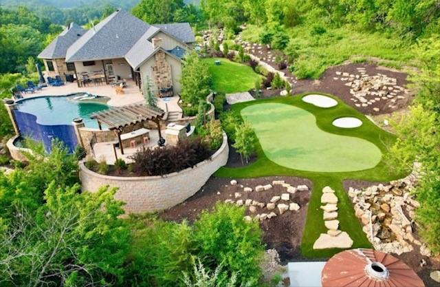 Dreams truly come alive in this one-of-a-kind custom Reverse 1.5 Story estate nestled on 9+ breathtaking acres in unincorporated Jackson County within the Lee’s Summit School District. This private retreat offers unmatched craftsmanship, panoramic treetop views & resort-level amenities that cannot be replicated. A grand front porch w/stone accents & custom doors welcomes you into a stunning interior featuring soaring 12-foot ceilings on both levels & architectural detail throughout. The main level showcases a dramatic living area w/west-facing views and a chef’s kitchen designed for everyday luxury and entertaining—complete with oversized island, custom shelving, walk-in pantry, double refrigerator/freezer combo, & oversized gas range. Light filled dining space, coffee bar-perfect for morning routines. The primary suite is a private sanctuary w/direct access to the covered patio for seamless indoor/outdoor living. The spa inspired bath features dual vanities,deep soaker tub, walk-in shower, & a generous walk-in closet w/custom built-ins. A main-level den (or 2nd bdrm) & convenient laundry complete the layout. The finished lower level is an entertainer’s dream featuring an oversized golf simulator & projector ,full wet bar, media/rec space, pool table area, exercise room w/sauna, & 2 additional bedroom suites each w/private baths & walk-in closets. A suspended garage provides rare lower-level 4th garage access—ideal for workshop, car collection, or storage. And then…This resort-caliber setting rivals luxury destinations. The vaulted covered patio w/stone FP creates year-round ambiance. Step outside to a spectacular infinity-edge pool with swim-up bar, tanning ledge, outdoor kitchen, & unobstructed treetop views offering 100% privacy. Entertain in your custom silo bar, practice on the putting green, unwind beside three cascading rock waterfalls surrounded by professional landscaping & custom exterior lighting. A signature property offering an unmatched lifestyle.