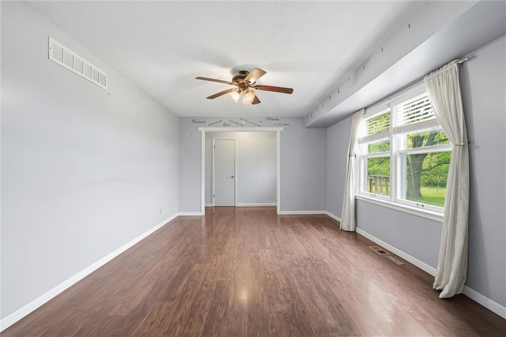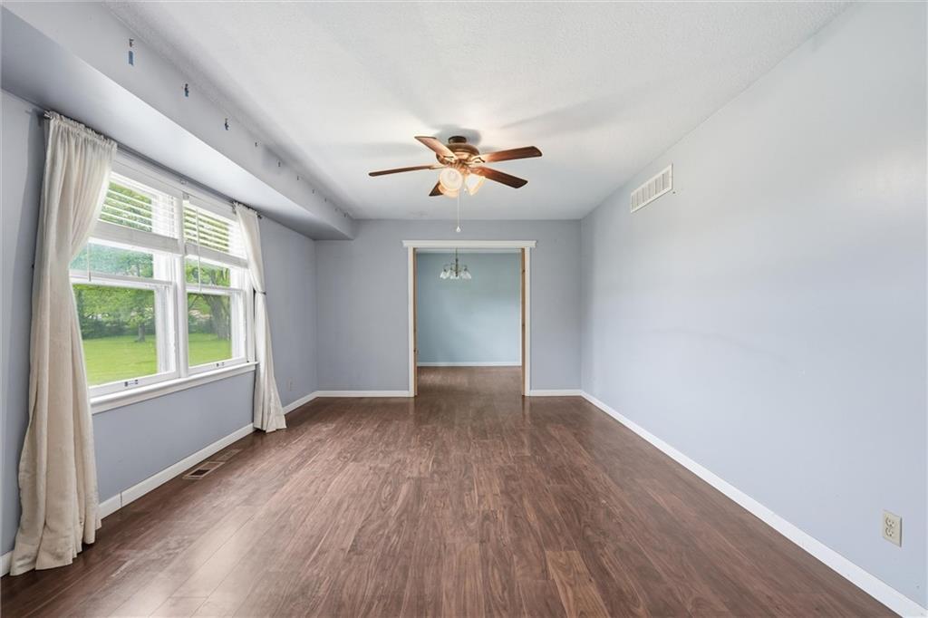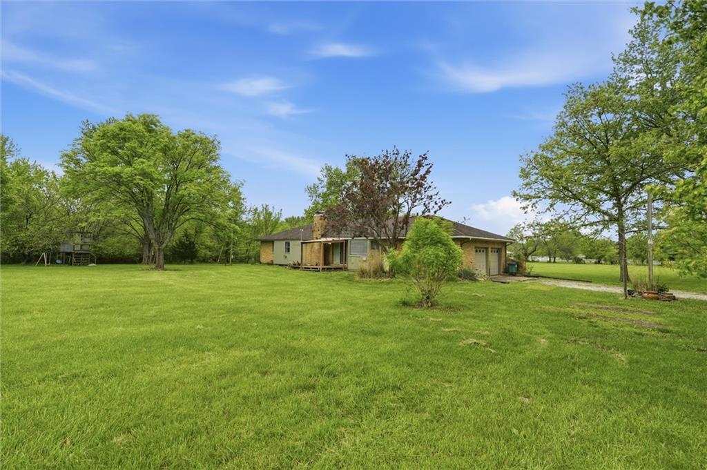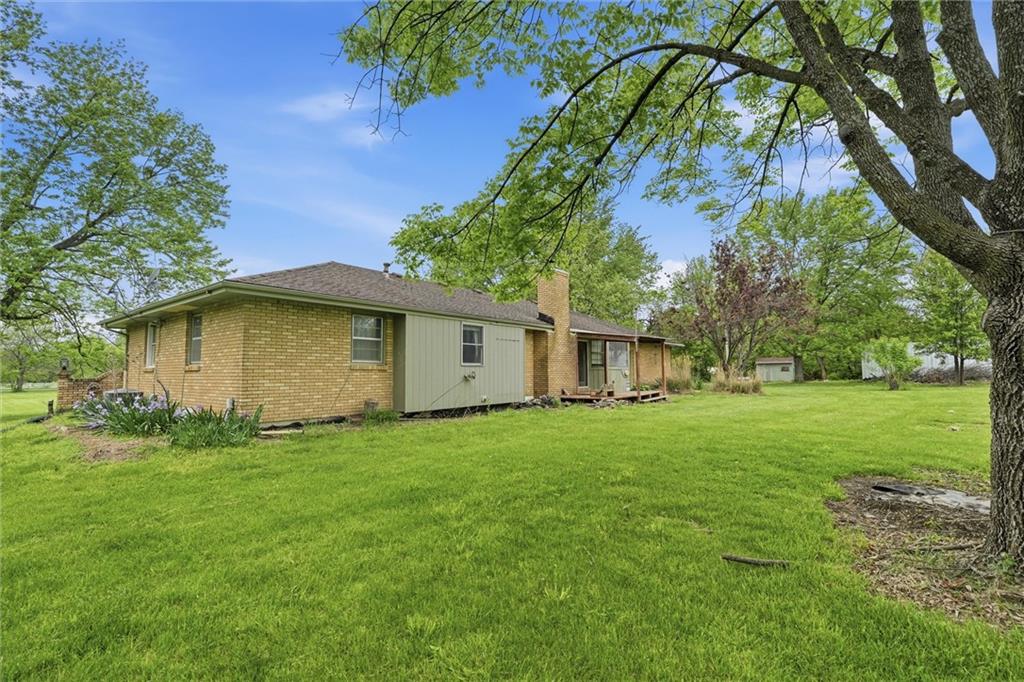 Country living at its best on acreage with room to spread out! This spacious ranch sits on a beautiful, private setting featuring a mix of open pasture and mature trees—perfect for those looking for space, privacy, or a hobby farm setup. A large outbuilding/shop provides excellent storage for equipment, toys, or livestock needs, along with an additional detached garage. Inside, you’ll find a functional layout with hardwood floors, a cozy wood-burning fireplace, and plenty of natural light. The kitchen offers ample cabinet space and overlooks the scenic backyard. The primary suite includes a large bathroom with double vanity and soaking tub. The full basement offers additional living space potential with a finished area and room to customize, plus plenty of storage. Step outside and enjoy wide-open views, established trees, and endless possibilities for outdoor living, gardening, or recreation. Conveniently located with easy access while still offering that peaceful, rural feel—this property is a rare opportunity to own usable acreage with multiple outbuildings and space to make it your own!
