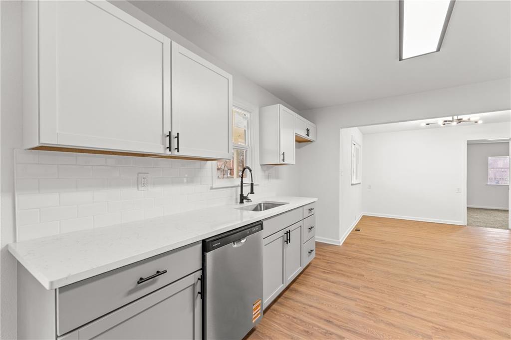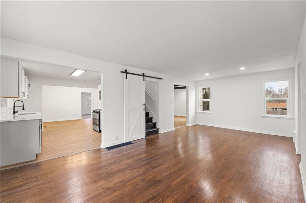 Completely renovated and move-in ready, this beautifully updated home blends classic charm with modern finishes on an expansive lot. Nearly every surface has been refreshed, including new flooring, fresh interior and exterior paint, brand-new windows, updated kitchen cabinetry, and new appliances, creating a bright and welcoming space throughout. The main level features a spacious living area with striking exposed beams and an open flow that connects seamlessly to the dining area and updated kitchen—perfect for everyday living or entertaining. Large windows fill the home with natural light, while multiple living areas offer flexibility for a formal living room, family room, or home office. Upstairs you'll find a private oversized bedroom suite complete with its own full bathroom, creating an ideal retreat for a primary bedroom, guest space, or quiet work-from-home setup. Step outside to enjoy nearly half an acre of yard space, offering room to garden, entertain, or simply relax. The large detached garage provides excellent storage, workshop potential, or additional parking. Conveniently located near shopping, dining, parks, and major highways, this home offers both space and accessibility. Schedule your showing today. Homes with this much space, land, and renovation rarely last long.