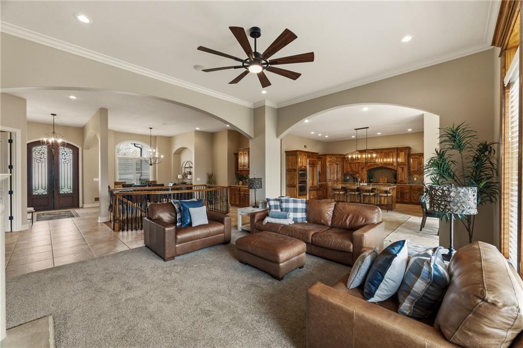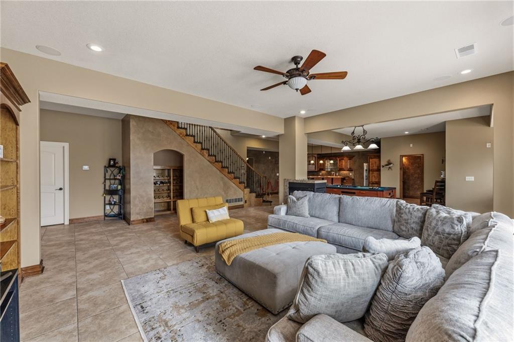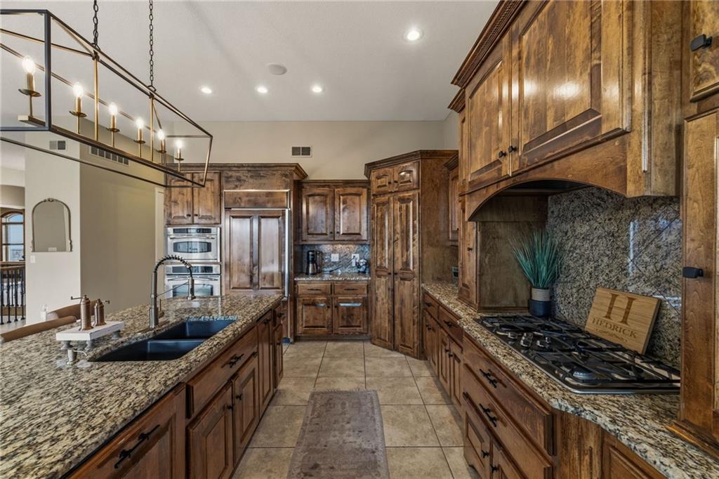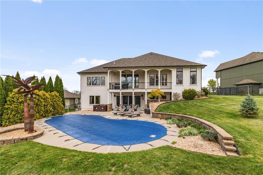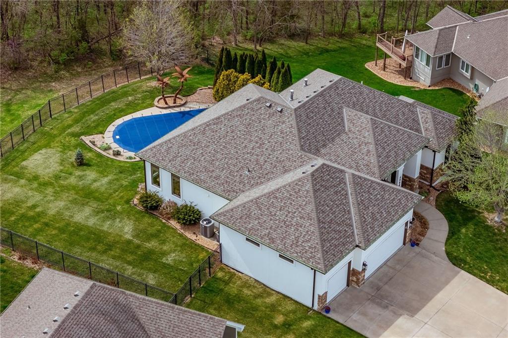 From the moment you approach, this stunning reverse 1.5-story masterpiece commands attention. Grand steel double doors open to over 5,000 square feet of meticulously designed living space, where every detail has been crafted for those who expect nothing but the best.Entertain in style on the main level, where an open-concept layout flows effortlessly from a formal dining room and private office to a breathtaking great room anchored by a gas fireplace. Walls of windows frame your backyard oasis, blurring the line between indoor elegance and outdoor paradise. The chef's kitchen is nothing short of spectacular — featuring stainless steel appliances, a double built-in oven, a 5-burner gas cooktop, expansive granite countertops, a oversized island, and a walk-in pantry. Whether you're hosting an intimate dinner or a grand celebration, this kitchen delivers. Your private retreat awaits in the luxurious main-level master suite, overlooking the sparkling saltwater pool and endless forest beyond. The spa-inspired en suite boasts double vanities, granite countertops, custom cabinetry, a soaking tub, oversized tile shower, and a private water closet. The massive walk-in closet — complete with a center jewelry island — is a statement all its own. The basement is an entertainer's crown jewel. Descend the showstopping central staircase to a world-class entertainment level featuring a full bar, a dedicated theater room with projector and surround sound, a wine room, and a bonus room ideal for a private gym. Step outside into your personal paradise. The backyard is an absolute showstopper — a resort-style saltwater pool, hot tub, and lush professional landscaping, all backed by a wall of pristine, private forest. No rear neighbors. Just nature, serenity, and the sounds of wildlife. Additional highlights include a four-seasons sunroom, Oversized three car garage and fenced in yard. This is not just a home — it's an experience. Schedule your private showing today.