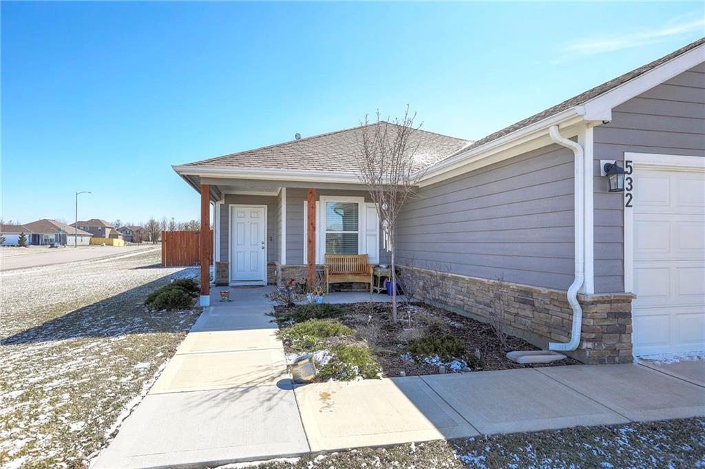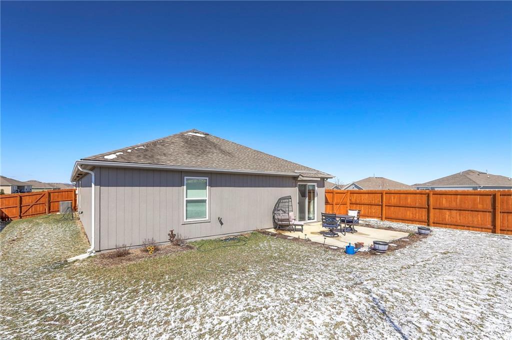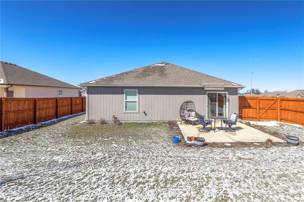 Welcome home to easy, modern living in this nearly new, 3-year-old home! This beautifully maintained property offers true one-level living with an open, functional layout designed for comfort and convenience. Located in a fantastic neighborhood within the highly sought-after Blue Springs School District, this home sits in an unbeatable location directly across from the neighborhood park and not far from the walking trail—perfect for morning walks, playtime, or simply enjoying the outdoors. Step outside to a fully fenced backyard with a 6-foot wood privacy fence, providing the ideal space for relaxing, entertaining, or letting pets play freely. With its newer construction, great setting, and move-in ready condition, this home offers the perfect blend of low-maintenance living and neighborhood charm. Don’t miss your chance to own a newer home in such a desirable location!