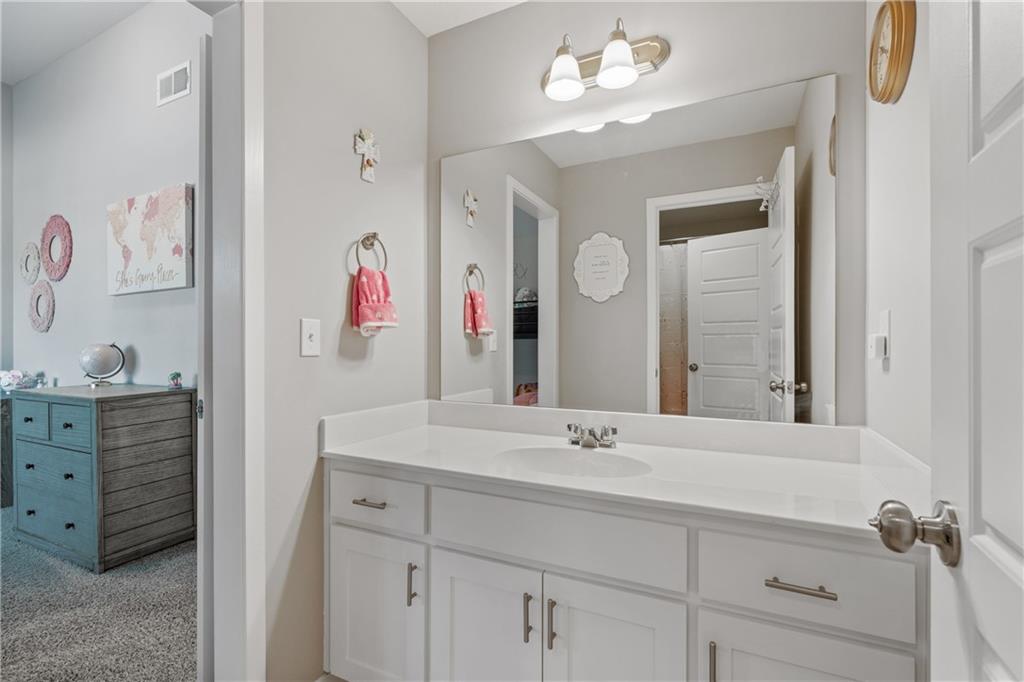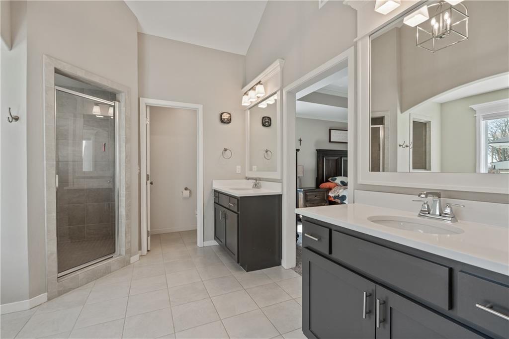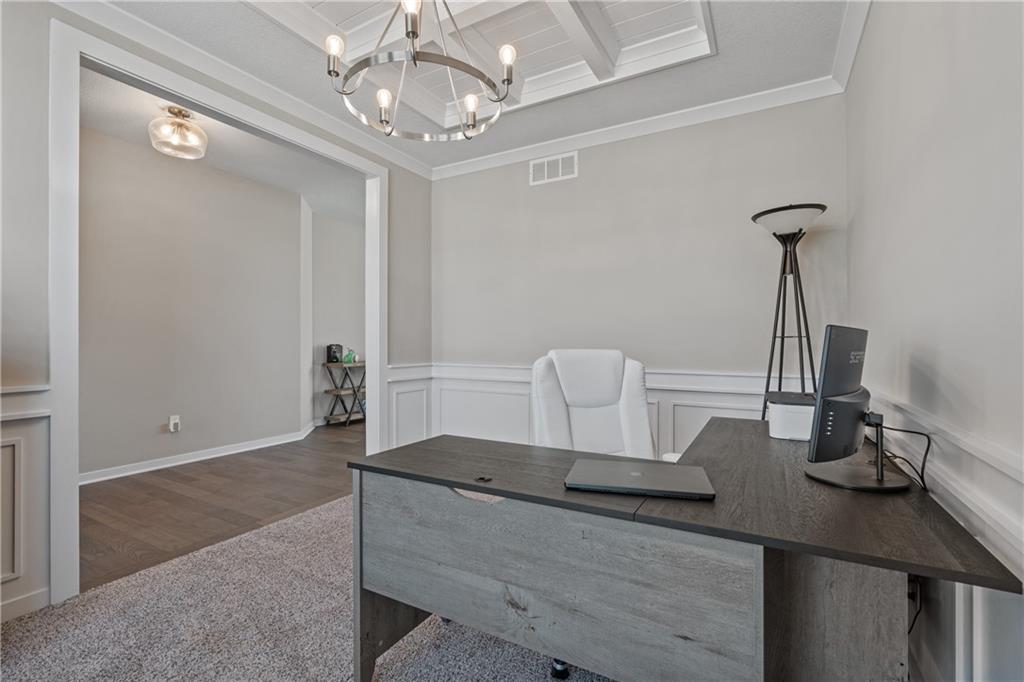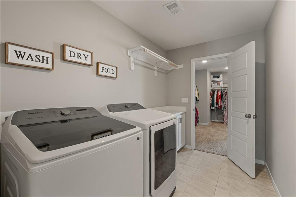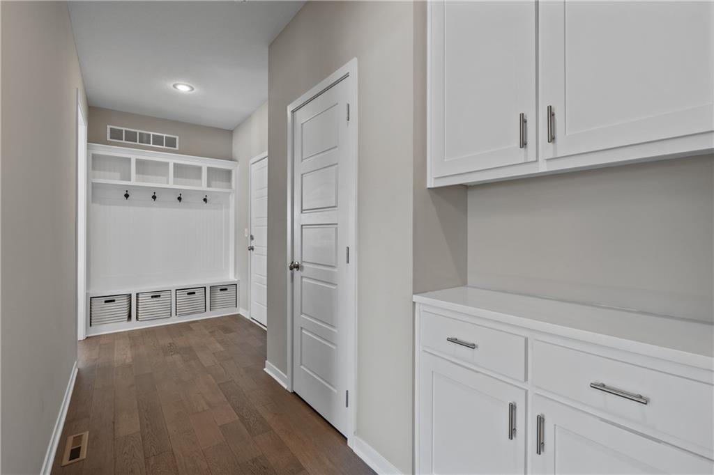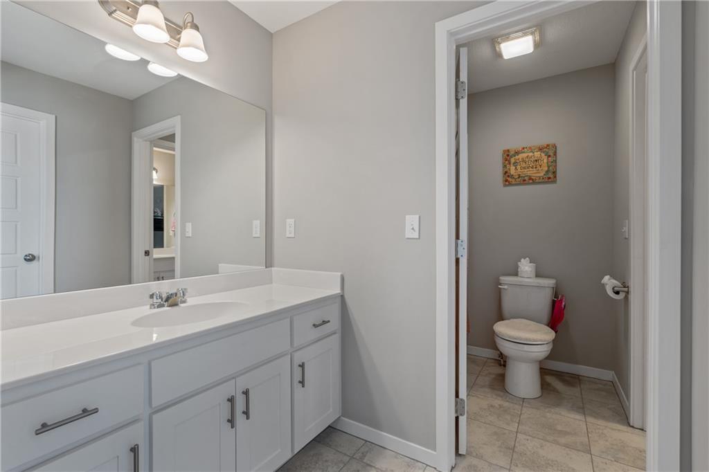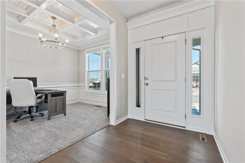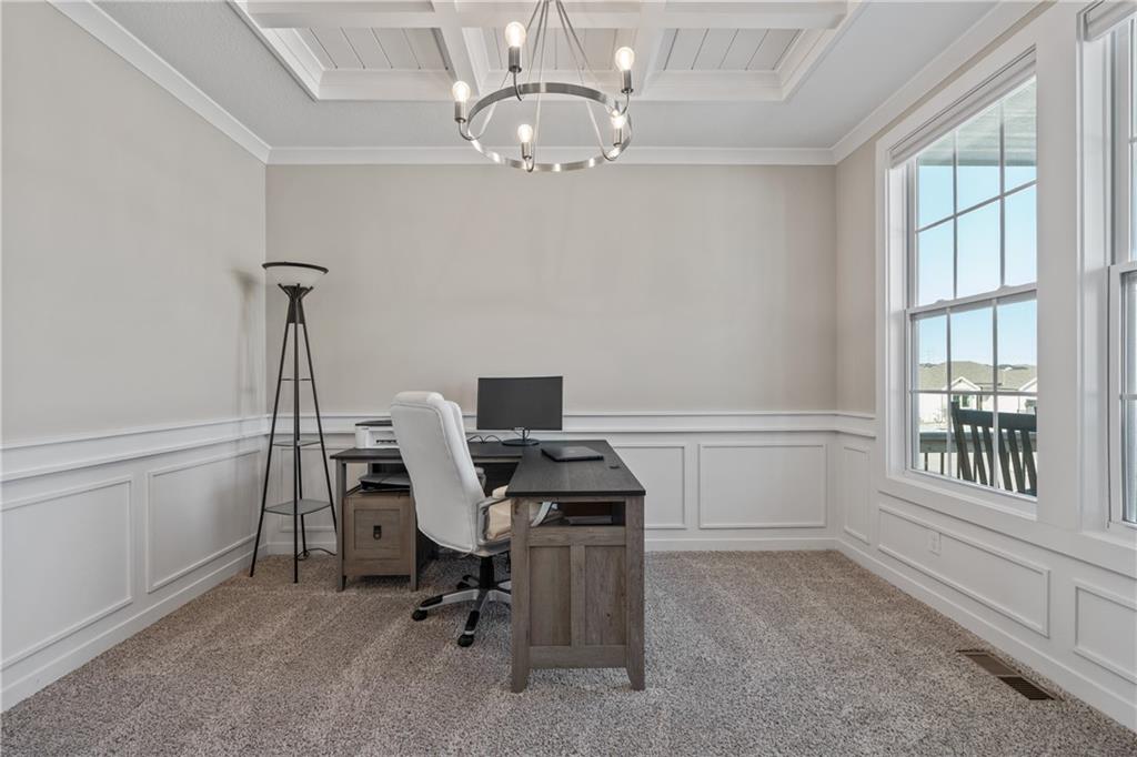 Welcome to this beautifully maintained, nearly new home in the growing community of Canyon Lakes—just 2 years old and ideally located near the golf course. Just off the entry, a bright and inviting office or den provides the perfect space for working from home or a quiet retreat.The heart of the home is the spacious, open-concept living area filled with natural light. The living room showcases a stunning stone fireplace and flows seamlessly into the beautifully designed kitchen, complete with a subway tile backsplash, farmhouse sink, and a large island with additional breakfast seating—perfect for gathering and entertaining.Just off the kitchen, you’ll find a convenient mudroom along with a well-appointed main-floor bedroom and full bath, offering flexibility for guests or additional living needs. Upstairs, the primary suite serves as a true retreat, featuring recessed ceilings and abundant natural light. The ensuite bath includes double vanities, a walk-in shower with dual shower heads, and a separate garden bathtub. The laundry room is conveniently located just off the primary closet for added ease. Generously sized secondary bedrooms complete the upper level, each offering vaulted ceilings and access to bathrooms for added comfort and privacy. Step outside to the beautifully expanded patio—ideal for relaxing evenings or entertaining—overlooking a large, fenced backyard. Enjoy a warm and welcoming neighborhood atmosphere with scenic surroundings, including charming fishing ponds, a nearby elementary school within a short 5-minute walk, a community pool coming soon, all within the award-winning De Soto School District and with convenient access to nearby amenities. Don't let this one go!