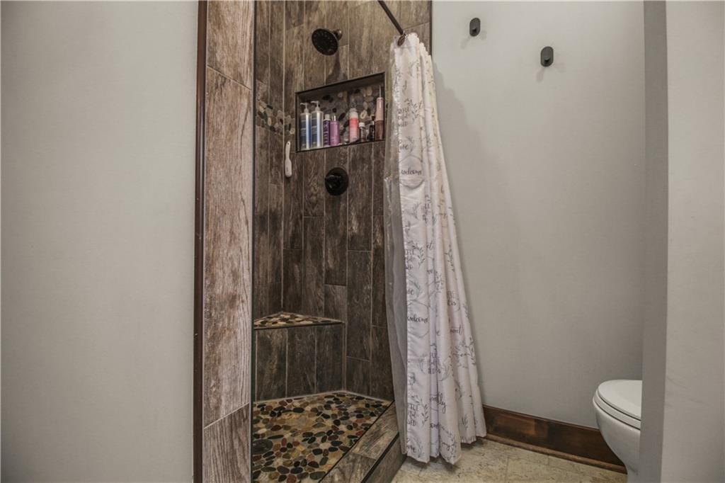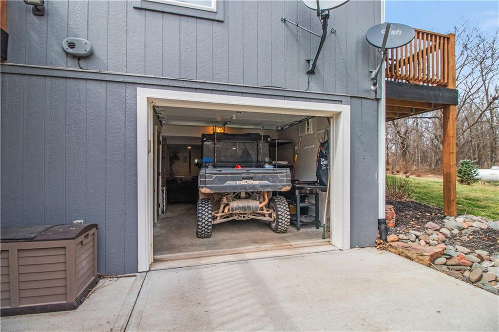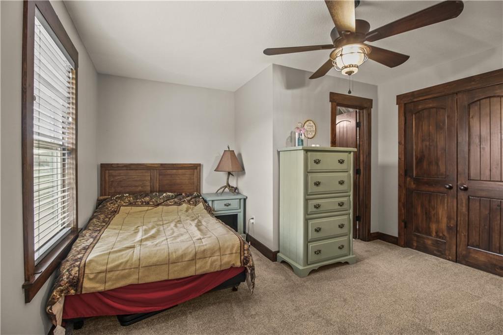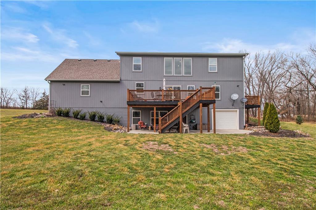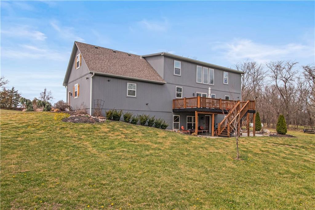 Escape to your own private retreat on 10 beautiful acres in Oak Grove, where this nearly new custom home is surrounded by mature trees, including black walnut, a creek, abundant wildlife, and established walking trails. Properties like this rarely come available in Oak Grove, offering privacy, space to roam, and a thoughtfully designed home just minutes from town. Inside, the home features vaulted ceilings, granite countertops, and a wood-burning stove set against a beautifully crafted stone fireplace wall, creating a warm focal point. A custom staircase with industrial-style rebar spindles and a barnwood-style railing adds character. The kitchen includes custom cabinetry, a copper sink, granite countertops, and a walk-in pantry. The main-level primary suite offers double vanities, a tiled shower with dual shower heads, and main-level laundry. A private deck just off the suite provides a quiet space to enjoy the surrounding nature. Upstairs are two additional bedrooms, each with their own bathroom features. The finished basement includes a bedroom, full bathroom, kitchenette, built-in surround sound with subwoofer, and space for entertaining or extended living. A reinforced concrete room offers the option of a storm shelter or secure storage. The heated and cooled basement garage includes a utility sink, hot and cold water hose bibs, and a built-in speaker system, ideal for washing vehicles or outdoor gear. Outside, enjoy the cedar front porch with antler chandeliers or the 12×24 deck, along with professional landscaping, driveway trees, and a long driveway with a concrete turnaround. The acreage offers woods, a stream, walking trails, and an elevated enclosed deer stand, perfect for outdoor enthusiasts or anyone seeking peaceful country living. Sqft is estimated. Buyer and buyer’s agent to verify.