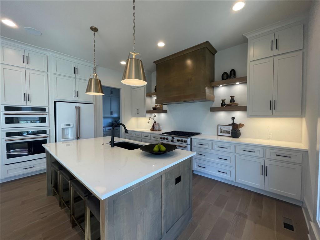 Welcome to 6109 El Monte, a stunning residence built by the award-winning James Engle Custom Homes LLC ready for viewing featuring the highly sought-after Aurora floor plan with a very fitting Farmhouse elevation. This home features decorator curated selections, making this a great opportunity for buyers that prefer a more streamlined new home buying approach. Step inside to discover 5 bedrooms 5 full, and 1 half baths. The property has an incredible opportunity for a home office complete with a cozy fireplace and picturesque views of the amazing courtyard that is beautifully decorated and landscaped, creating the perfect setting for productivity or relaxation. The heart of the home is the gourmet kitchen, featuring high-end GE Café appliances and an additional prep kitchen as well as a walk in pantry making it a chef’s dream. Multiple large windows in the living room, dining room and kitchen allowing for an abundance of natural light from the eastern sun. The finished lower level is equally impressive, boasting a stylish wine closet, bar, and a plethora of additional features that enhance both comfort and convenience. This home is truly turn key including window coverings, 6ft privacy fence and a matching GE cafe fridge. This home is currently being utilized as a model home but will be ready for occupancy by the end of May 2026! Don’t miss your chance to experience this exceptional property.