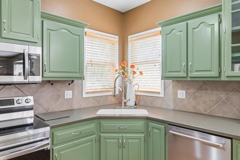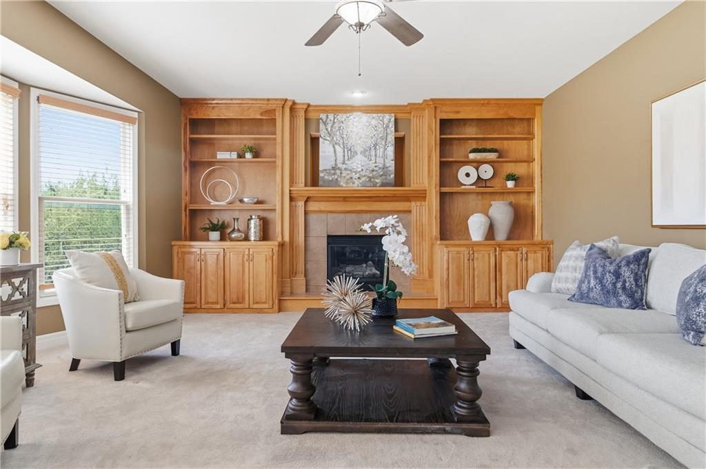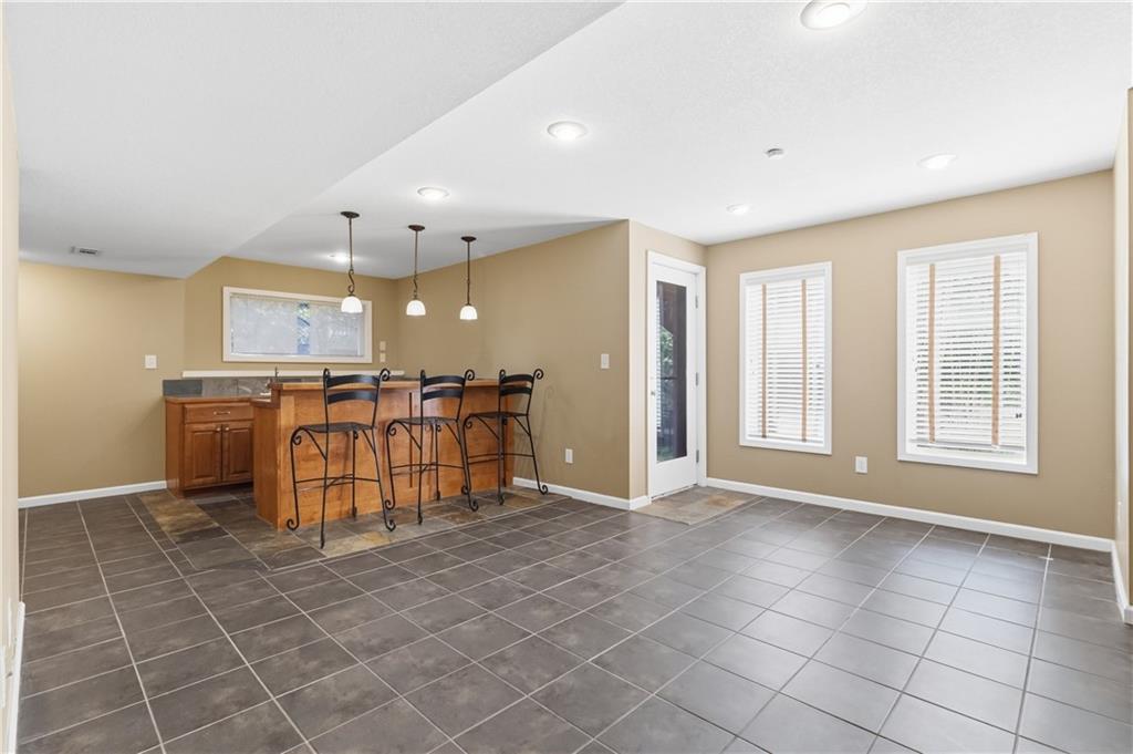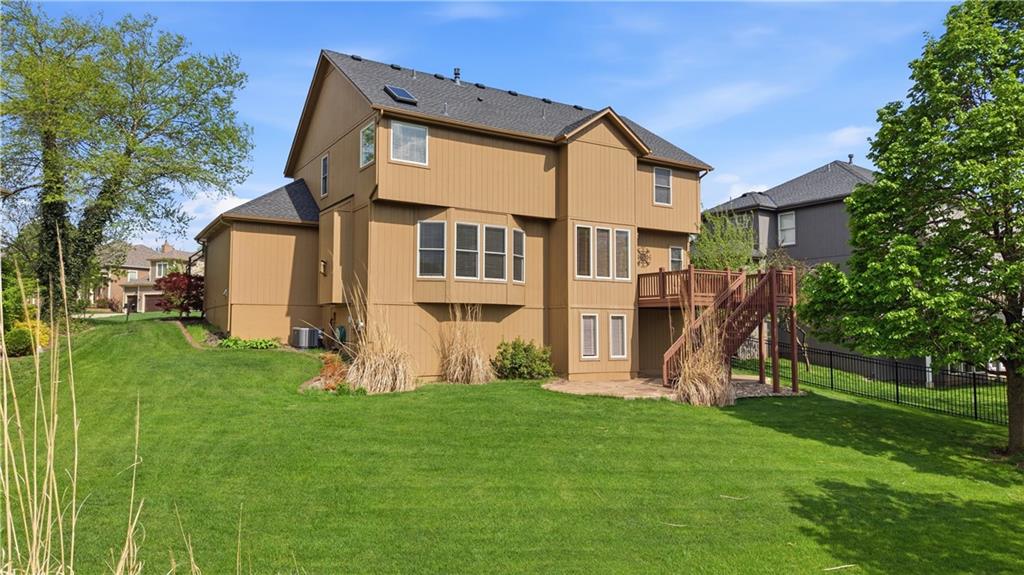This meticulously maintained home is a great value in this sought after neighborhood! Welcoming entry with curved staircase. Home features hardwood floors in entrance, dining room, kitchen and breakfast room. The spacious great room offers built ins and a cozy gas fireplace. Kitchen boasts painted cabinets, SS appliances and great flow for everyday living. The primary suite features a sitting room, walk in closet, walk in shower and a bath with a jacuzzi tub. Secondary bedrooms offer large walk in closets. Convenient second floor laundry. The W/O lower level is filled with natural light and includes a wet bar and office space. Enjoy treed backyard with a deck and stamped concrete patio. Neighborhood amenities include walking trails, stocked pond, play area, and community pool, all just minutes from the elementary and middle schools. Home is surrounded by a 400 acre nature preserve with lakes, paved trails and abundant wildlife. Located in award winning Blue Valley Schools and convenient to shopping, dining, parks and quick highway access.