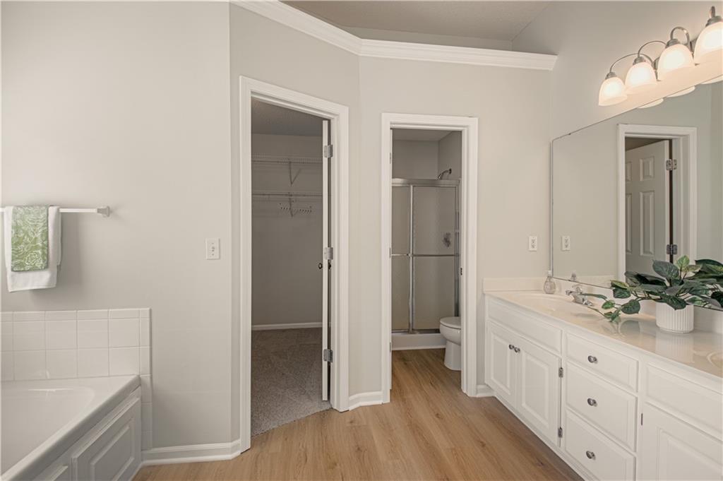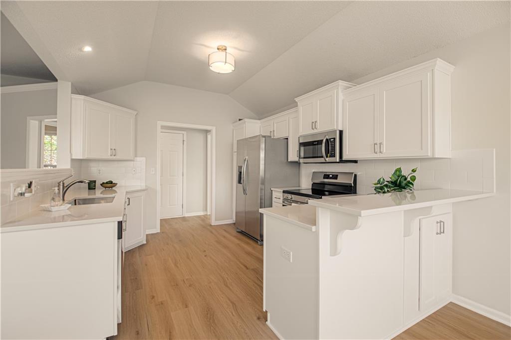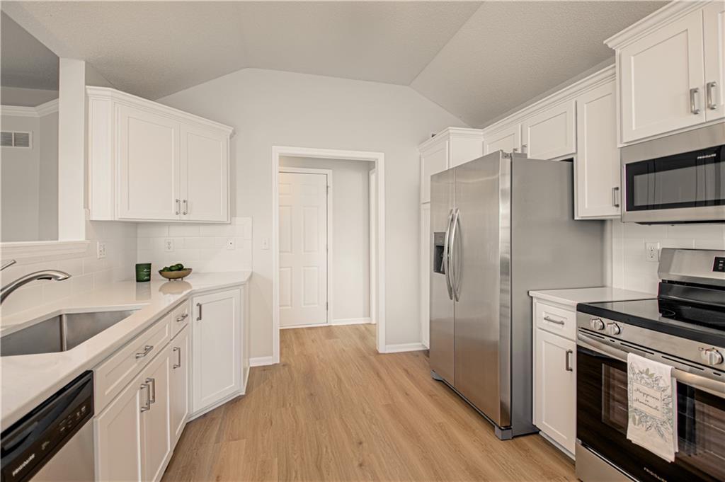 Lovely corner lot home with all NEW Kitchen - self closing cabinets, rollout pantry drawers, countertops, backsplash and SS appliances. In addition there is all new carpet and LVT flooring and beautiful new light fixtures thru out. Home offers main level living with 3 bedrooms, 2 full baths, open living area, main level laundry and 2 car garage. The home has a concrete tile roof for low maintenance. The backyard has a privacy fence with updated landscaping, paver patio with pergola and irrigation system. The lower level is stubbed for a bath that would allow for easy finishing. All windows and fireplace have been inspected and upgraded where needed. Located in the beautiful neighborhood of Stonebrook Place that is conveniently located to elementary, middle and high schools. Move in ready with so much new!!