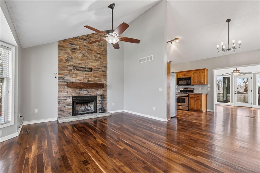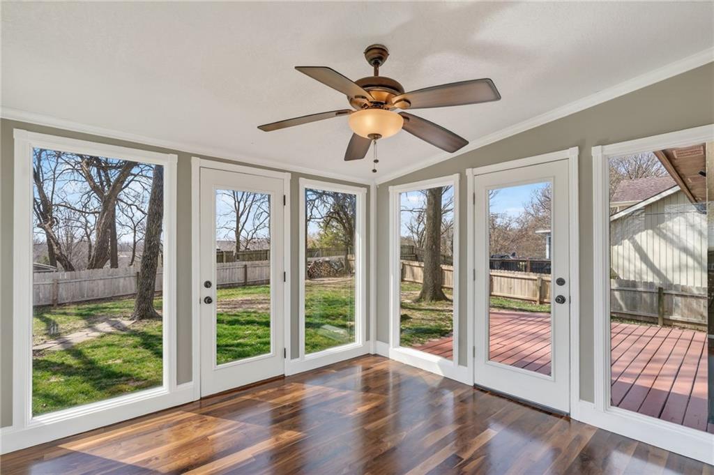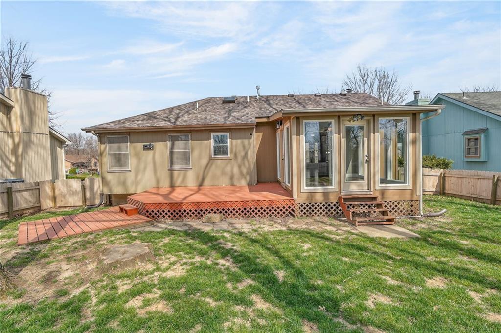 Don't miss this beautifully updated home in the Park Hill School District! Step into the living room where you'll find tall vaulted ceilings, floor to ceiling stonework on the fireplace, and newly re-finished hardwood floors. The kitchen features plenty of cabinets and counter space, and all of the appliances stay! You'll also find 3 spacious bedrooms and 2 full bathrooms that have both been completely updated! Downstairs, the unfinished basement provides tons of storage, or the potential to add a second living space. Take in the afternoon sun from the sunroom off the back, or step outside to the fully fenced backyard and enjoy some time out on the deck. Don't miss it! Schedule your tour today!