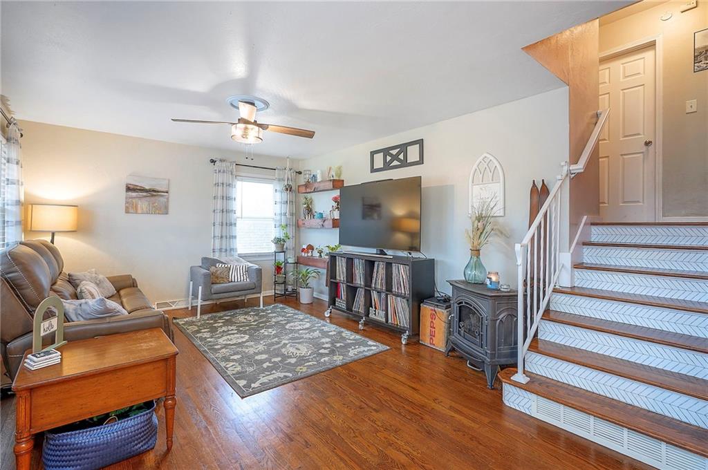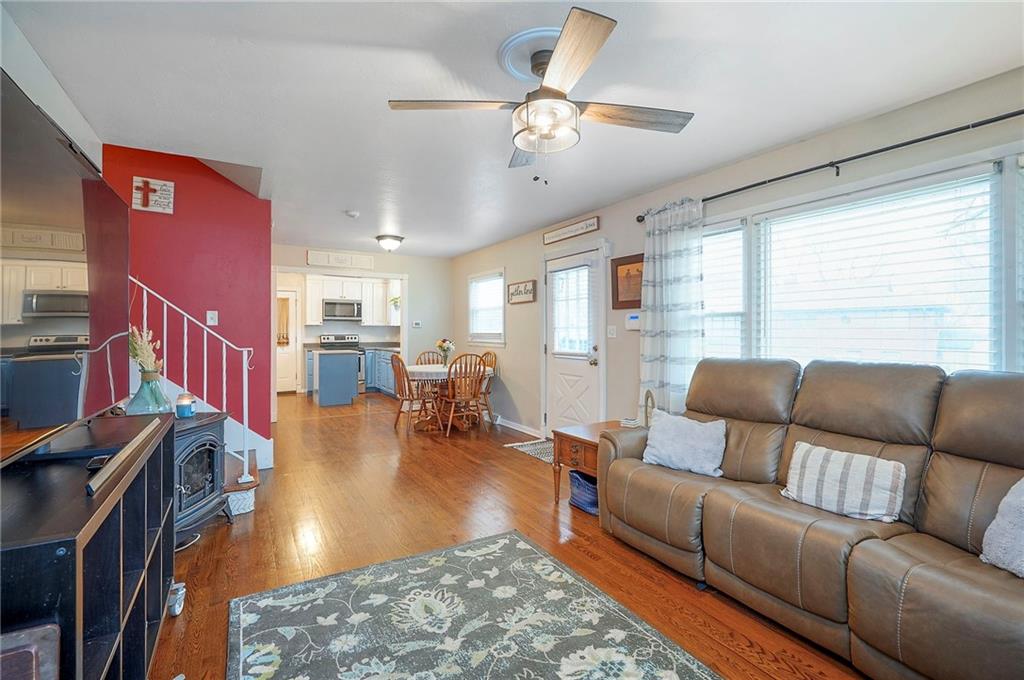 What a find! Completely updated home in a quiet neighborhood, no projects just move on in. Relax in the living room with beautiful hardwood floors and an open layout to the cheerful kitchen with quartz prep island, freshly painted cabinets, stainless steel appliances, a true pantry and refrig all included. Upstairs find three nice sized bedrooms, all hardwood floors and ceiling fans in each room with an updated hall bath. The lower level primary suite is a quiet retreat and features a walk-in closet (the size of a bedroom!) plus an updated full bath with tiled shower. All the big expensive items have been done: updated electrical, 4 yr old HVAC, thermal windows. Two car garage is spacious with updated doors and plenty of room for a workshop. A front deck plus a back covered patio, fenced yard and storage shed complete the home. The seller is meticulous and preinspected for your peace of mind, report available. This home has been well cared for and updated so it's a smart buy for first time buyers, investors looking for a turnkey rental or those looking for a nice neighborhood to enjoy life.