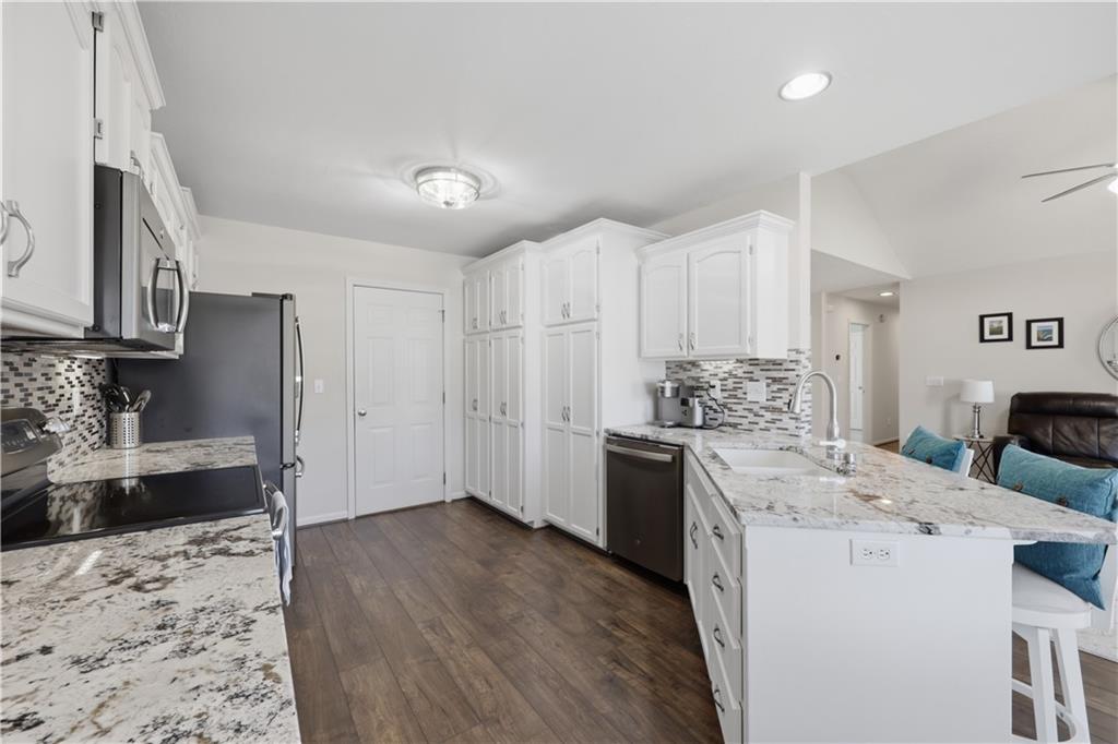 Extremely neat and beautifully maintained traditional ranch tucked away on a cul-de-sac. This three bedroom 2 1/2 bath Home features a finished walkout basement, abundant, natural light, and updates that make it move-in ready. Recent improvements include Kitchen counters and backsplash and painted cabinets, LVP flooring, new carpet, a new roof and gutters, and windows by the fireplace. Enjoy the open and welcoming feel of the home along with the outdoor living on the deck and patio. Fantastic lower level rec room for entertaining. The pool table stays, adding even more value to this wonderful property. Close to Zona Rosa, Highways, KCI Airport, and 20 minutes to downtown KC. Preferred school district by many. Seller needs delayed closing to May 20th, for move out of state. Room measurements to be verifed by buyer.