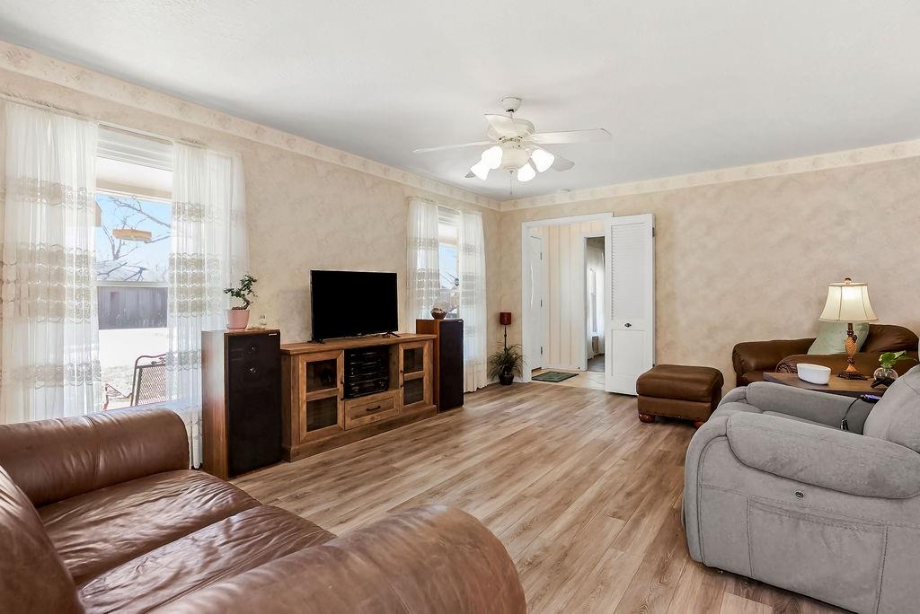 Welcome home to this spacious Kansas City gem, ready for its next owners! The main level features a seamless blend of luxury vinyl plank, hardwood, and tile flooring, creating both style and durability throughout. The kitchen shines with granite countertops, a spacious pantry, and a clean, well-kept feel that’s truly move-in ready. You’ll love the flexibility of multiple living spaces, including a formal living room, a cozy family room with fireplace, and a bright sunroom—perfect for enjoying every season. The primary suite offers its own private retreat with a full bath, featuring tile finishes and a walk-in shower. All bedrooms include hardwood floors and ceiling fans for added comfort. The hall bath is spacious with tile and a convenient shower/tub combo. Downstairs, the finished basement with a half bath is full of potential—just add your personal touch to create the perfect hangout, office, or guest space. Step outside to enjoy a private, fenced backyard ideal for relaxing or entertaining. Located in the Raytown school district! With great curb appeal and a location just minutes from highways, shopping, dining, and everyday conveniences, this home checks all the boxes.