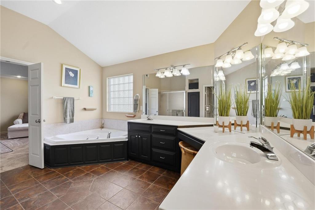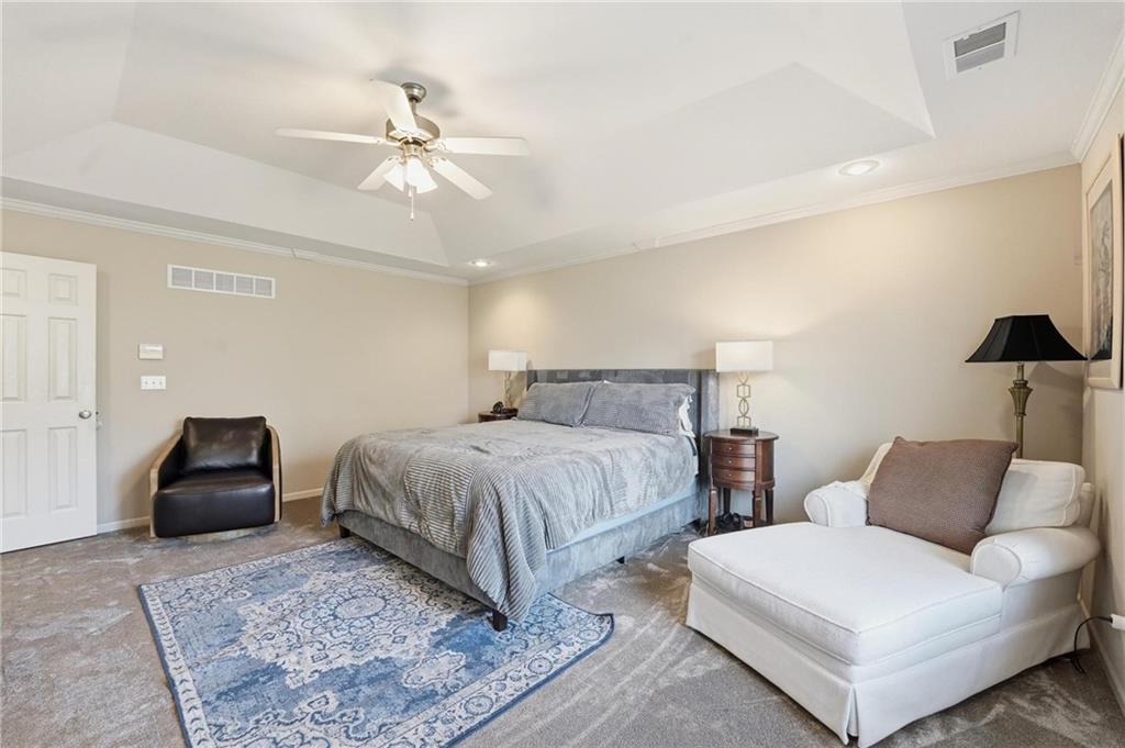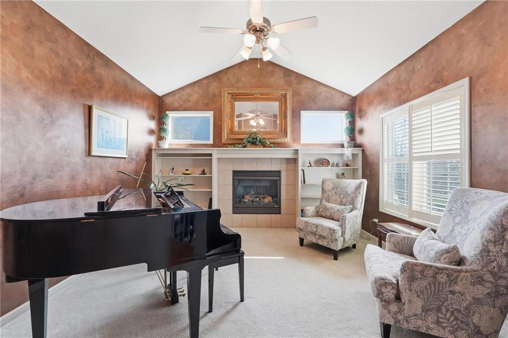 Don't miss the exceptional value in The Fairways! This stunning 4-bedroom, 3.5-bathroom home offers an unparalleled living experience. Enjoy fresh exterior and partial interior paint, new garage doors, and meticulous landscaping for impressive curb appeal. The open kitchen boasts newer appliances, double ovens, an island, and granite countertops, flowing seamlessly into the dining and eat-in areas that open to a charming patio. The spacious family room and the mid-level den, each feature fireplaces – perfect for entertaining or quiet evenings. All generous sized bedrooms, including new carpet in 2 of them.The primary suite also offers new carpet, vaulted ceilings, a walk-in closet, jetted tub, and dual vanities, plus convenient upstairs laundry. The lower level is an entertainer's dream with an library/office featuring a 15-foot ceilings with custom built-ins, a third fireplace and french doors. You'll love the dual staircase leading to an exercise room, and a theater/family room. Ample storage throughout! With 6-year-old HVAC and approximately a 10-year-old roof, this home features a lot of crown molding and beautiful hardwood floors. All appliances stay with the home. Located just minutes from shopping, top-rated schools, the airport, major highways, and two golf courses, it truly has something for everyone. Schedule your showing today – this one won't last!