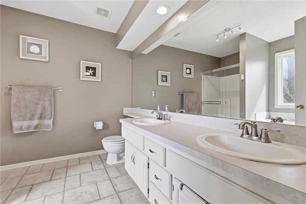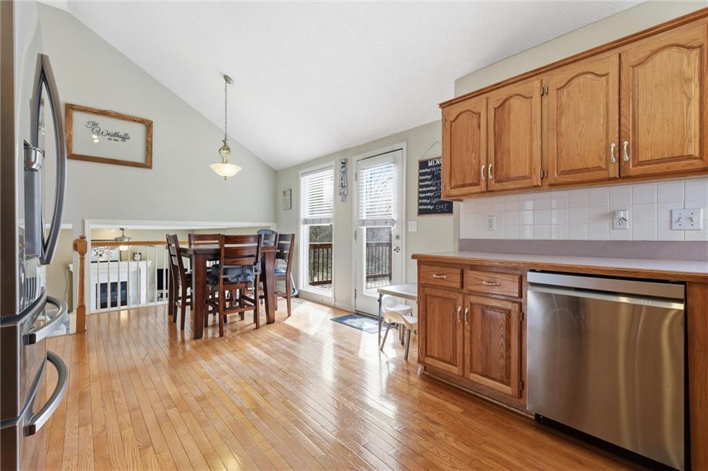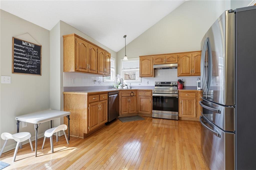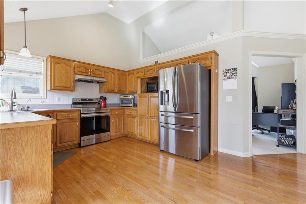 OPEN HOUSE SATURDAY 3-21, from 12-2pm. Discover this spacious and well-maintained 4-bedroom, 3-bath home featuring an oversized 3-car garage. Upon entry, you’ll find two inviting living areas and beautiful hardwood floors that extend through the kitchen and breakfast nook, highlighted by vaulted ceilings that create an open and airy feel. The Kitchen features stainless steel appliances, tons of cabinets and ample counter space, overlooking the second family room, where there is a cozy gas fireplace that adds warmth and charm to this home. To top it off, this home offers a generously sized primary suite with vaulted ceilings, a walk-in closet, and an en-suite bath complete with a jetted tub and double vanity. For added convenience, all bedrooms and the laundry room are located on the same level. And the finished basement includes a private fourth bedroom with its own entrance and bathroom—ideal for guests, extended family, or added privacy. Step outside to a backyard that backs to a wooded area, providing privacy and a setting perfect for entertaining. Conveniently located with easy access to I-35, this home offers both comfort and accessibility.