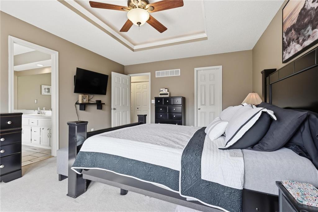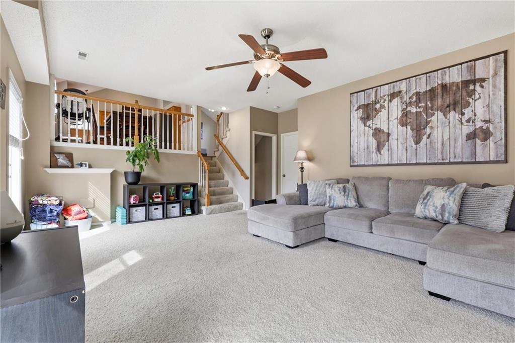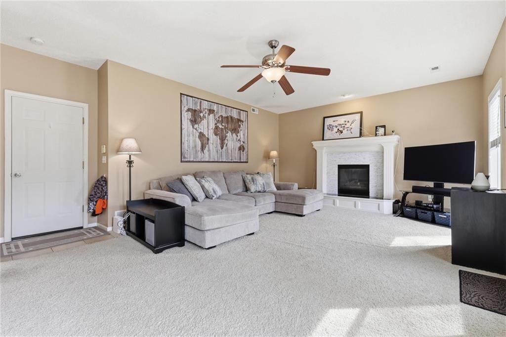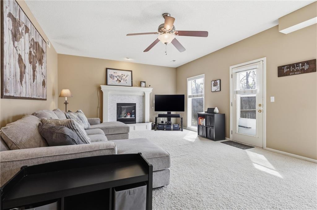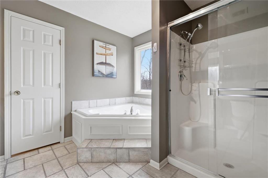 OPEN HOUSE SATURDAY 3-21, from 12-2pm. Discover this spacious and well-maintained 4-bedroom, 3-bath home featuring an oversized 3-car garage. Upon entry, you’ll find two inviting living areas and beautiful hardwood floors that extend through the kitchen and breakfast nook, highlighted by vaulted ceilings that create an open and airy feel. The Kitchen features stainless steel appliances, tons of cabinets and ample counter space, overlooking the second family room, where there is a cozy gas fireplace that adds warmth and charm to this home. To top it off, this home offers a generously sized primary suite with vaulted ceilings, a walk-in closet, and an en-suite bath complete with a jetted tub and double vanity. For added convenience, all bedrooms and the laundry room are located on the same level. And the finished basement includes a private fourth bedroom with its own entrance and bathroom—ideal for guests, extended family, or added privacy. Step outside to a backyard that backs to a wooded area, providing privacy and a setting perfect for entertaining. Conveniently located with easy access to I-35, this home offers both comfort and accessibility.