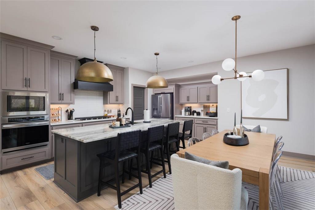 Designer’s personal KC Custom Home…bold, refined, and designed to be experienced, not just seen. Striking curb appeal pairs modern lines with warm stone accents, setting the tone before you even step inside. Soaring ceilings in the 2-Story great room and walls of windows fill the main level with natural light, creating an airy, inviting feel throughout. The living room makes a statement with its dramatic height and beautifully detailed fireplace, flowing seamlessly into a thoughtfully designed kitchen with a large statement island, custom-selected finishes, upgraded fixtures, built-in buffet, and a walk-in pantry that keeps everything effortlessly organized. Designed for both everyday living and hosting, the main level offers a spacious dining area overlooking the covered deck, along with a functional mudroom area and half bath that adds ease to daily routines. The primary suite delivers a true retreat with generous space, a spa-like bath with dual vanities and an oversized shower, and a boutique-style walk-in closet. Additional bedrooms are spacious and well-appointed, offering comfort and privacy for all. The lower level expands your living space with a second living area, stylish bar, additional bedrooms, full baths, and a dedicated exercise room, perfectly suited for entertaining or unwinding. Step outside to a covered deck that feels like an extension of the home, overlooking an XL cul-de-sac lot with a reinforced concrete slab ready for a hot tub and direct gated access to the neighborhood pool. Located just moments from Lake Lotawana’s local favorites and directly across from Stonehaus Farms Winery, this home offers not just beautiful design, but a lifestyle to match! Complete with designer-selected finishes, upgraded lighting, plumbing fixtures, custom blinds, and extended-height garage ceilings that truly set it apart. Truly a must see!