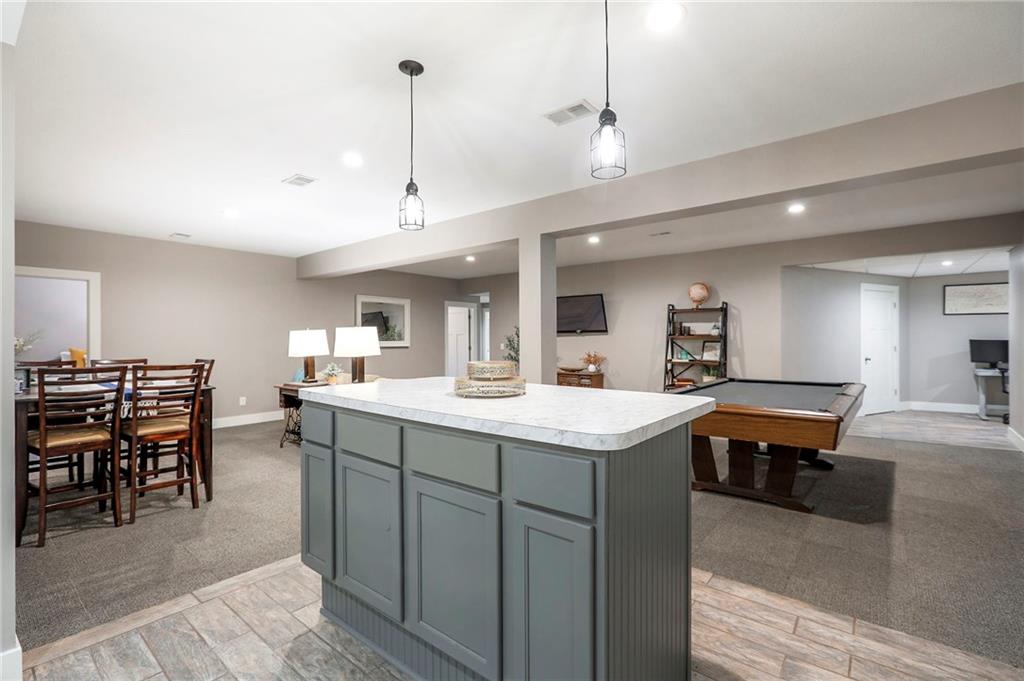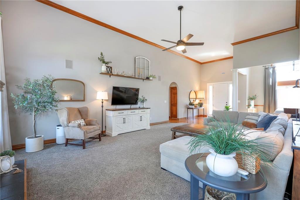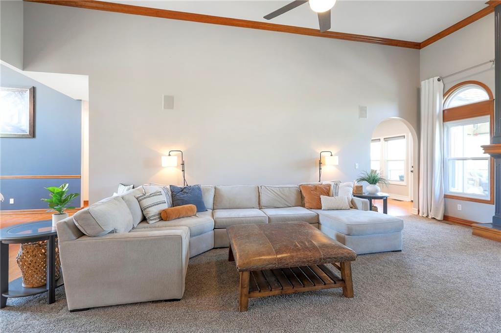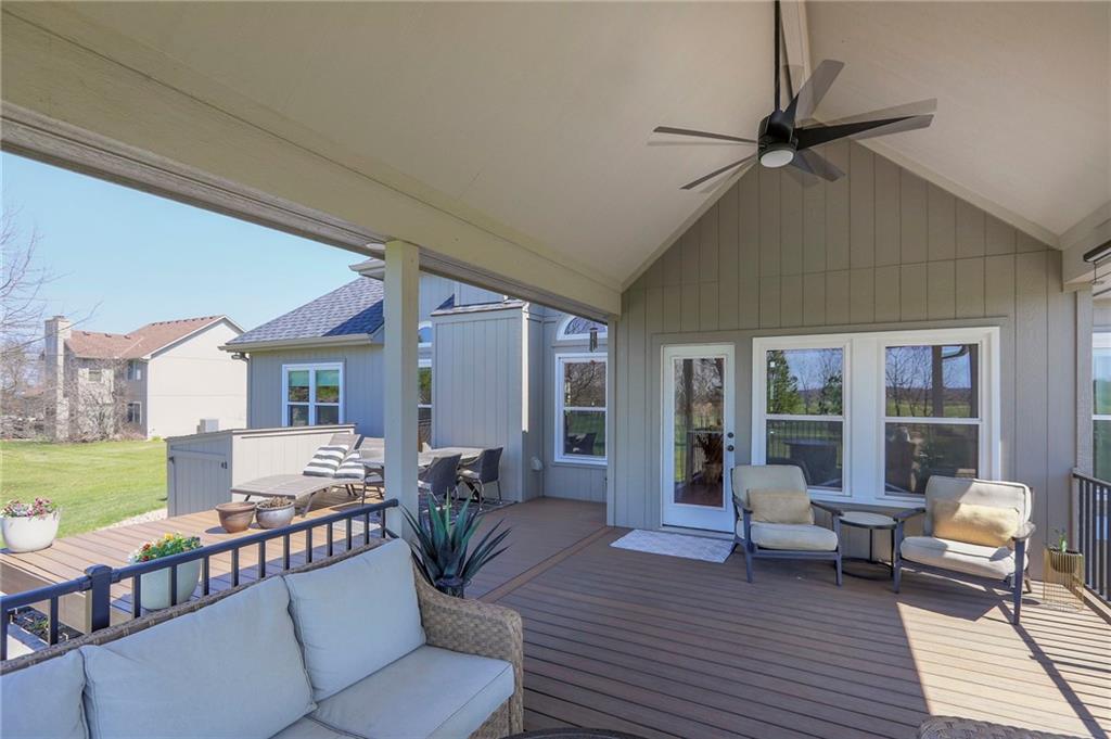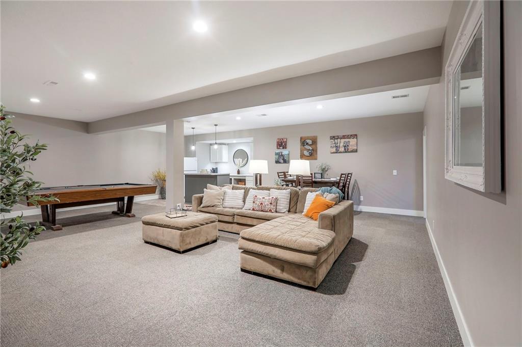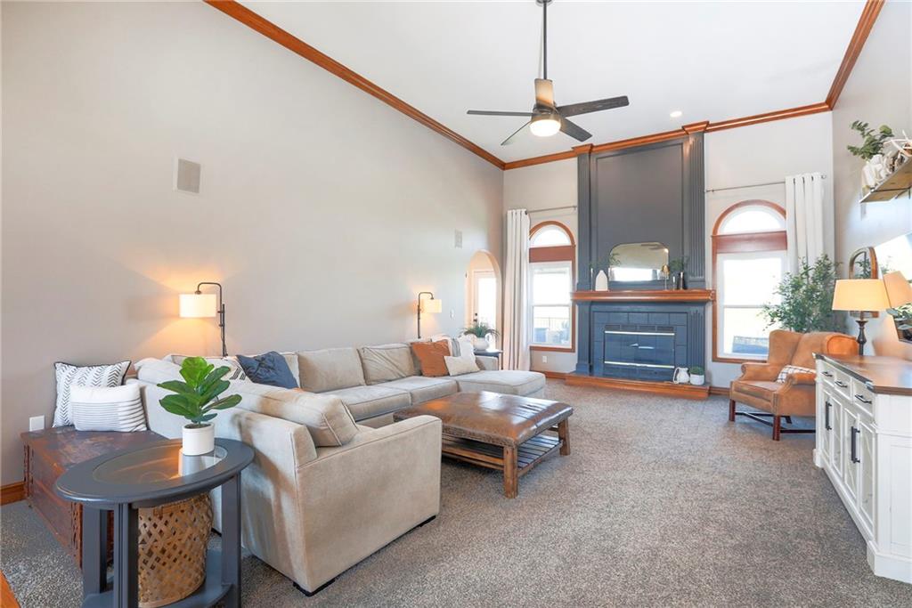 Homes in Edgewood Estates rarely come to market—even more rarely on 1.29 acres with breathtaking sunset views overlooking a horse farm. This beautifully appointed 5-bedroom, 3-bath home offers expansive living spaces, exceptional outdoor entertaining, & one of the largest lots in the neighborhood. Inside, soaring ceilings & a stately fireplace anchor the main living space, creating an atmosphere that feels both grand & welcoming. The expansive kitchen offers abundant cabinetry & workspace rarely found in newer homes, complemented by a family dining area with bar-top seating, while the formal dining room provides an elegant setting for gatherings. The primary suite offers a peaceful retreat with west-facing windows capturing spectacular sunsets, along with a generous ensuite & oversized walk-in closet. Two additional bedrooms & a spacious hall bath are positioned on the opposite side of the home, offering privacy & flexibility for additional living space or a home office. The finished lower level expands the home with a large family room, oversized recreation area with pool table space, & a fully equipped kitchenette—ideal for entertaining or a true second living space. Two additional bedrooms & a full bath add flexibility for guests, hobbies, or a home gym. With direct access from the third-car garage, the lower level creates an ideal private retreat. A safe room, generous storage, & third garage bay, currently outfitted as a woodworking shop, add additional functionality. Outdoor entertaining shines with a covered deck featuring vaulted ceilings, built-in floor outlets, mounted TV, & sunshade—perfect for sunset gatherings. A stamped concrete patio & beautifully maintained landscaping complete the outdoor setting. Located on the west side of Oak Grove in the Grain Valley School District, this Edgewood Estates property offers a rare opportunity to own a truly exceptional home.