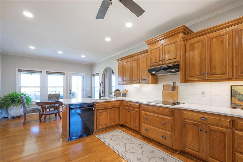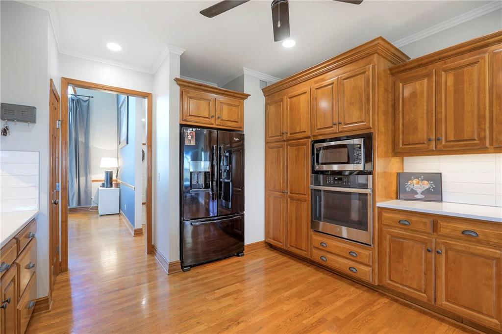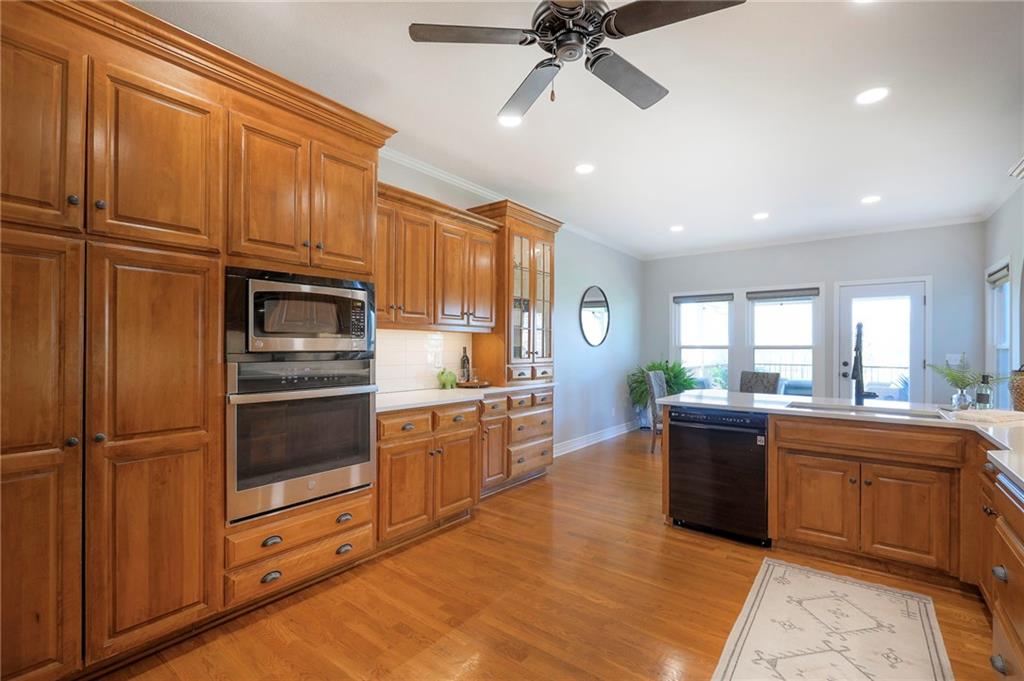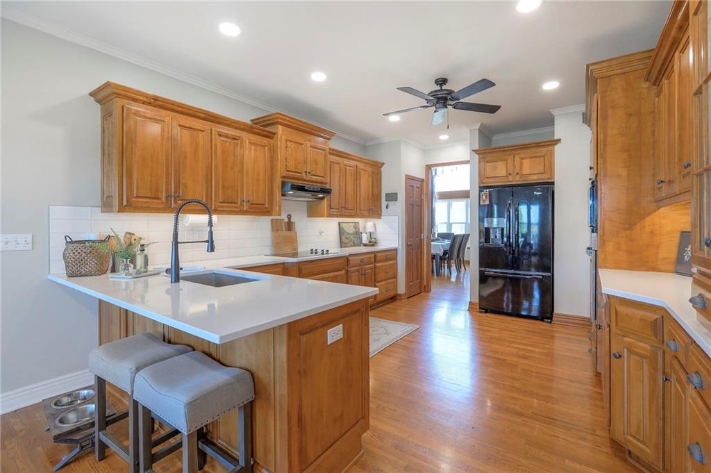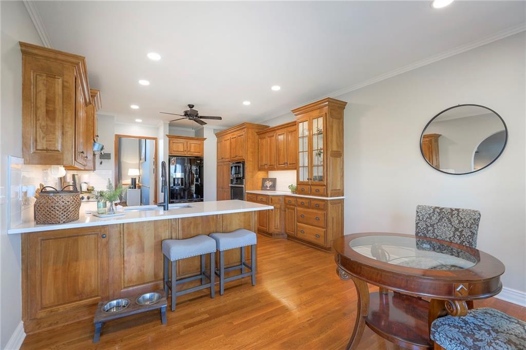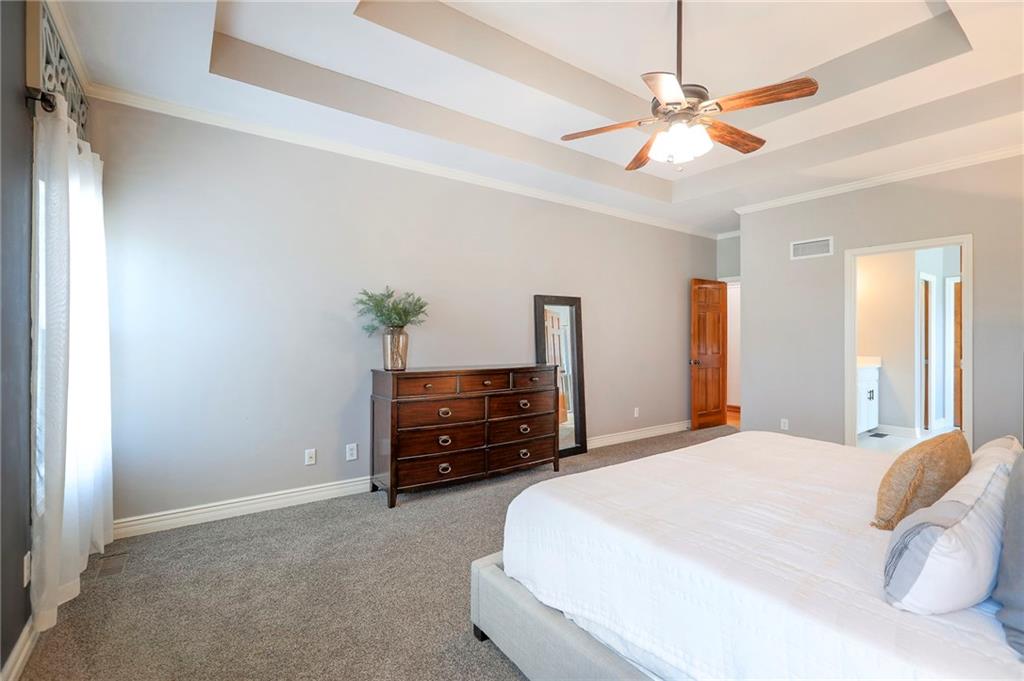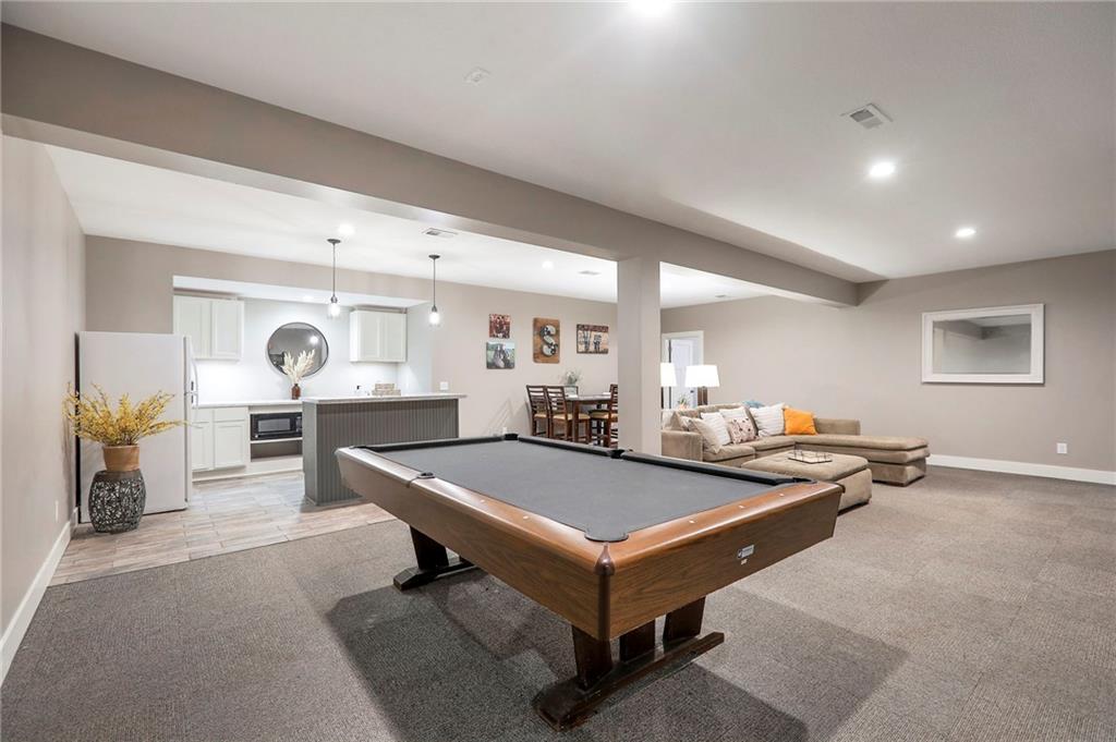 Homes in Edgewood Estates rarely come to market—even more rarely on 1.29 acres with breathtaking sunset views overlooking a horse farm. This beautifully appointed 5-bedroom, 3-bath home offers expansive living spaces, exceptional outdoor entertaining, & one of the largest lots in the neighborhood. Inside, soaring ceilings & a stately fireplace anchor the main living space, creating an atmosphere that feels both grand & welcoming. The expansive kitchen offers abundant cabinetry & workspace rarely found in newer homes, complemented by a family dining area with bar-top seating, while the formal dining room provides an elegant setting for gatherings. The primary suite offers a peaceful retreat with west-facing windows capturing spectacular sunsets, along with a generous ensuite & oversized walk-in closet. Two additional bedrooms & a spacious hall bath are positioned on the opposite side of the home, offering privacy & flexibility for additional living space or a home office. The finished lower level expands the home with a large family room, oversized recreation area with pool table space, & a fully equipped kitchenette—ideal for entertaining or a true second living space. Two additional bedrooms & a full bath add flexibility for guests, hobbies, or a home gym. With direct access from the third-car garage, the lower level creates an ideal private retreat. A safe room, generous storage, & third garage bay, currently outfitted as a woodworking shop, add additional functionality. Outdoor entertaining shines with a covered deck featuring vaulted ceilings, built-in floor outlets, mounted TV, & sunshade—perfect for sunset gatherings. A stamped concrete patio & beautifully maintained landscaping complete the outdoor setting. Located on the west side of Oak Grove in the Grain Valley School District, this Edgewood Estates property offers a rare opportunity to own a truly exceptional home.