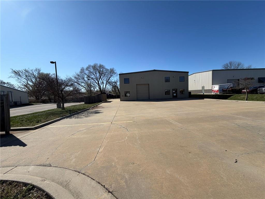 Professional office/warehouse flex space for lease only in a prime Lawrence commercial corridor near 23rd St and Haskell Ave, available immediately. Built in 2011, this well maintained 3,025 SF building offers an efficient layout that suits a variety of professional, service, and light industrial users seeking both image and function. Approximately 1,856 SF of finished office space includes 6–7 private offices, a dedicated conference room, server/copy room, kitchenette, reception area, and three restrooms total, including one private restroom with shower—ideal for staff working long or active shifts. The balance of the main level is a heated warehouse area with a 10' x 12' overhead door, providing practical space for inventory, equipment, or light distribution needs. Above the office and reception area is an additional 1,775± SF climate controlled mezzanine with mini splits—separate from and not included in the building’s stated 3,025 SF—that offers valuable flexibility for storage, light production, creative space, or future build out. Paved parking with 11 striped stalls (1 ADA), a security system with cameras, and CS zoning complement the property’s convenient access to major Lawrence routes and nearby amenities. Ownership’s target structure is a three year lease, yet lease term and related details are open to discussion with qualified tenants.