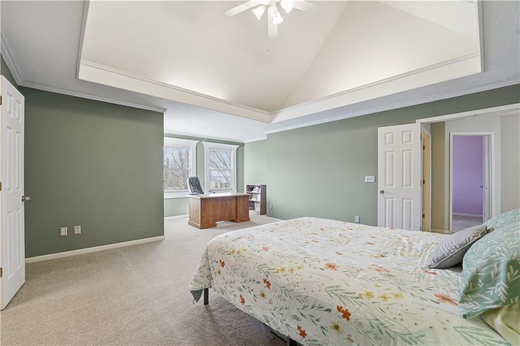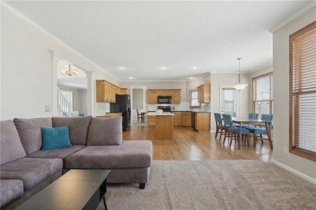 First-time home buyers got cold feet and cancelled, so now is your chance to own this special Blue Valley home in a prime Overland Park location. The main floor features a formal living room or office, a formal dining room, and an eat-in kitchen that opens to the family room with a fireplace. The kitchen features a center island with a new quartz countertop, granite counters around the exterior of the kitchen, and a new stainless steel sink and faucet. Just off the breakfast area is a spacious patio and fenced backyard. Upstairs are the primary suite with a sitting area, and a double-sized walk-in closet, an updated primary bathroom with a quartz countertop and new faucets, three additional bedrooms, a laundry room, and a full hall bathroom. The finished basement provides a second living space and a third full bathroom. Additional updates include a new furnace and air conditioner, all-new carpet, and an updated fireplace surround. The home is within walking distance of trails and the Tomahawk Ridge Community Center. Close to restaurants, shops, easy highway access to Hwy 69 and I-435.