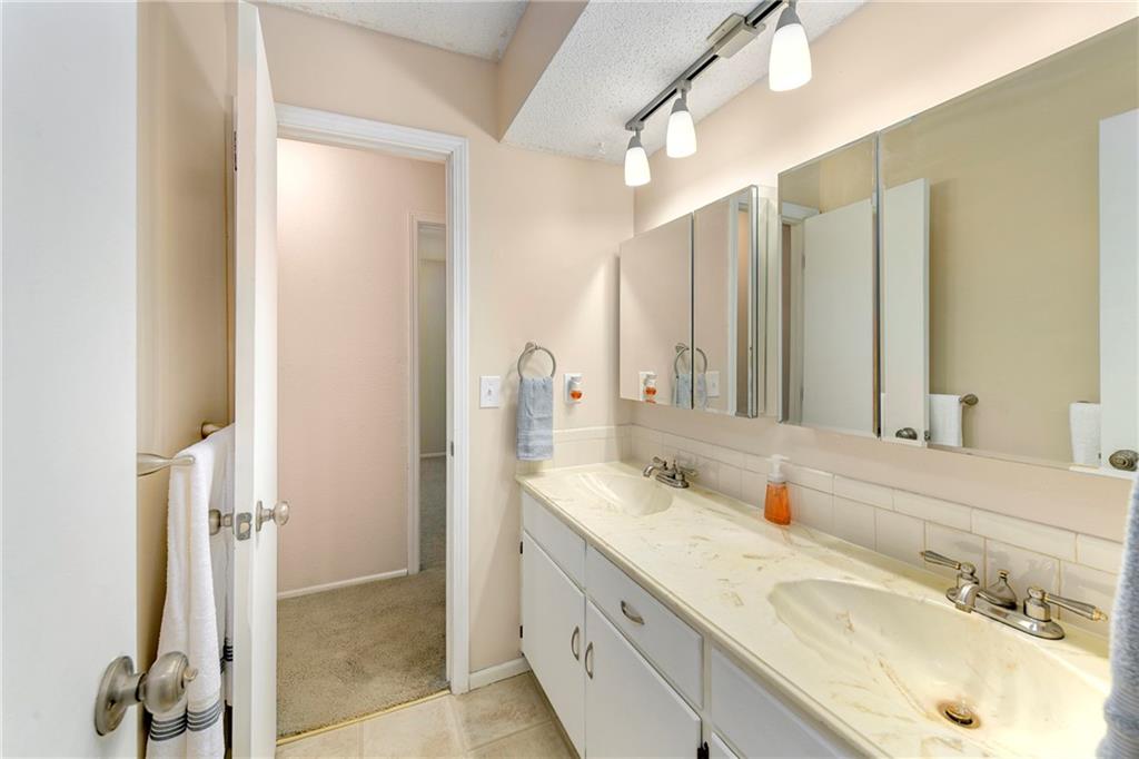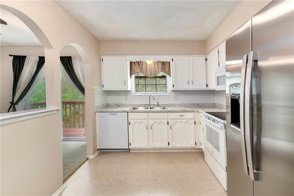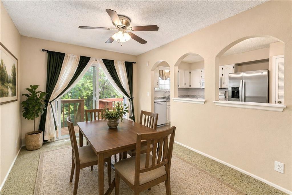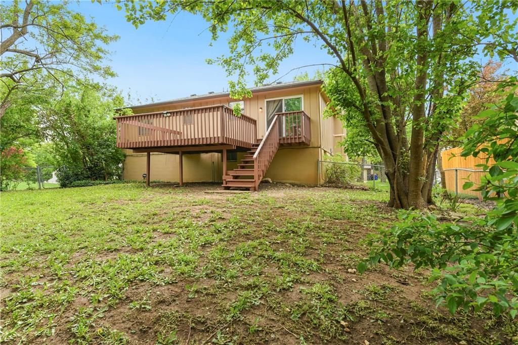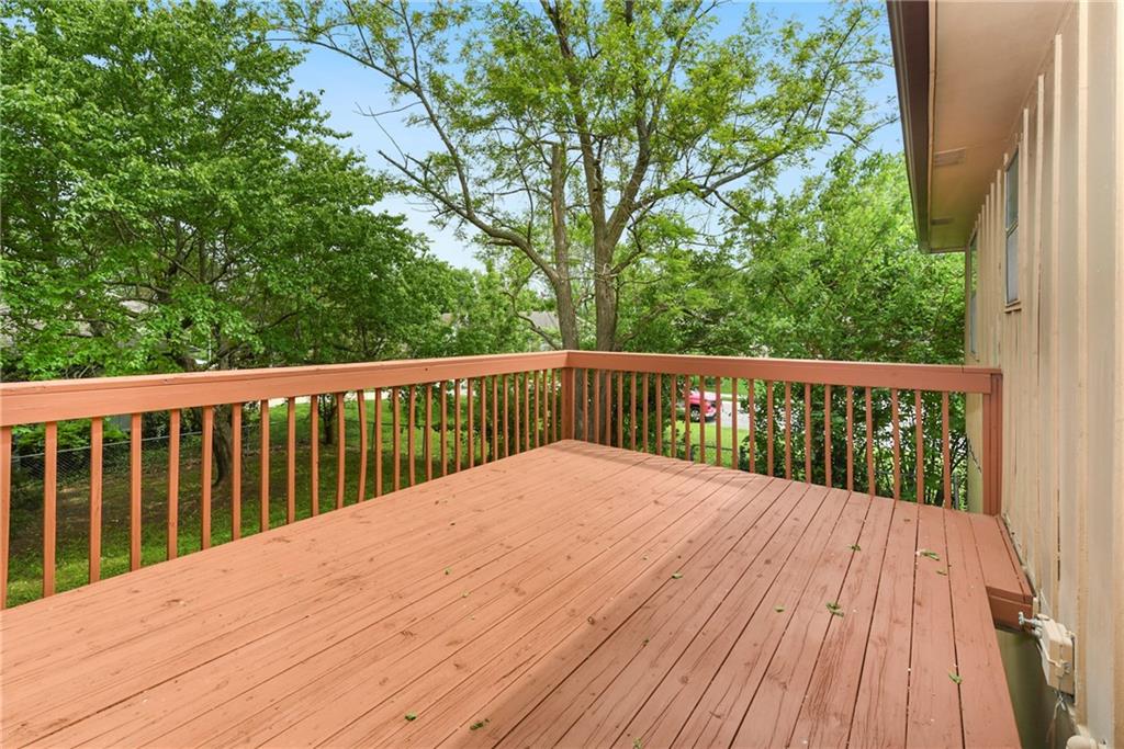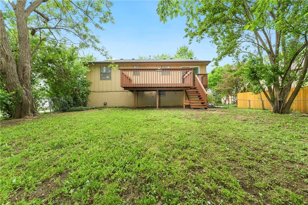 Perfect starter home in fantastic Olathe location! This Devonshire split entry has fresh interior paint and is ready for you to come call it home! The entryway is open and airy with updated fixture and pleasing view of the finished lower level with brick fireplace. The main level begins with a large living room which flows into the dining room and leads to a large rear deck. The kitchen is updated with white cabinets, grey & white countertops, nickel hardware, and newer appliances including smoothtop range, microwave, and S/S fridge. The main bath has a double vanity and the tub/shower has updated tile and fixtures. The primary bedroom offers direct bathroom access and privacy from the vanity area. The roof, HVAC and HWH are all under 10 years old and the home features many updates including new blinds throughout, new rear sliding door, new washer and dryer. The finished lower level offers updated high traffic carpet, a family room, a game room or home office, and a recently remodeled bath with shower & whirlpool tub. The brick fireplace has custom glass doors and built-in bookcases. There are ceiling fans throughout the entire home and as well as a security system, smart thermostat, whole house humidifier, radon mitigation system. The incandescent lights have been updated with soft light LED and the outlets have all been updated to white. There's an extra-deep garage with interior spigot, storage, insulated garage doors & keyless entry. All this pleasantly situated on a large corner lot with mature trees, fence, and a large freshly stained deck. The elementary school is just a couple blocks away along with the Indian Creek Trail system, Frontier Park, Frontier Pool. Access to restaurants and shopping as well as I-35 are all just a couple minutes away. The combination of location, updates, and affordability make this an easy decision! Call us today to schedule your showing.