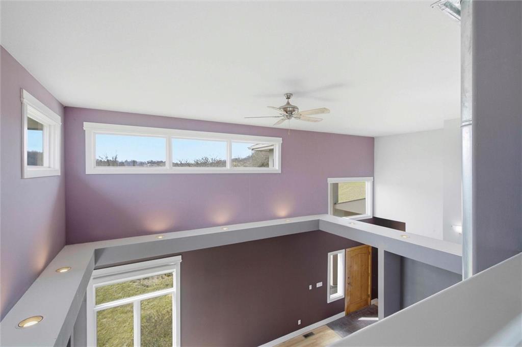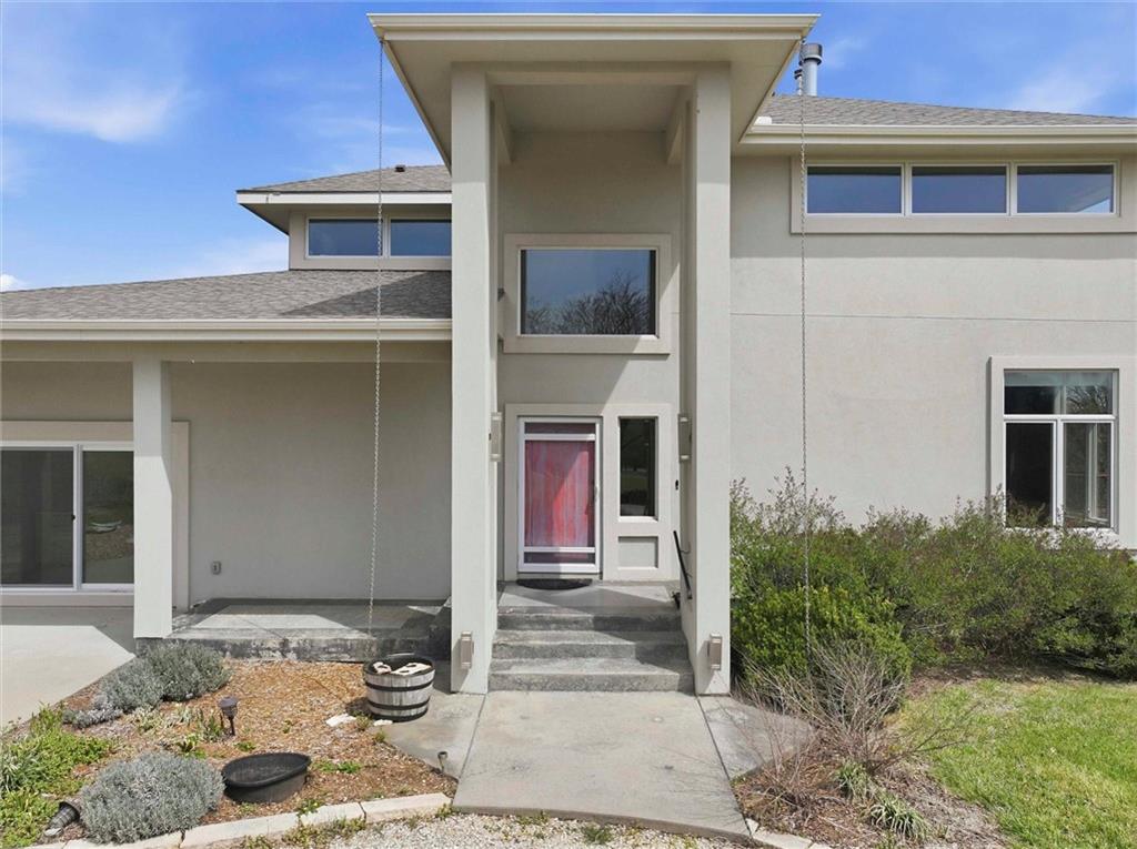 Set just north of Lawrence in the scenic Twin Ridge Heights West rural subdivision, this extraordinary 5.6-acre property offers a rare opportunity to own the personal residence and creative sanctuary of beloved Lawrence artist Louis Copt and his wife, Phyllis. Designed and built in 2002, the home reflects a lifetime devoted to art, craftsmanship, and intentional living. Inspired by the architectural principles of Frank Lloyd Wright, this vertical prairie-style home features expansive overhangs, strong lines, and a seamless connection to the surrounding landscape. Inside, the dramatic living room rises to 20-foot ceilings, anchored by a striking fireplace that uniquely backs to a wood-fired pizza oven imported from Italy—blending function, artistry, and gathering space into one unforgettable focal point. The home itself serves as a canvas, with artistic contributions from local talents Barry Fitzgerald and Kate Dineen woven throughout. Natural light pours into every space, enhancing both the architecture and the home’s gallery-like quality. Currently configured as a 2-bedroom, 2.5-bath residence, the main level includes a large open studio where Louis created much of his work. This space offers flexibility and can easily be converted to an additional bedroom and bathroom. Thoughtfully maintained, the home features a tankless water heater, a new roof in 2022, and a new septic tank installed in 2023. Outdoors, enjoy a peaceful setting with a sauna garden and sauna, storage shed, gardening shed, vegetable garden, and native landscaping. An additional 5-acre parcel directly north is also available (MLS #2605277), offering expansion potential or added privacy. A truly rare offering - where architecture, art, and place come together in a way that is nearly impossible to replicate. Disclaimer: Sight unseen offers may be accepted by the Seller. The Showing Begin Date is subject to change.