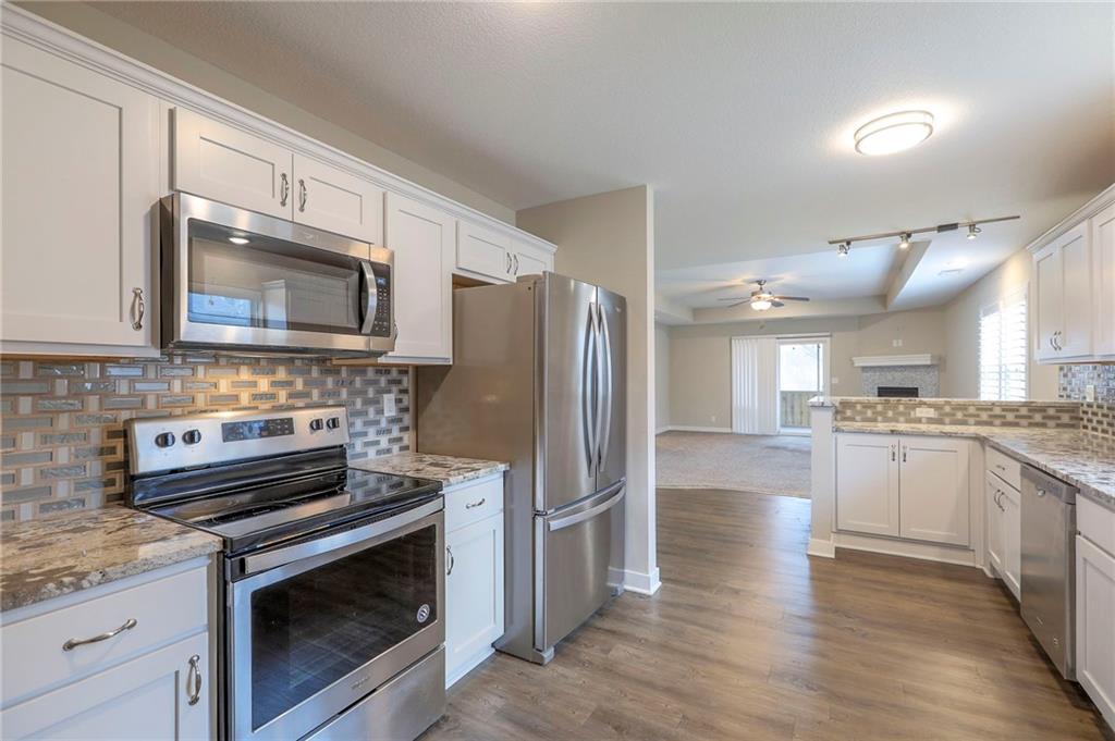 Enjoy easy living in this well-maintained half duplex/ranch style home with quick and convenient highway access plus no steps throughout the home! Built just 8 years ago and lightly lived in, this home offers a bright, open feel all on one level. The spacious kitchen features granite countertops and plenty of room to gather, while the primary suite includes a walk-in closet and double vanity for added functionality. A vaulted second bedroom is filled with natural light, creating a warm and inviting space for guests or a home office. You’ll love the thoughtful touches throughout, including beautiful plantation blinds, low-maintenance siding, and a 2-car garage. Step outside to relax on the covered, screened-in back porch—ideal for enjoying the outdoors in comfort. A move-in ready home that checks all the boxes for easy, low-maintenance living!