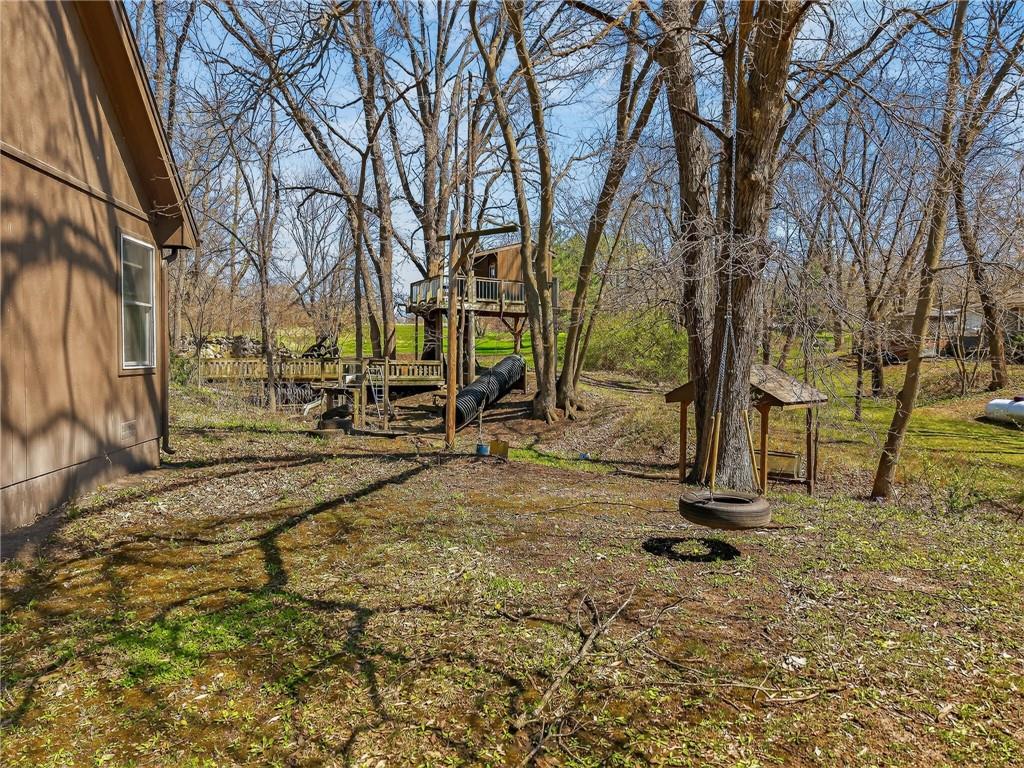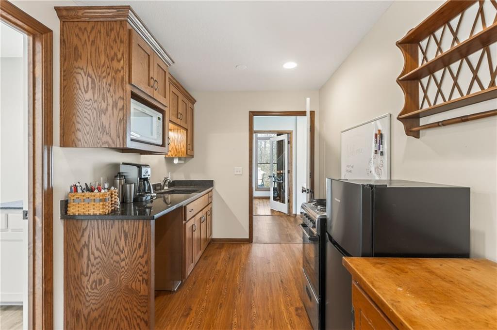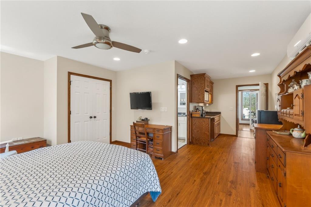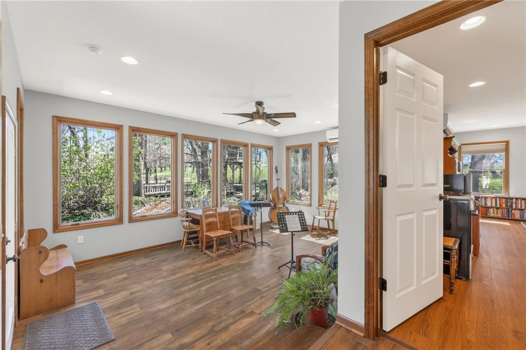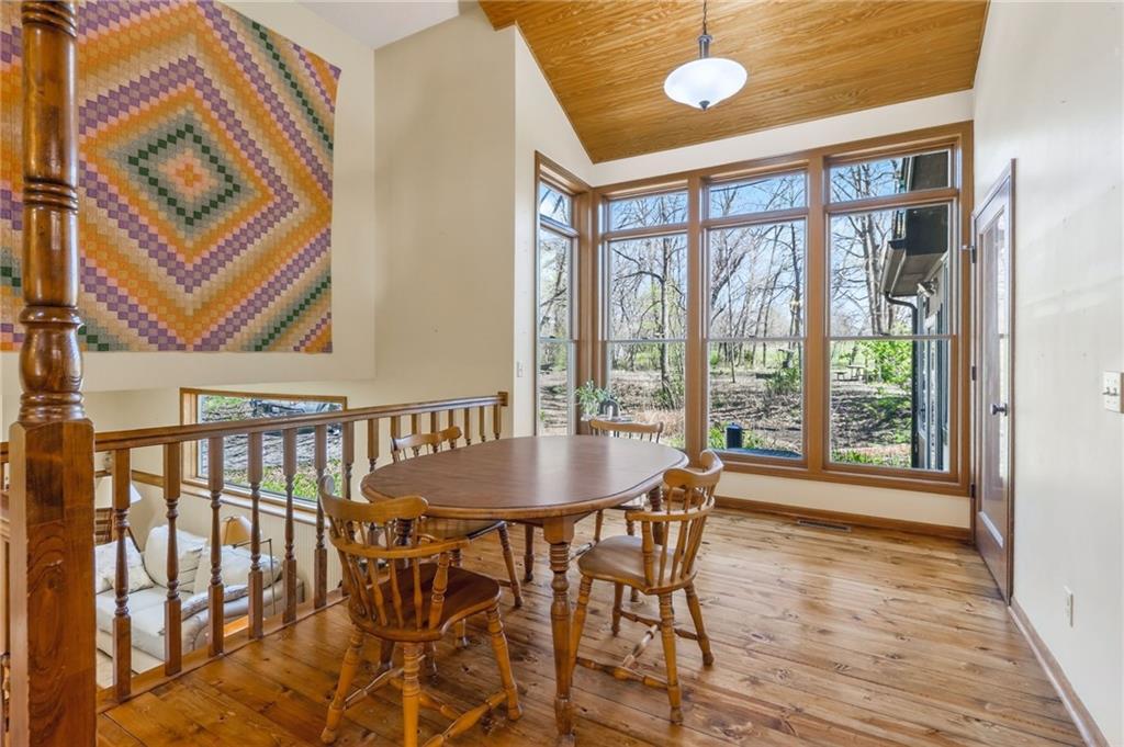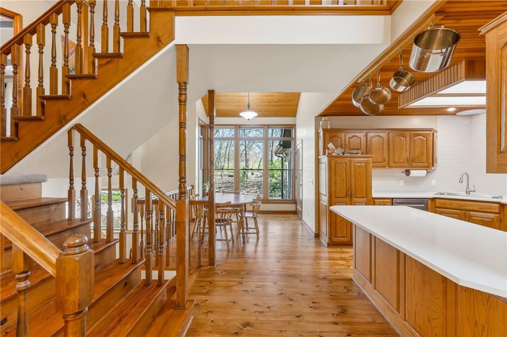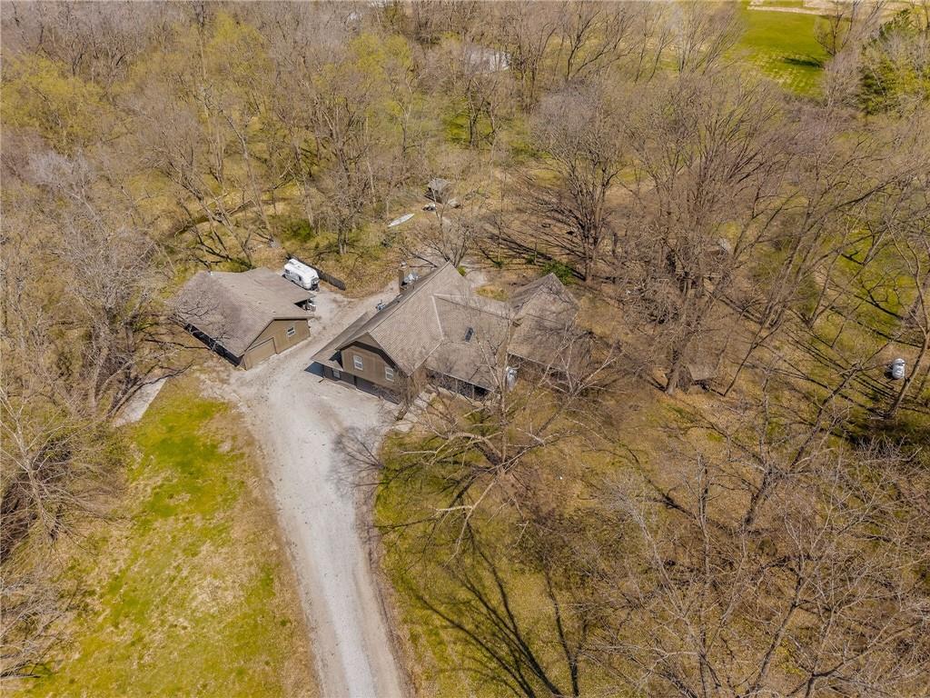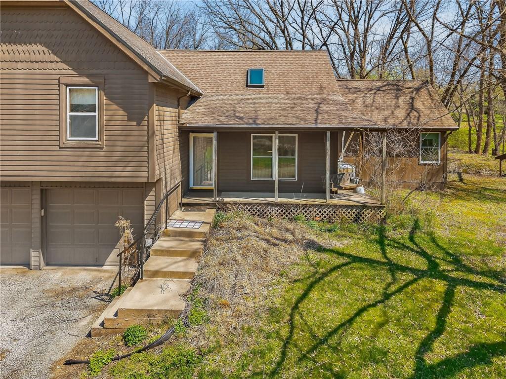 Situated on 4.8 acres in rural Clay County, this updated country home offers modern comforts in a tranquil setting. The spacious 3,924 sq ft interior (4 beds, 3 baths) was refreshed with refinished wood floors. Inside, the open kitchen boasts quartz countertops, an island workspace, and flows seamlessly into a bright dining area. The cozy family room is naturally brightened by light from the Pella windows overlooking the scenic backyard. Upstairs, the luxurious primary suite includes a private bath, walk-in closet, with two more upstairs bedrooms and a second full bath completing the upper level. A standout feature is a main-level multigenerational suite – essentially a self-contained apartment – providing a private bedroom, full bath and a convenient kitchenette with small appliances. Outside, enjoy peaceful country life on grounds ideal for farm animals, vegetable gardening, and play. Mature trees and perennial flowerbeds add year-round beauty, and a detached shop provides extra workspace or storage. In the coveted Kearney School District, this turnkey home combines tranquil country charm with a versatile layout. Its integrated multigenerational suite truly makes it perfect for extended-family living or hosting guests.