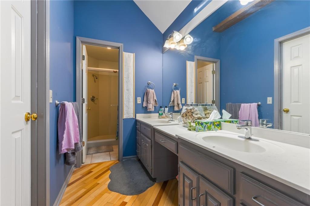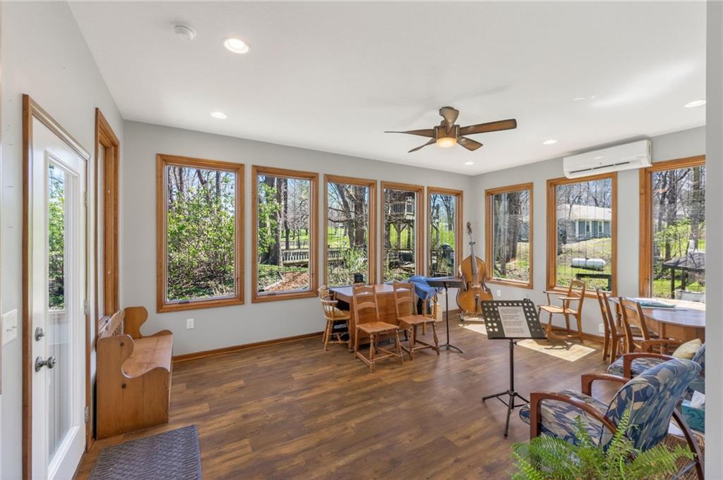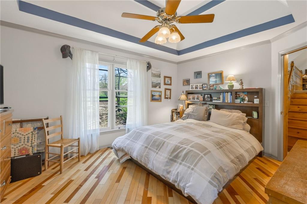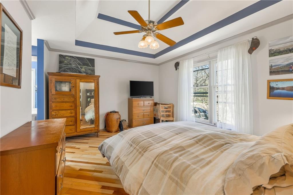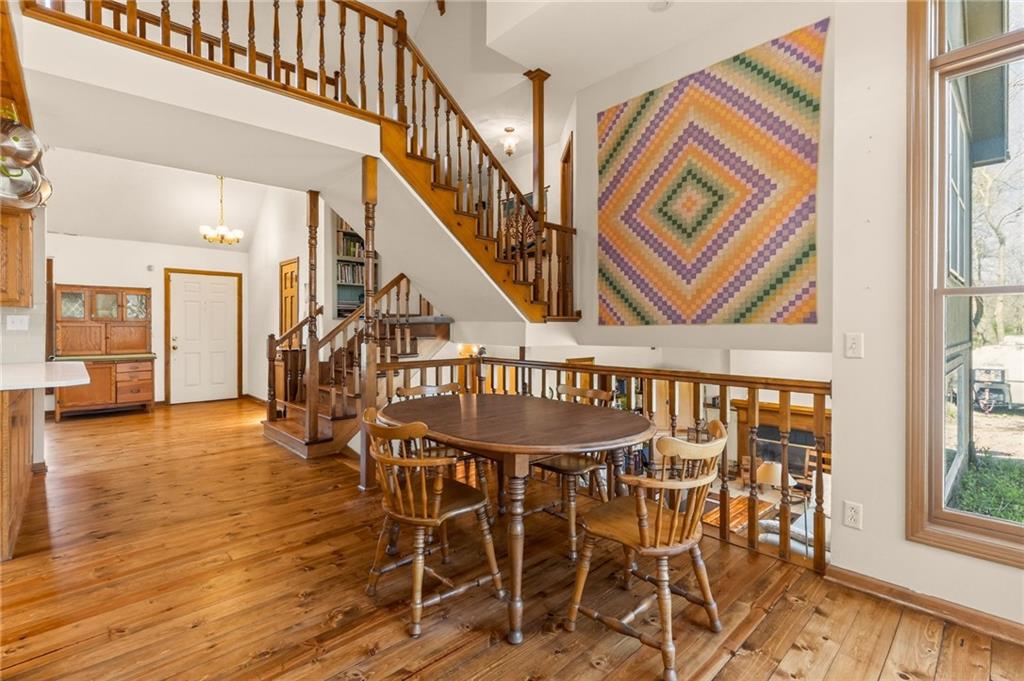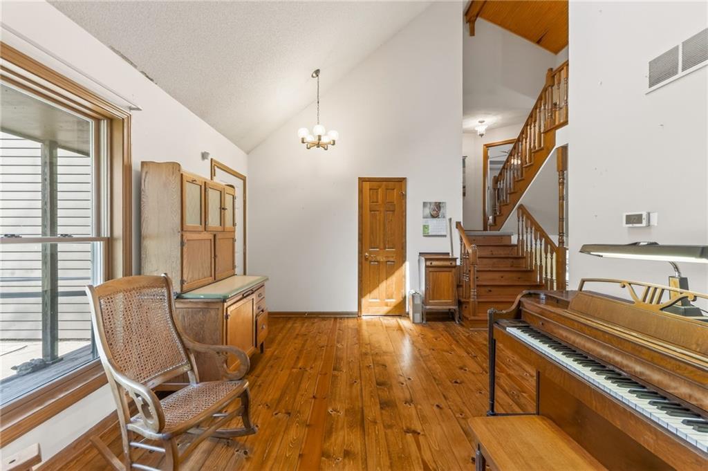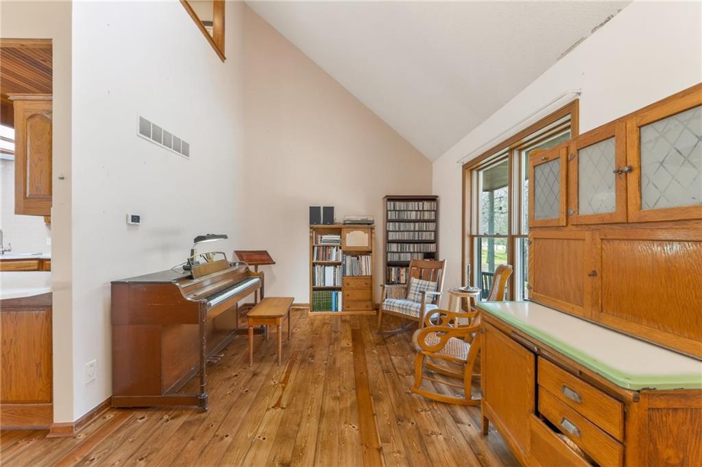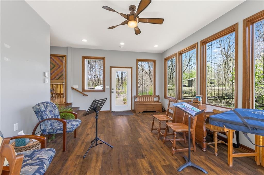 Situated on 4.8 acres in rural Clay County, this updated country home offers modern comforts in a tranquil setting. The spacious 3,924 sq ft interior (4 beds, 3 baths) was refreshed with refinished wood floors. Inside, the open kitchen boasts quartz countertops, an island workspace, and flows seamlessly into a bright dining area. The cozy family room is naturally brightened by light from the Pella windows overlooking the scenic backyard. Upstairs, the luxurious primary suite includes a private bath, walk-in closet, with two more upstairs bedrooms and a second full bath completing the upper level. A standout feature is a main-level multigenerational suite – essentially a self-contained apartment – providing a private bedroom, full bath and a convenient kitchenette with small appliances. Outside, enjoy peaceful country life on grounds ideal for farm animals, vegetable gardening, and play. Mature trees and perennial flowerbeds add year-round beauty, and a detached shop provides extra workspace or storage. In the coveted Kearney School District, this turnkey home combines tranquil country charm with a versatile layout. Its integrated multigenerational suite truly makes it perfect for extended-family living or hosting guests.
